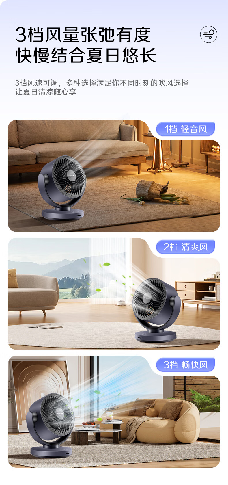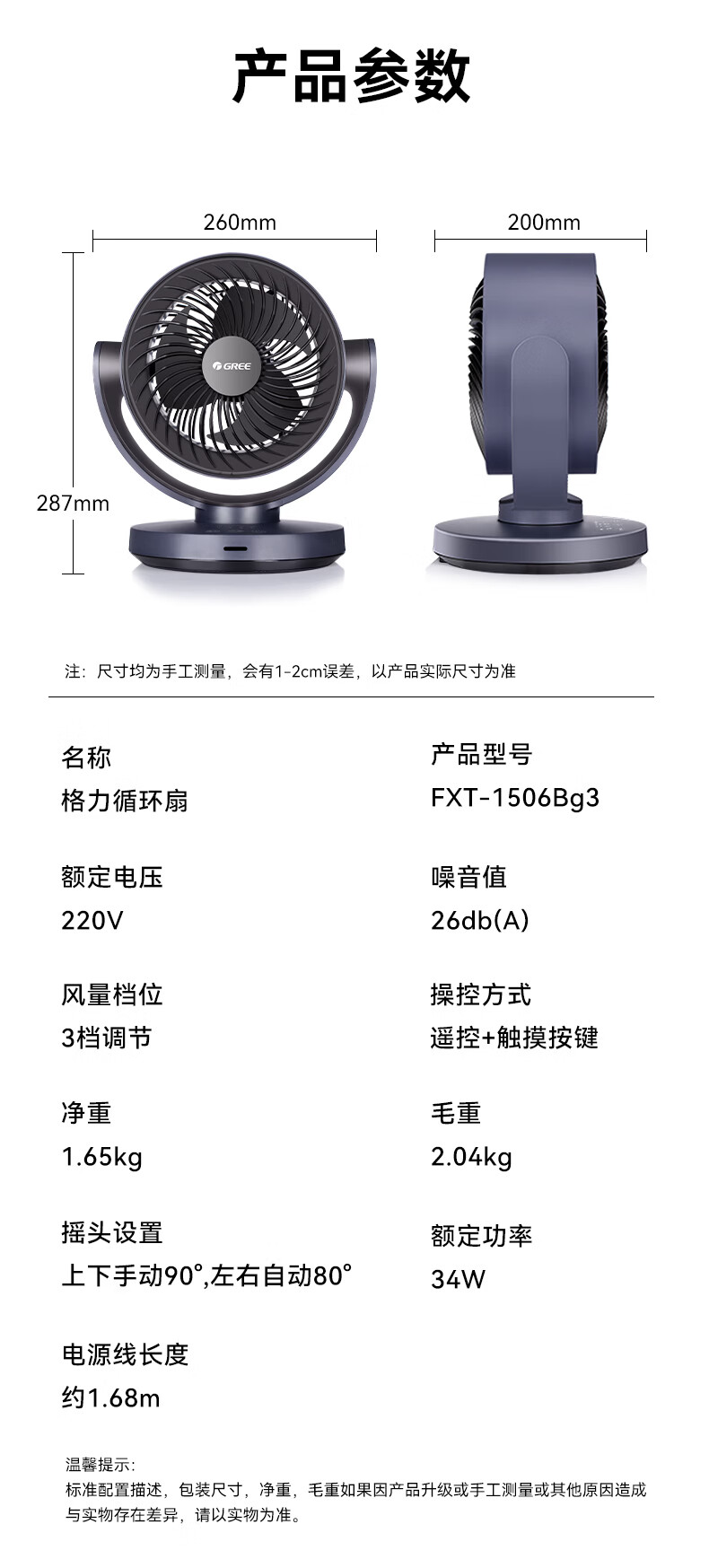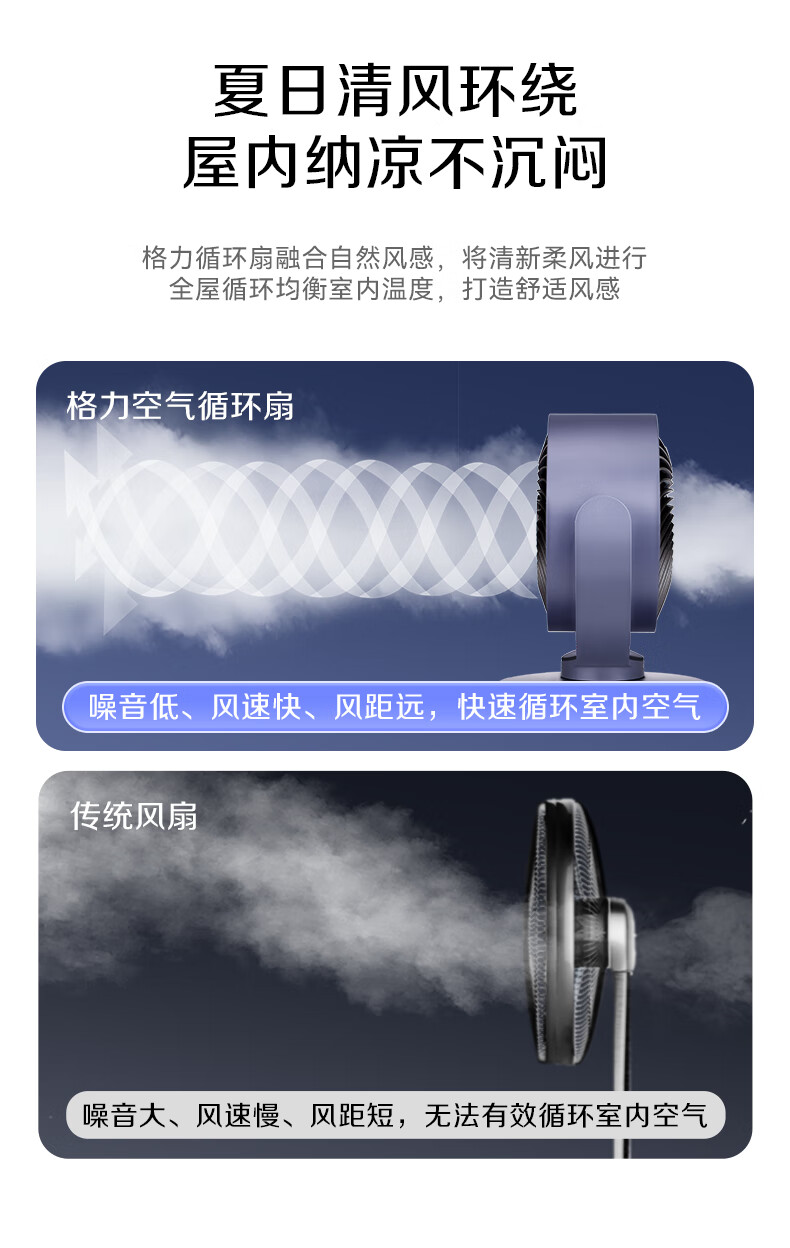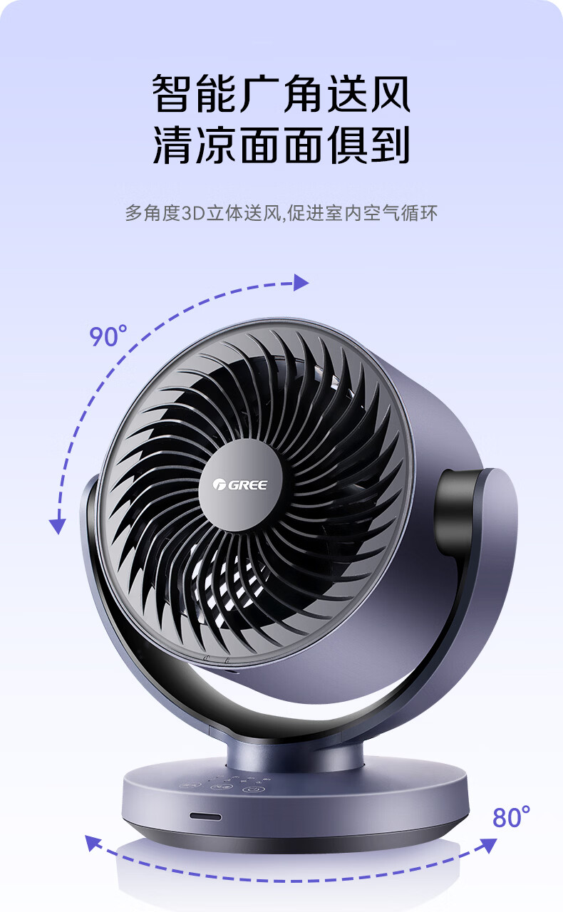 格力(GREE)空气循环扇家用电风扇台式桌面小风扇卧室办公宿舍摇头电扇节能大风量排气扇涡轮对流换气空调伴侣 整屋循环送风-遥控定时款(FXT-1506Bg3)
