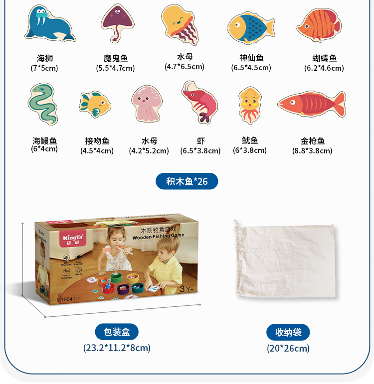 铭塔(MING TA)【精选推荐】新型磁性钓鱼 男女孩早教玩具生日礼物 【新款】6钓杯+26条鱼+2钓竿+26认知卡