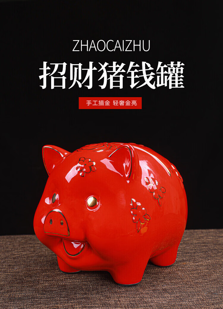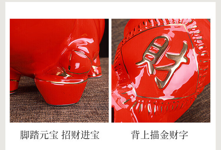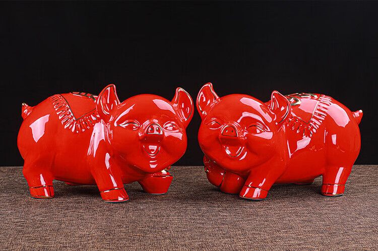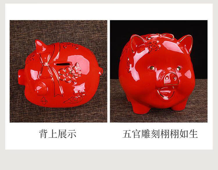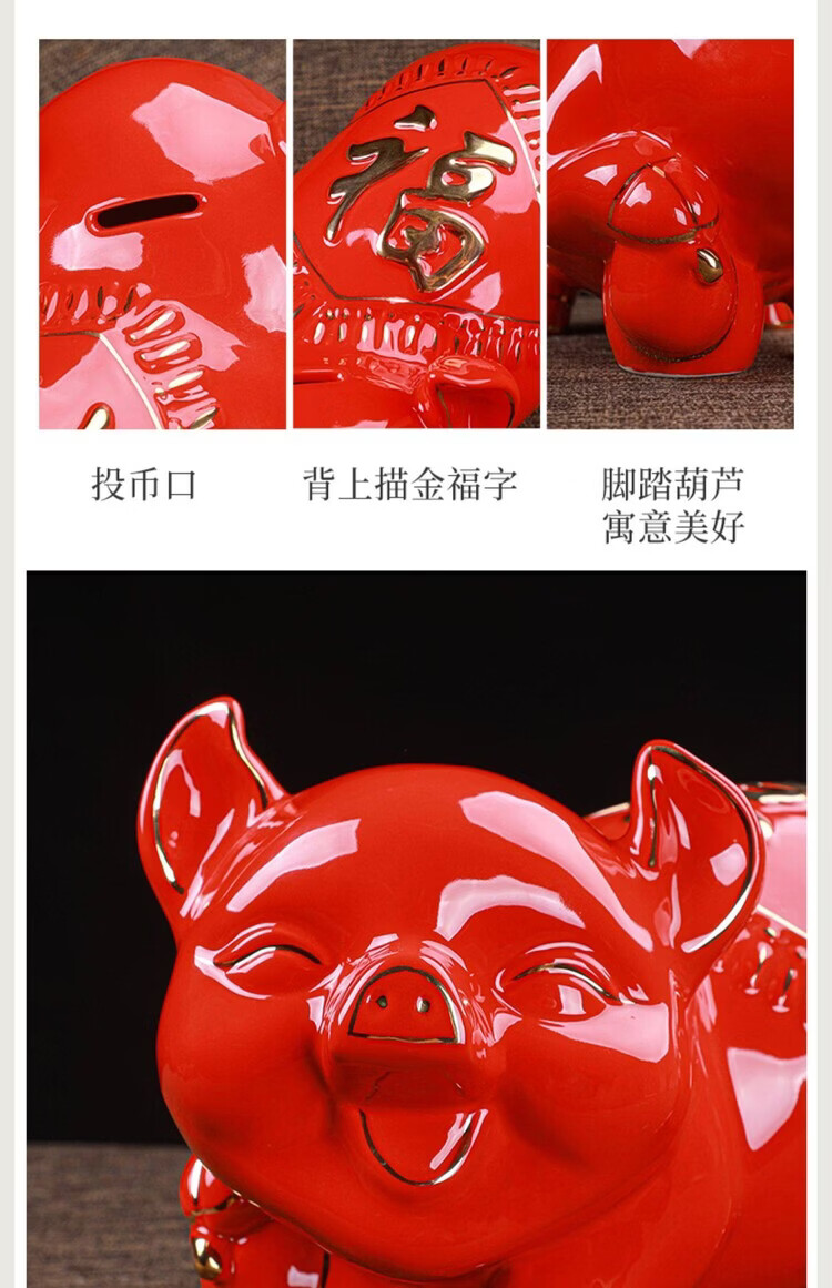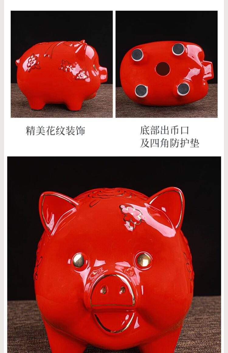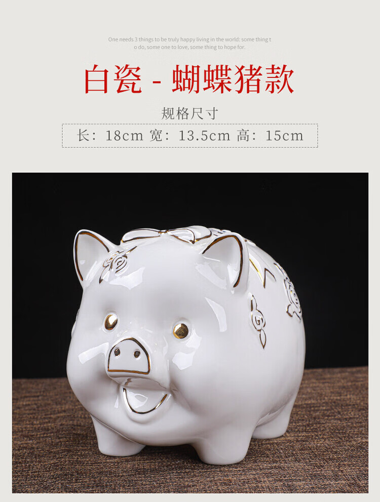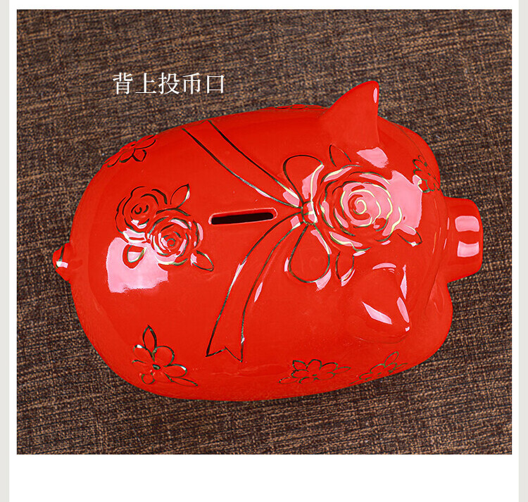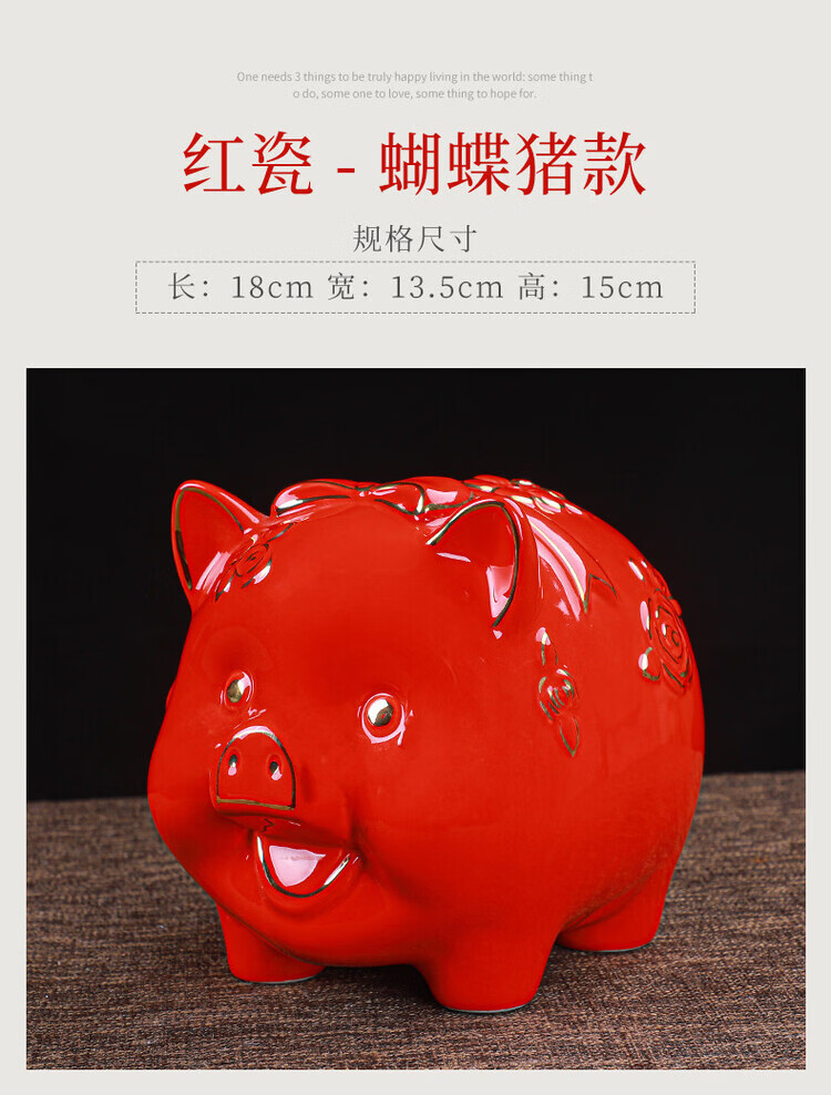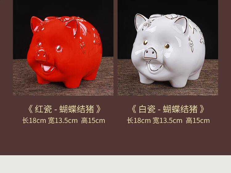 【猪存钱罐】陶瓷创意摆件 客厅玄关/开业乔迁礼品 不存不取红色蝴蝶猪18x13x15cm
