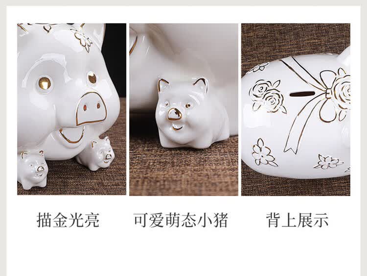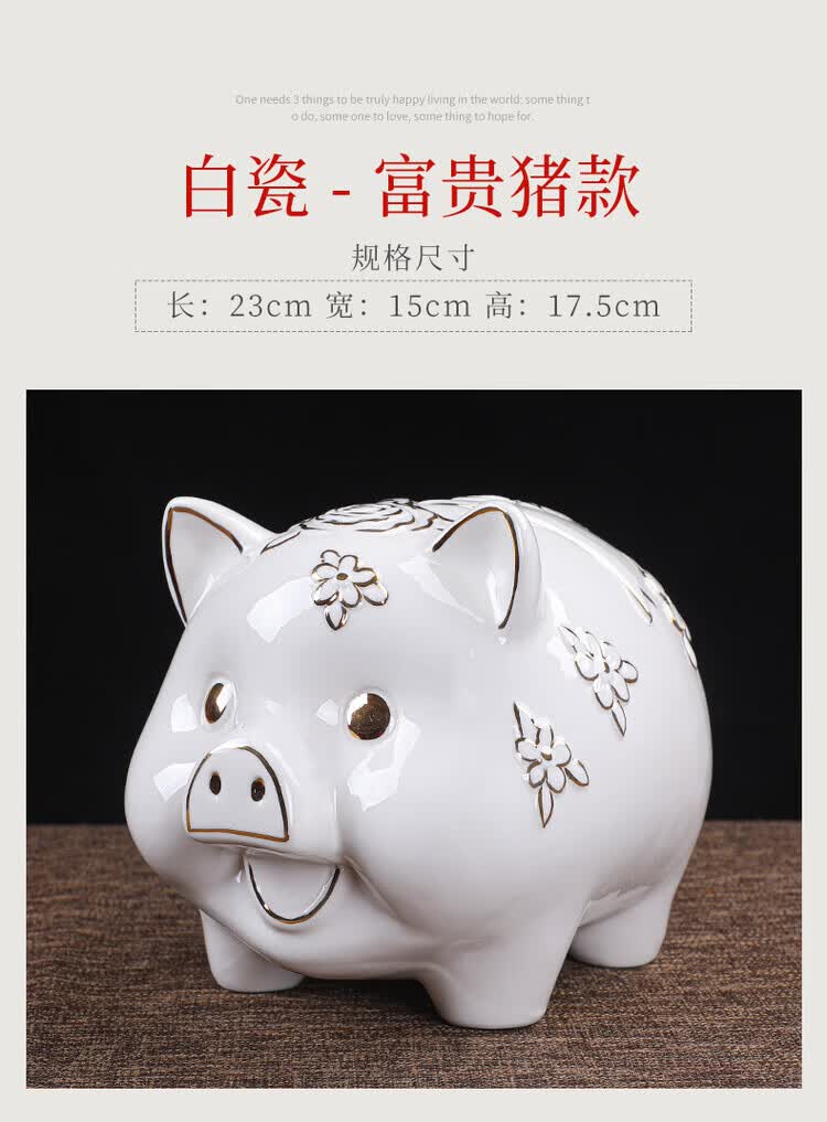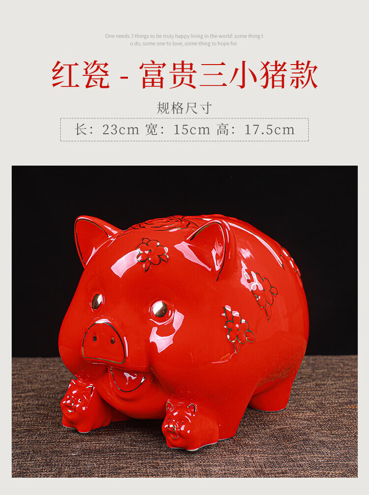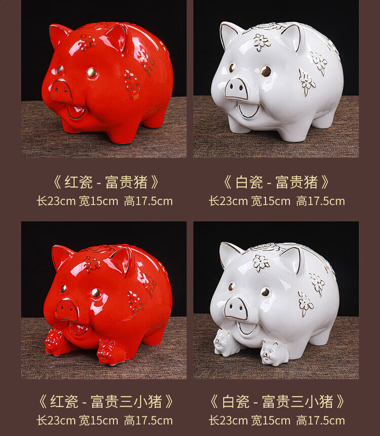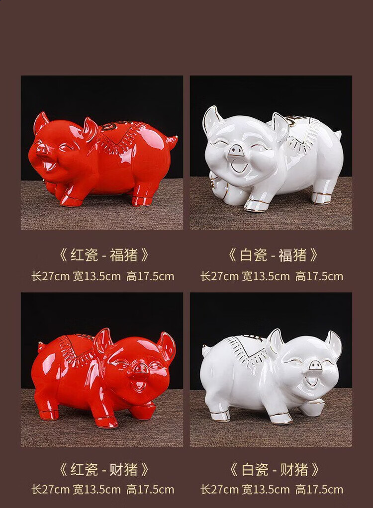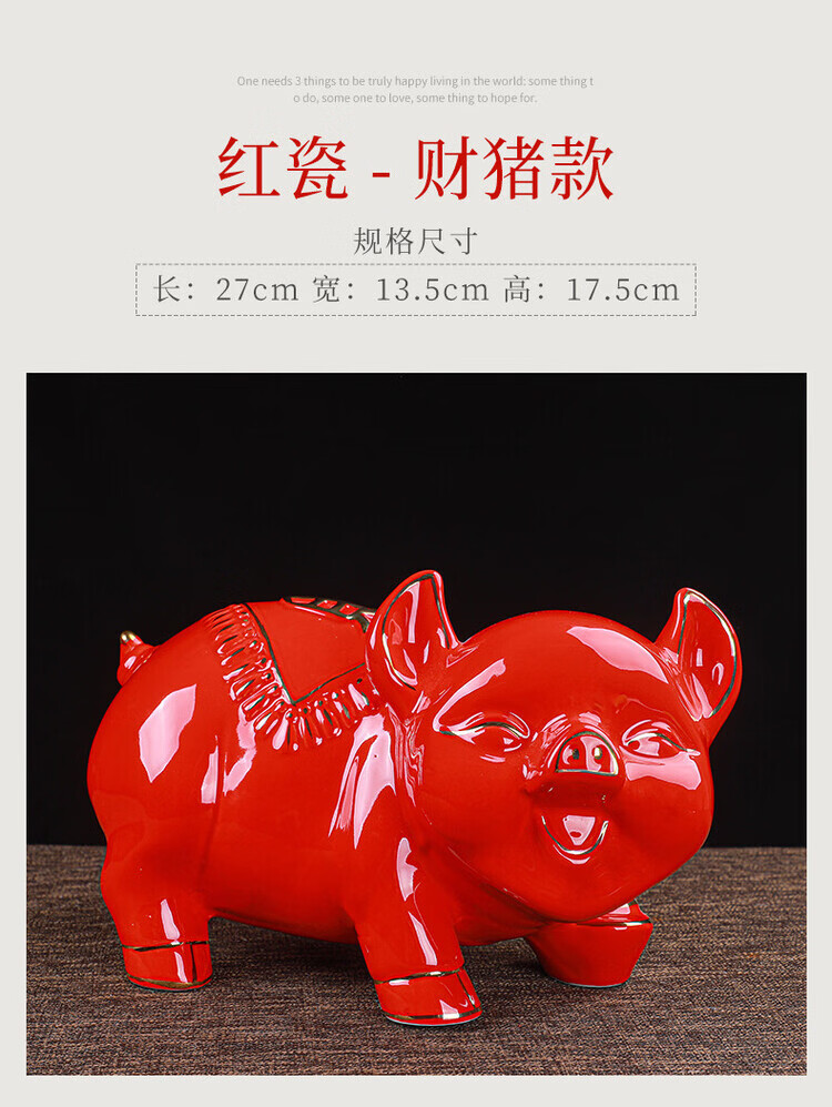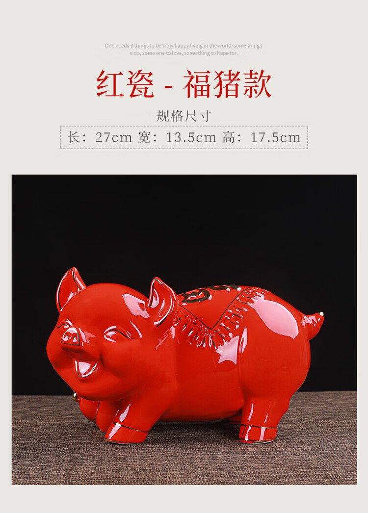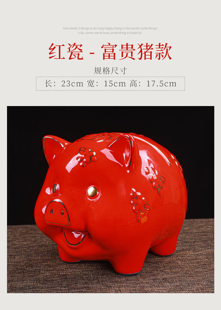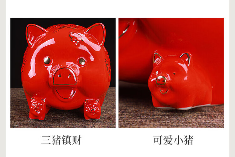 【猪存钱罐】陶瓷创意摆件 客厅玄关/开业乔迁礼品 不存不取红色蝴蝶猪18x13x15cm