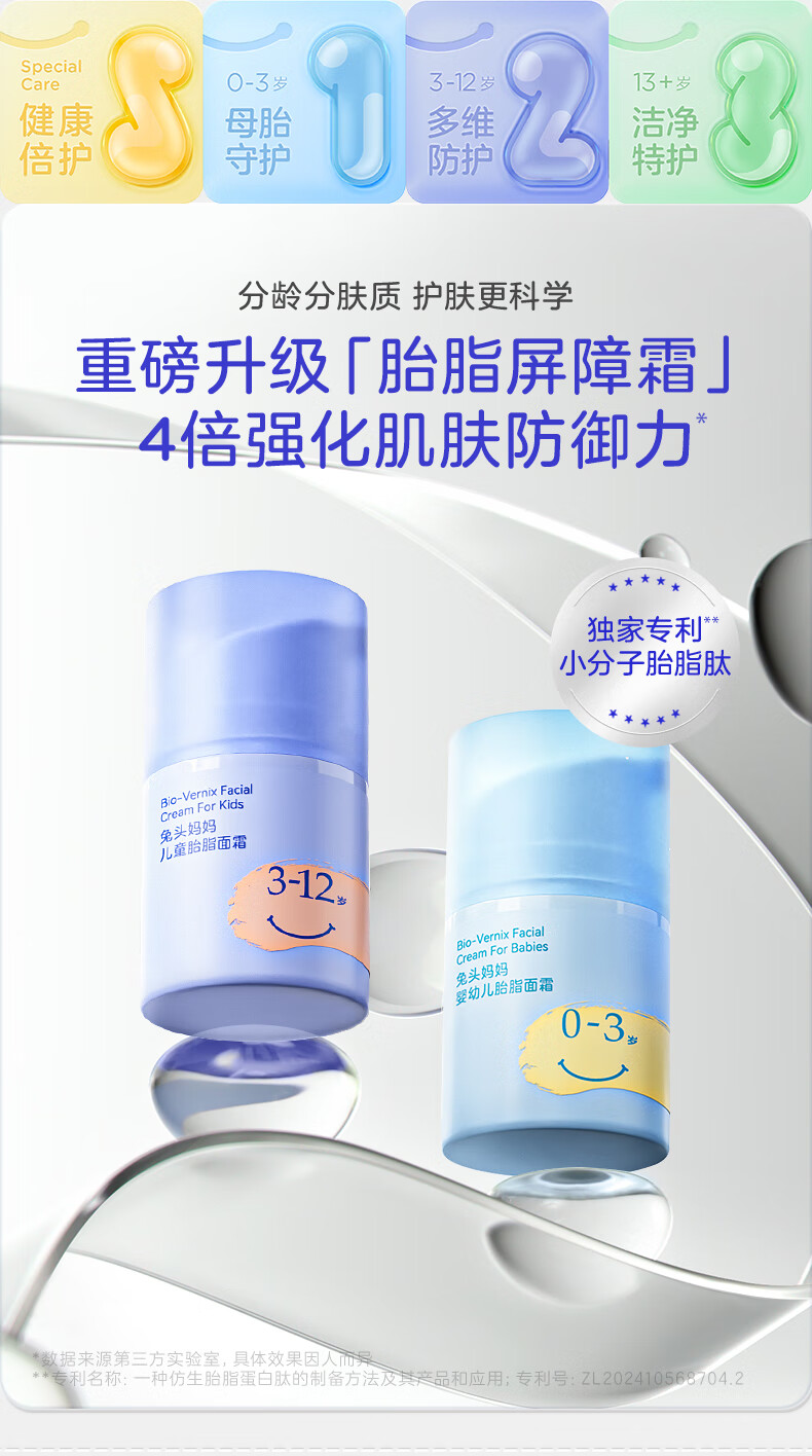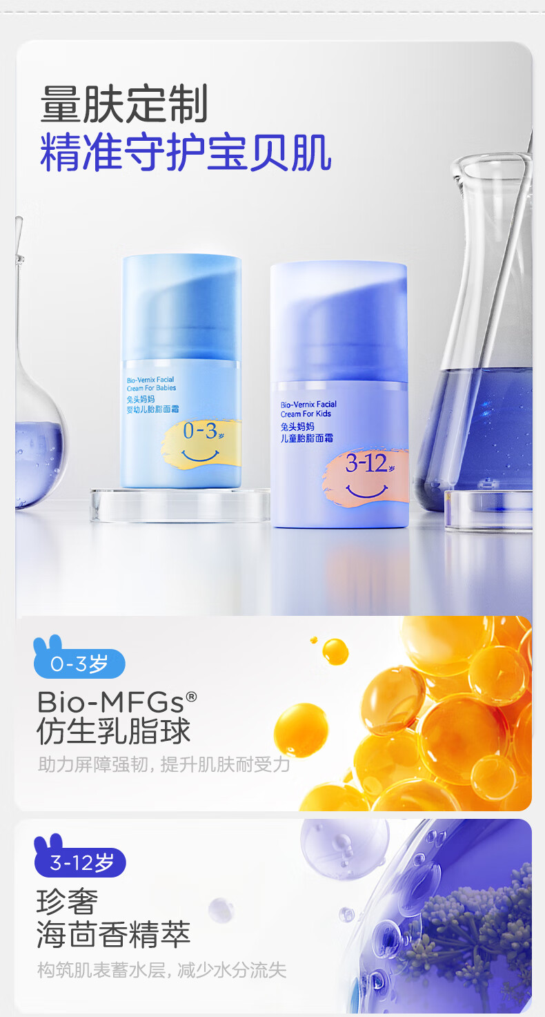 兔头妈妈儿童胎脂面霜 婴幼儿保湿润肤乳秋冬深度滋润舒缓宝宝霜3-12岁22g