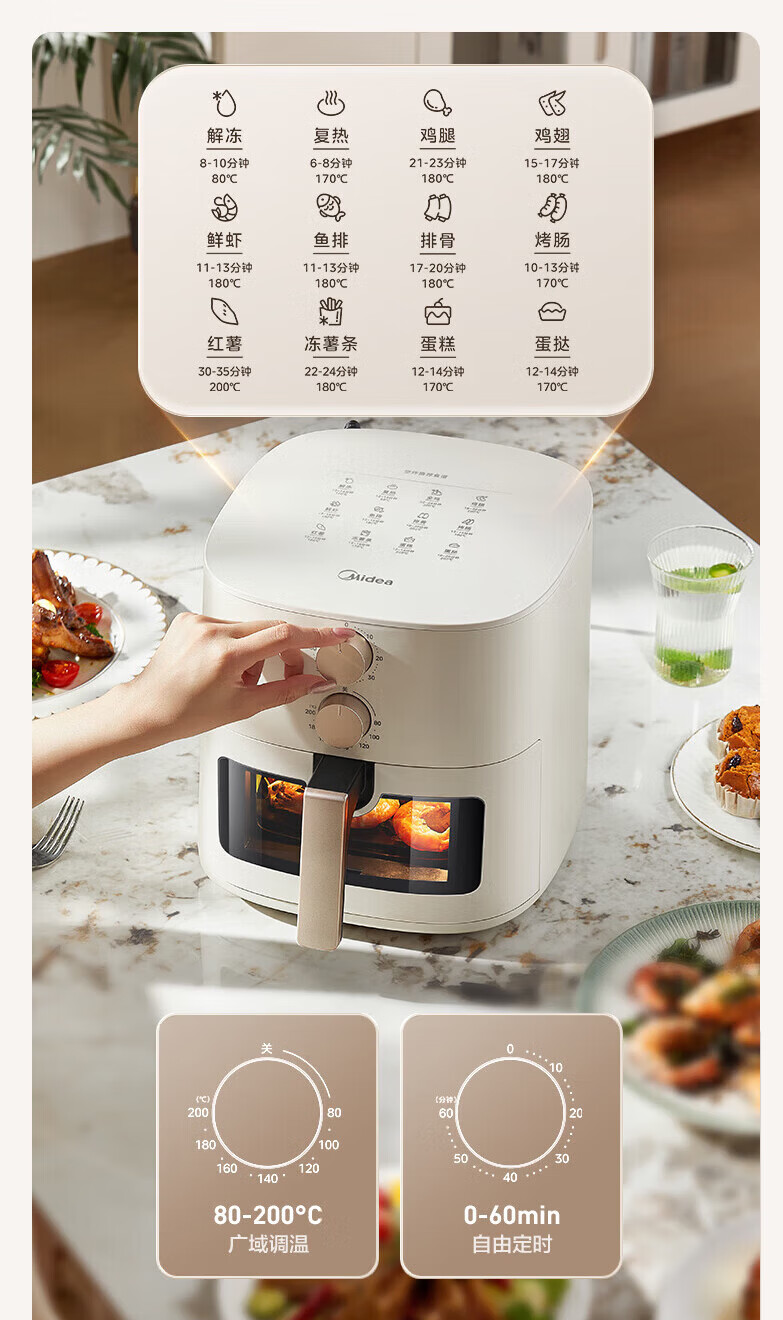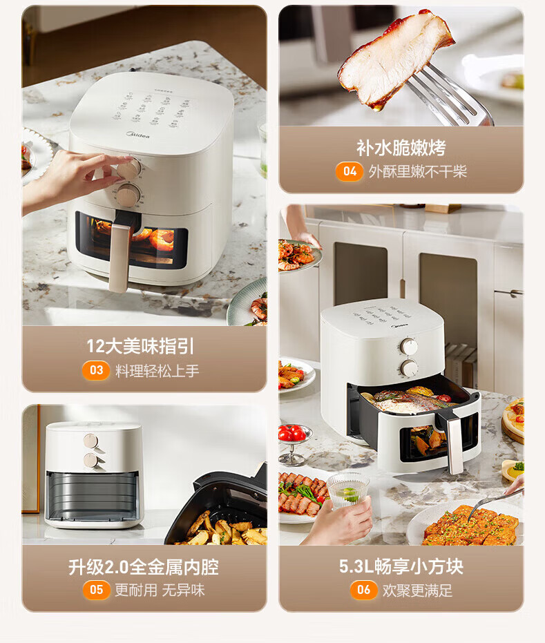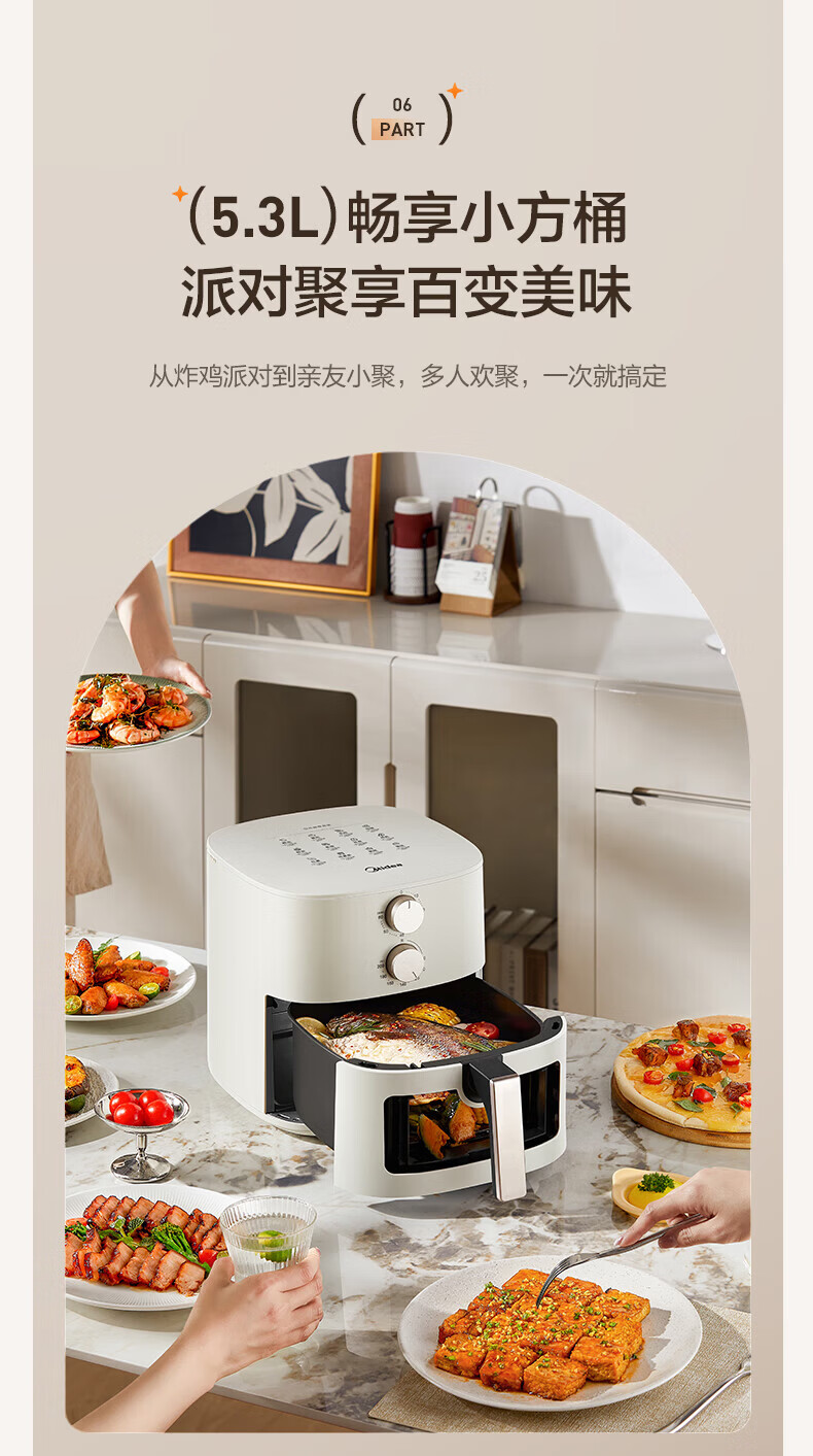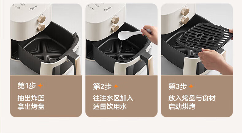 美的多采空气炸锅蒸烤一体2026年新款免翻面多层空气炸锅家用微波炉多功能全自动三合一电烤箱大容量热饭菜 志高米白色【彩色大屏+预约定时+可视窗口】 10L