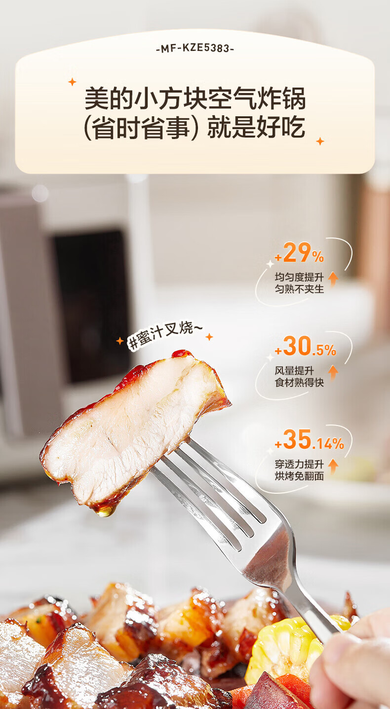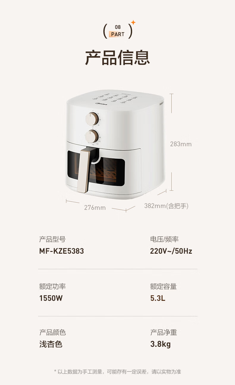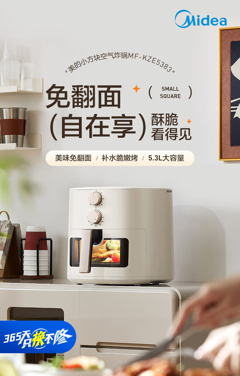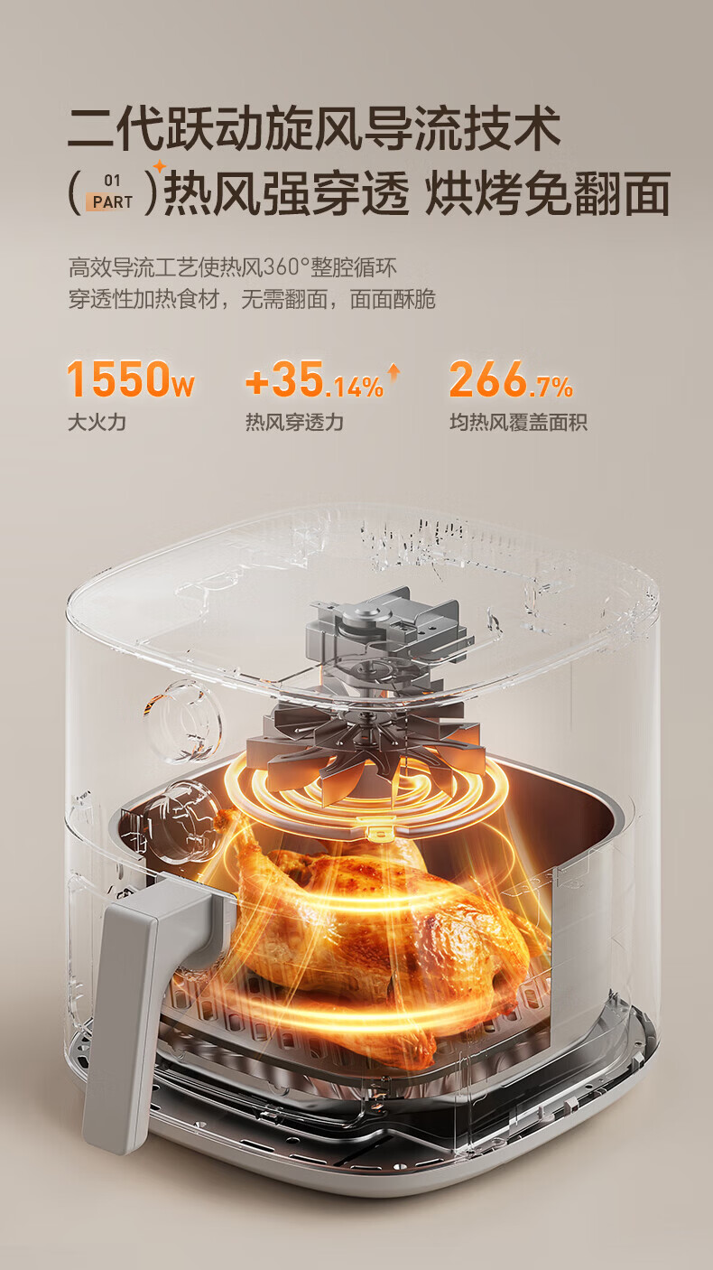 美的多采空气炸锅蒸烤一体2026年新款免翻面多层空气炸锅家用微波炉多功能全自动三合一电烤箱大容量热饭菜 志高米白色【彩色大屏+预约定时+可视窗口】 10L
