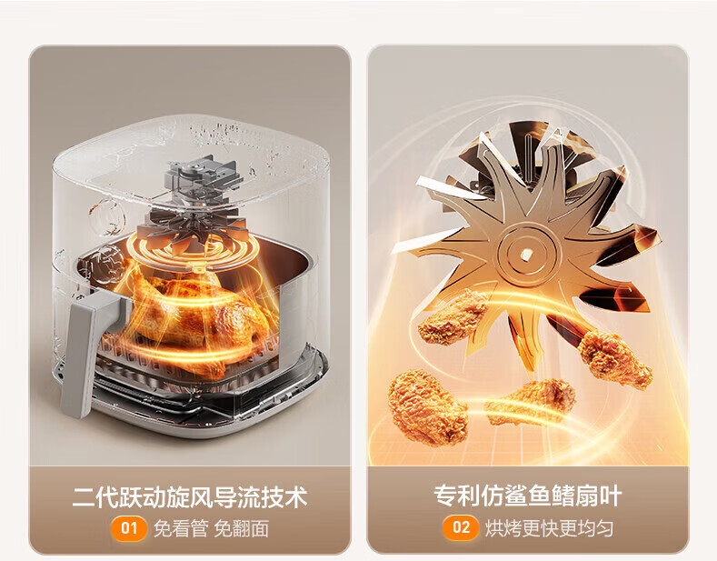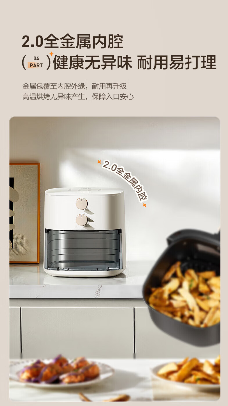 海尔空气炸锅 不沾易清洗 免翻面 大容量家用炸鸡薯条机 蒸汽嫩炸 可视金属内腔电炸锅 5L 大容量HSAF-EV505W