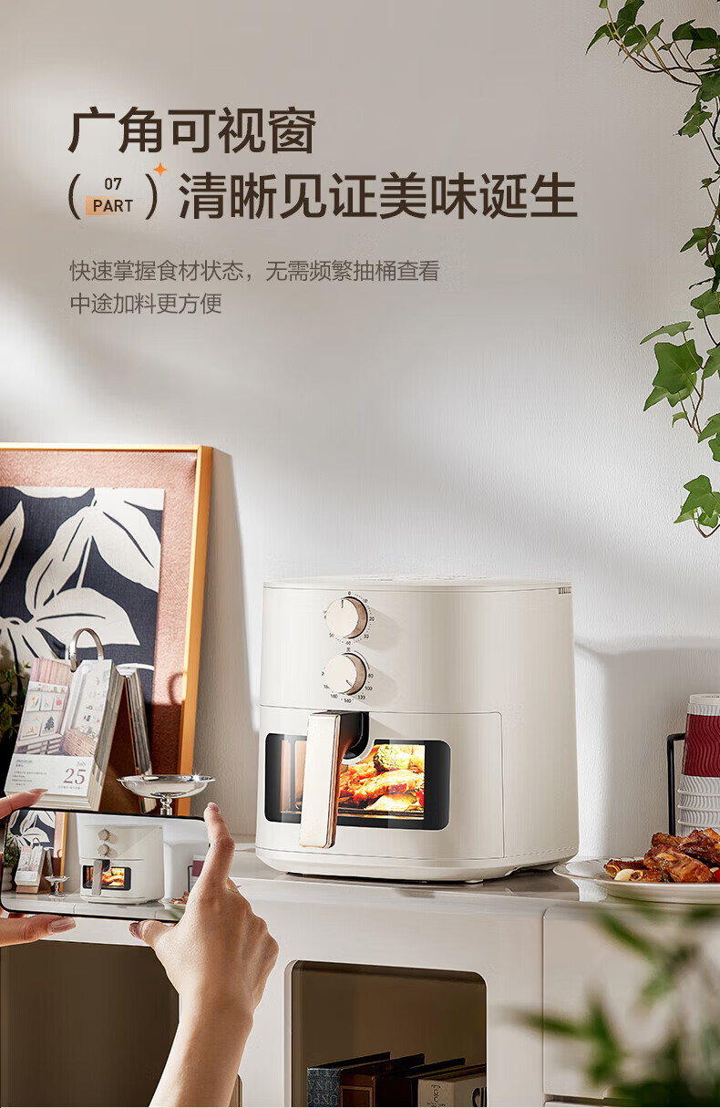 海尔空气炸锅家用多功能 双热源 可视电子触控 大容量全金属内腔 APP远程智控 7L 智家APP操控HSAF-EV703BU1