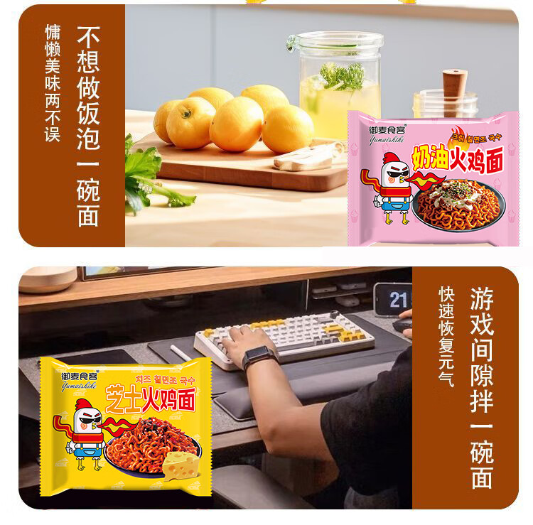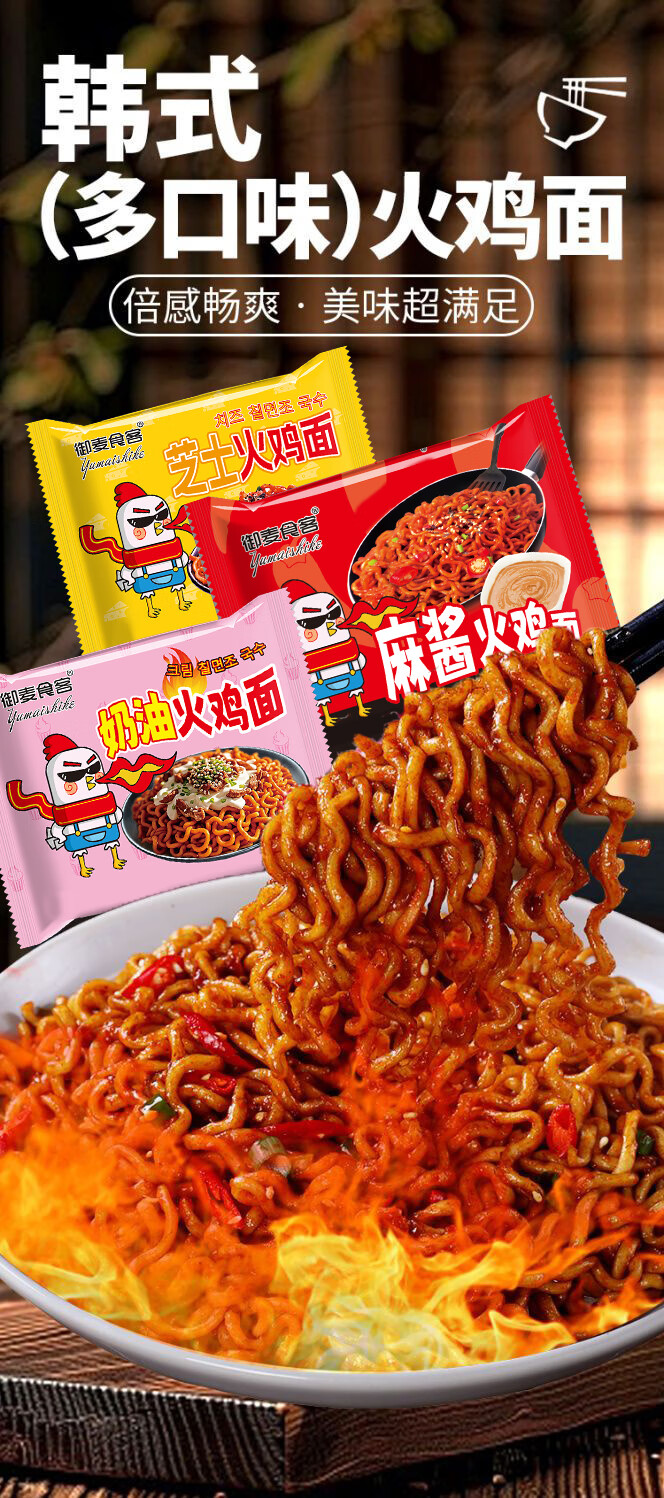 火鸡面奶油麻酱混合口味76g拌面甜辣零食整箱袋装方便面速食夜宵 爆辣火鸡面*2包(拍2单实发5包)