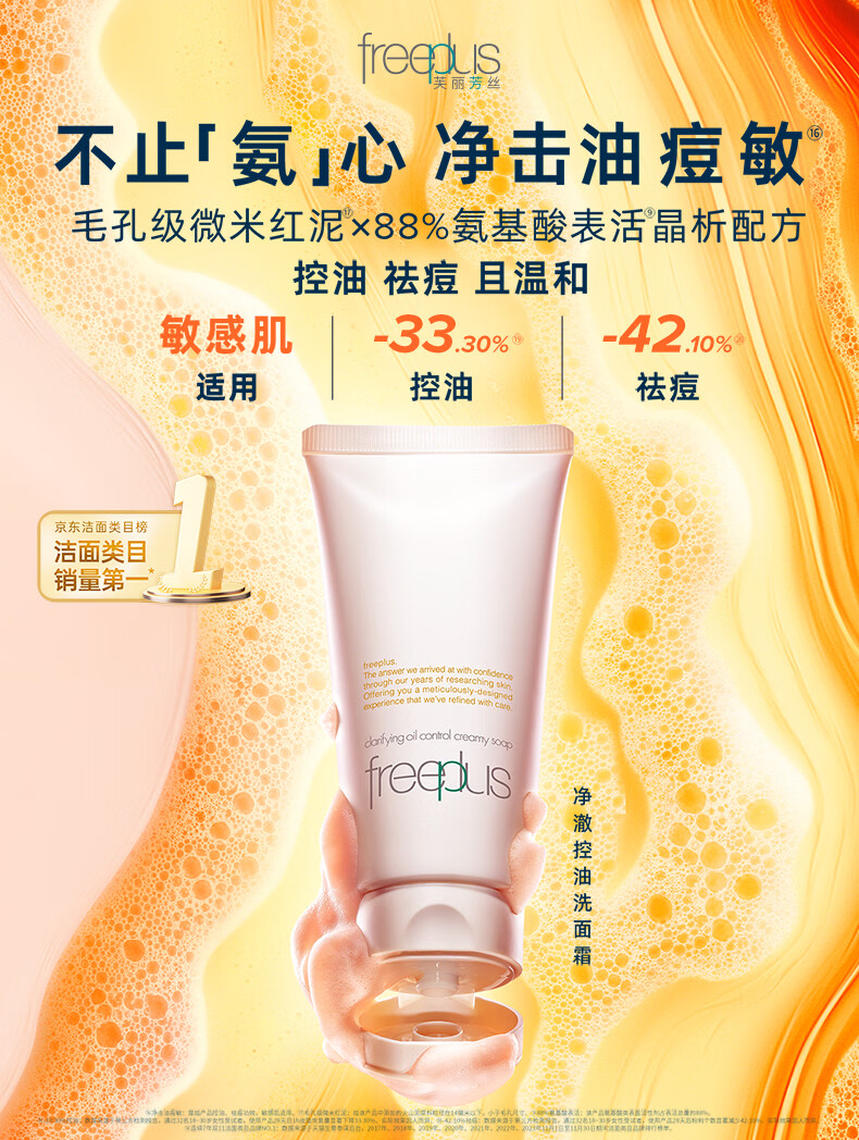 芙丽芳丝(Freeplus)洗面奶男女士氨基酸洁面乳敏感肌控油祛痘深层清洁80g