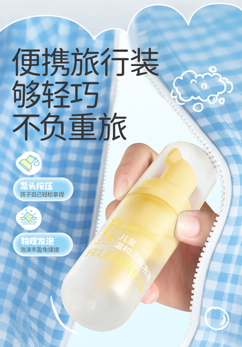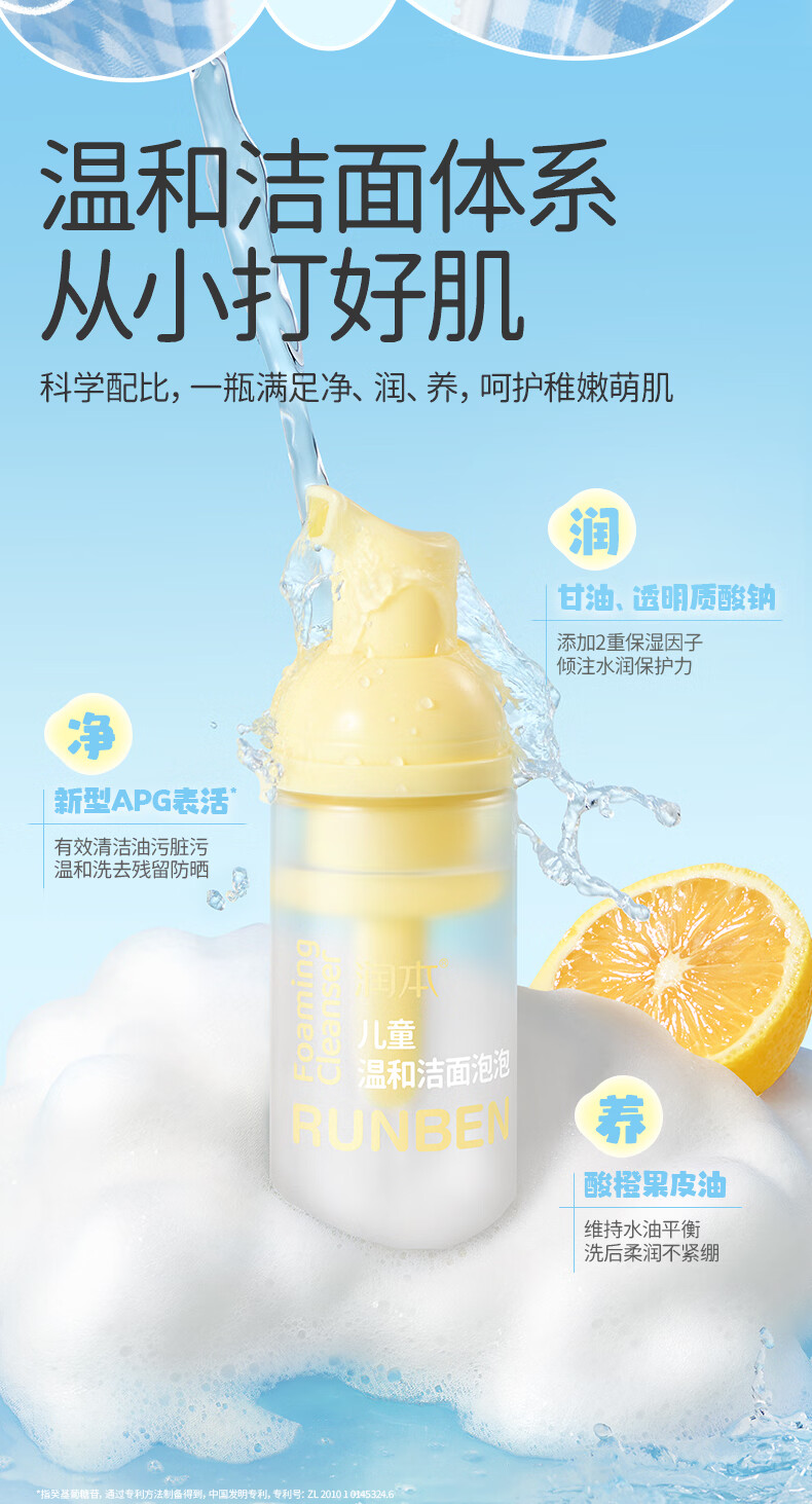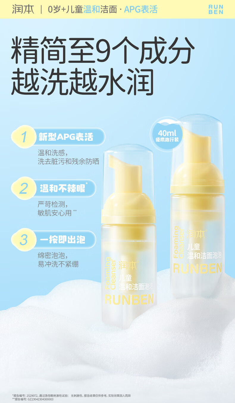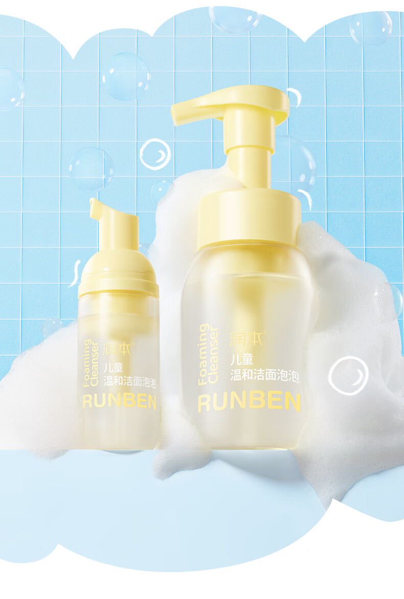 润本儿童洗面奶40ml儿童洁面泡沫0-3-6-12岁女孩男孩洁面乳护肤品