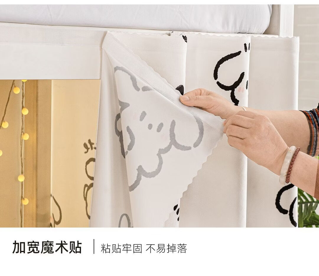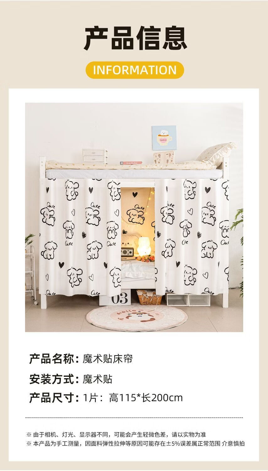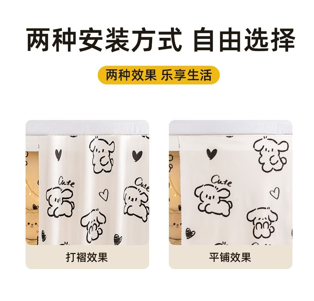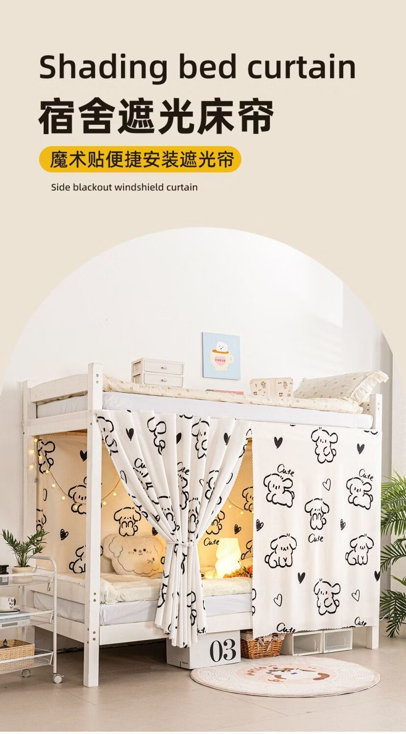 高睿宿舍下铺防尘顶寝室高低床免安装魔术贴隐私防尘床帘单人印花床帘 蹦跶线条狗【遮丑防尘-柔和遮光更透气】 1.15m高*2.0m长-两片帘【遮挡正面+侧面】