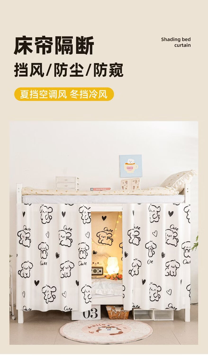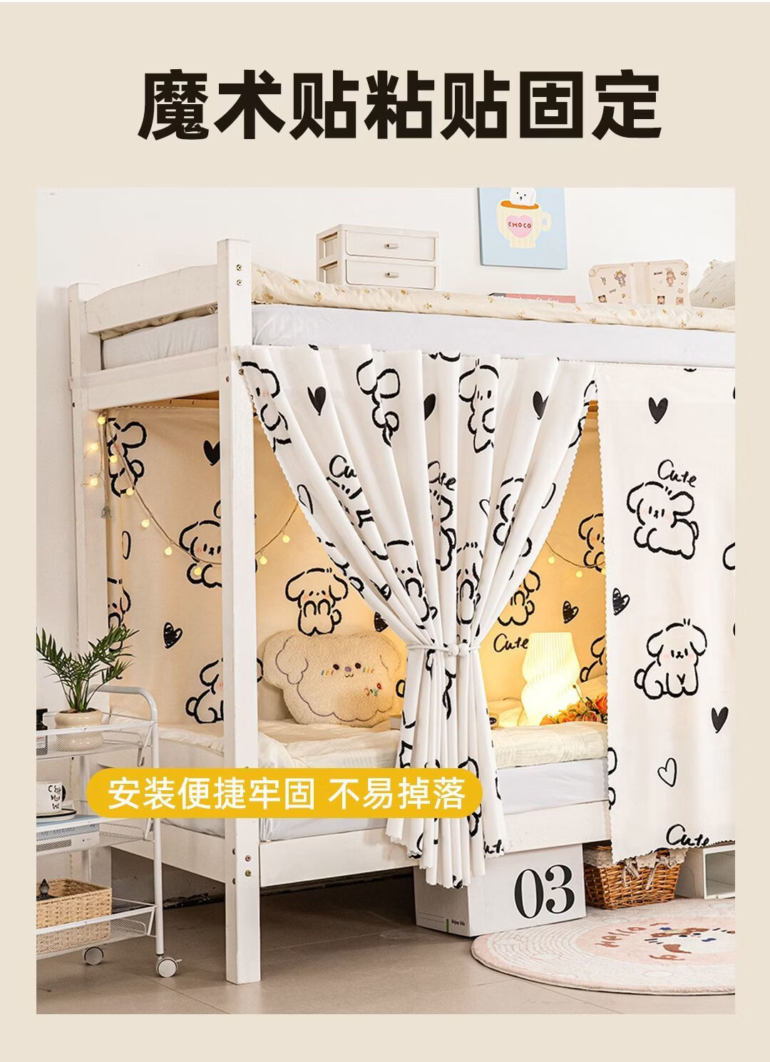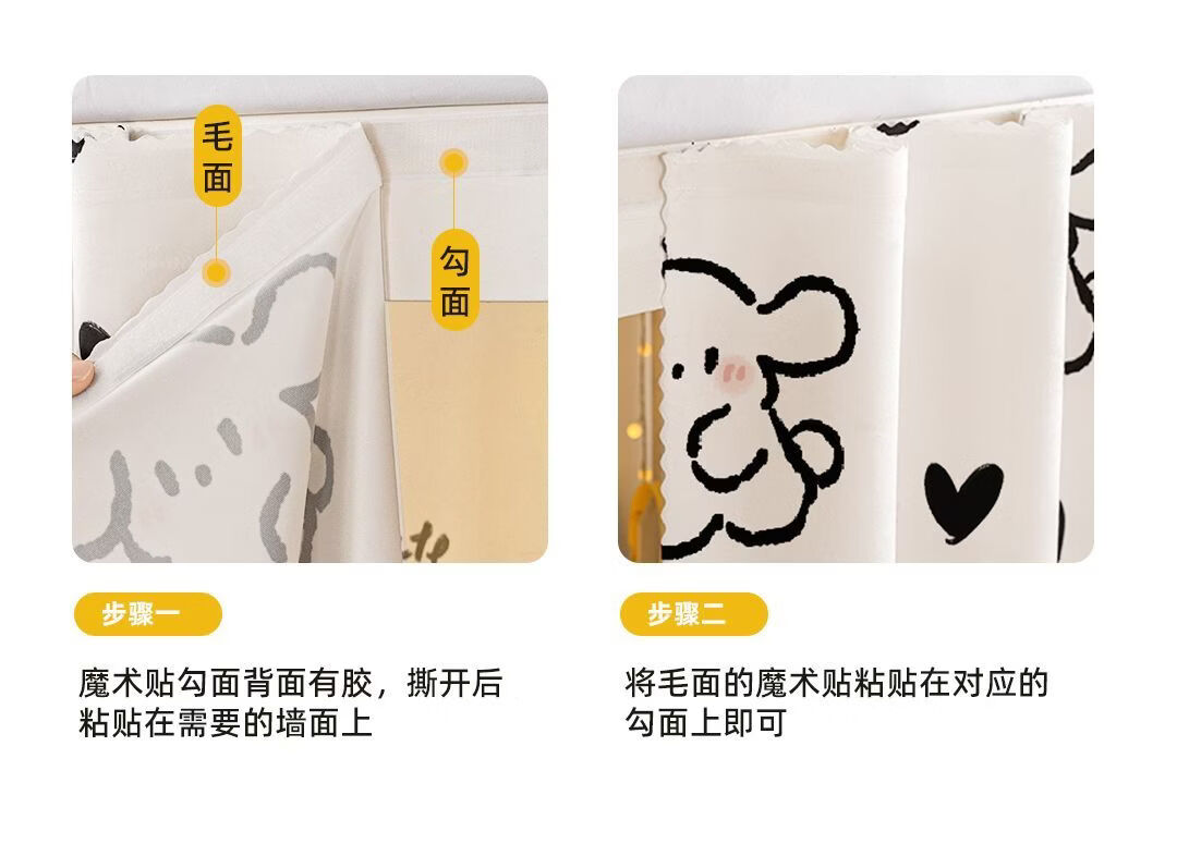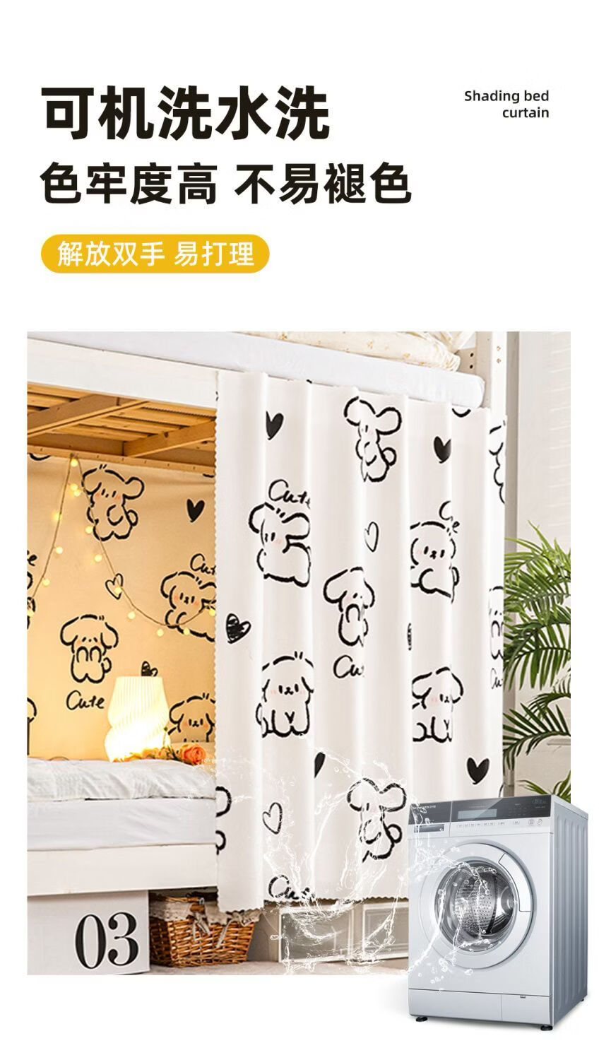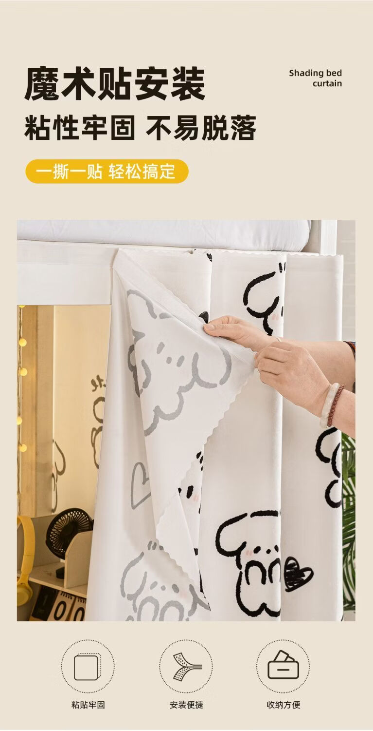 高睿宿舍下铺防尘顶寝室高低床免安装魔术贴隐私防尘床帘单人印花床帘 蹦跶线条狗【遮丑防尘-柔和遮光更透气】 1.15m高*2.0m长-两片帘【遮挡正面+侧面】