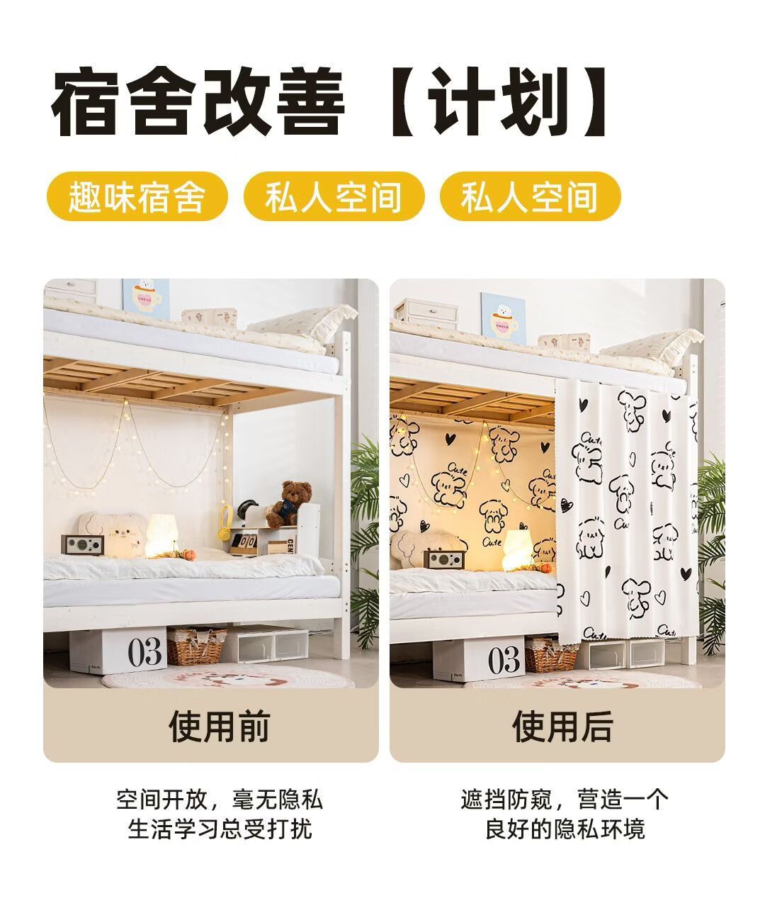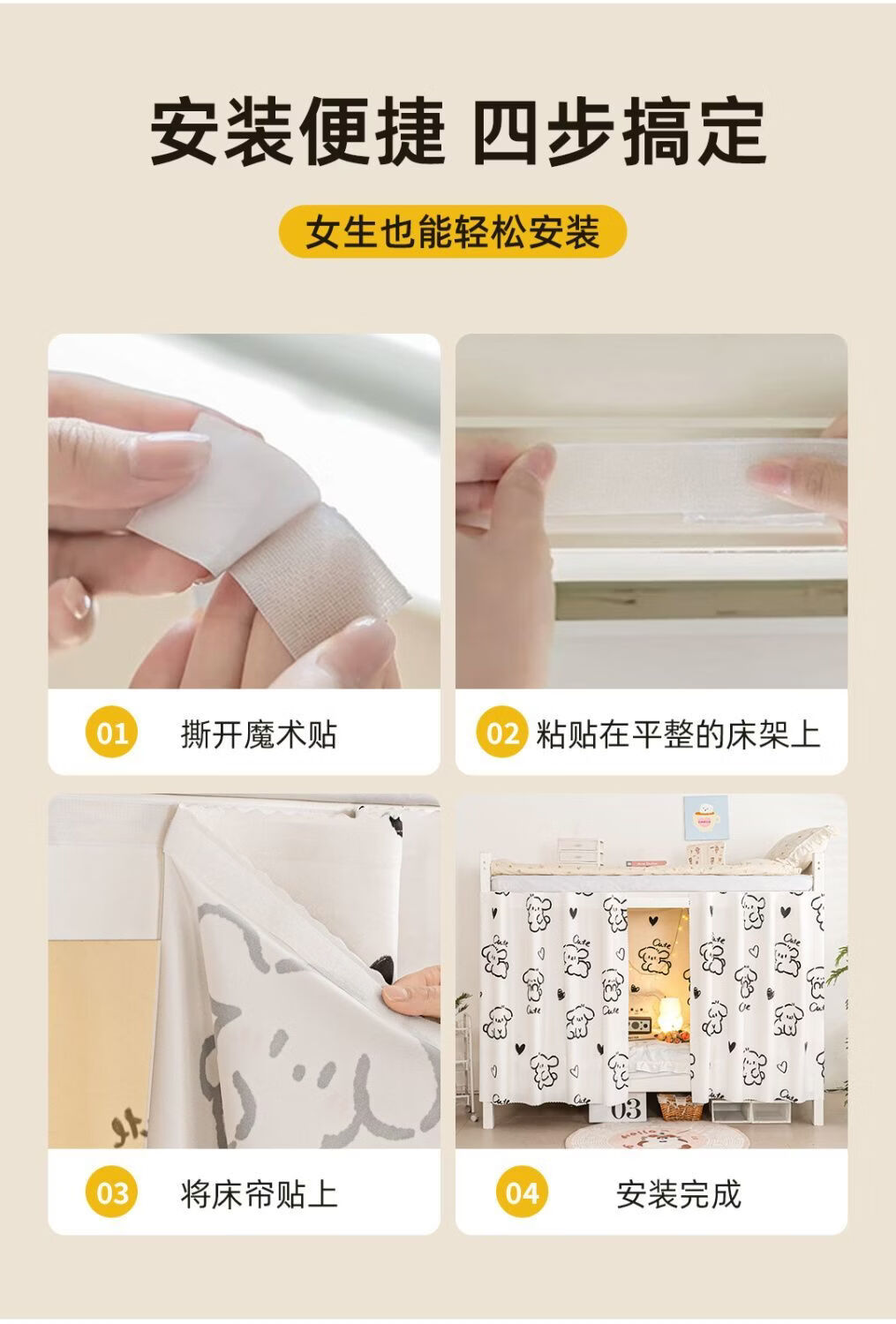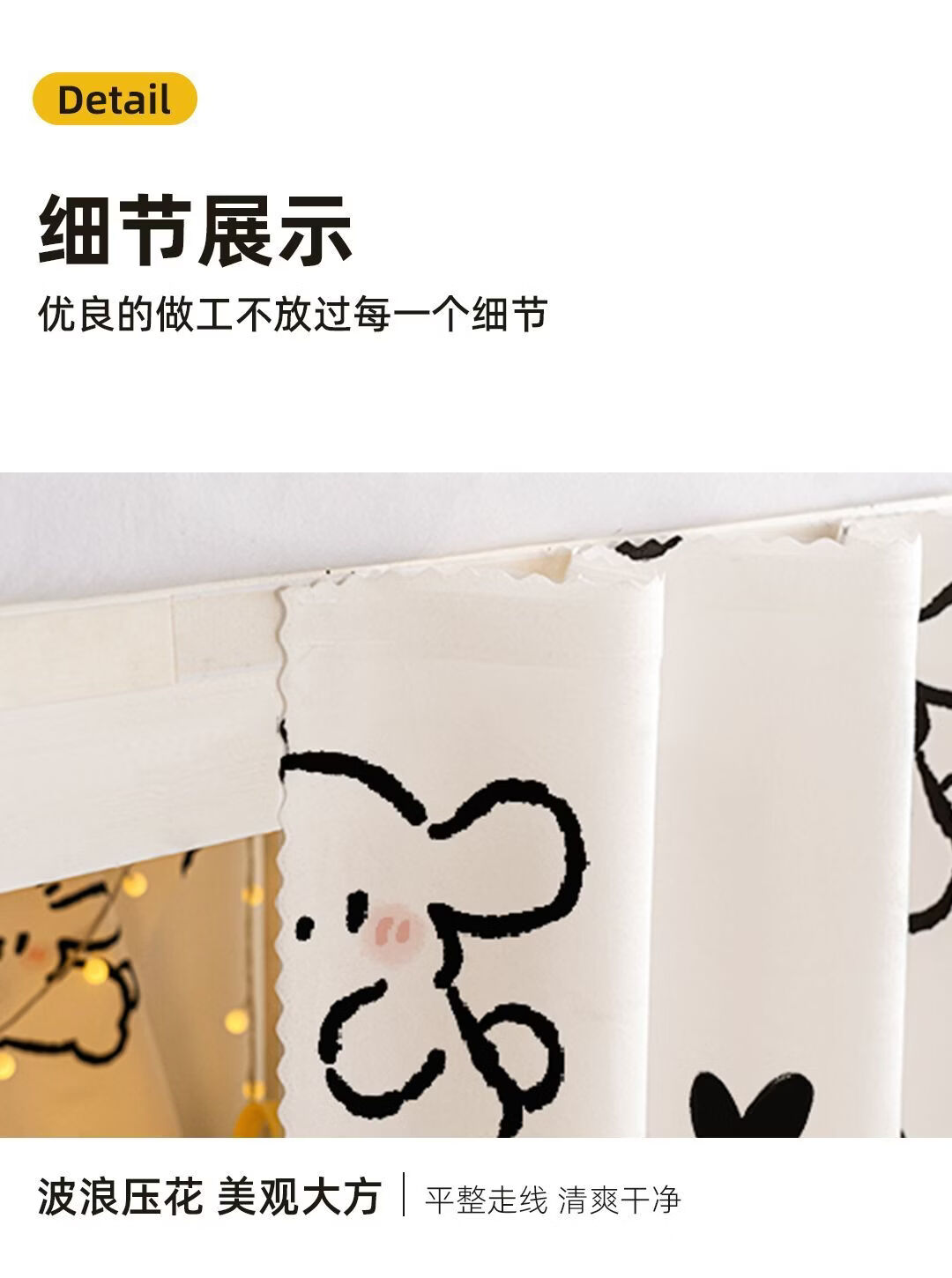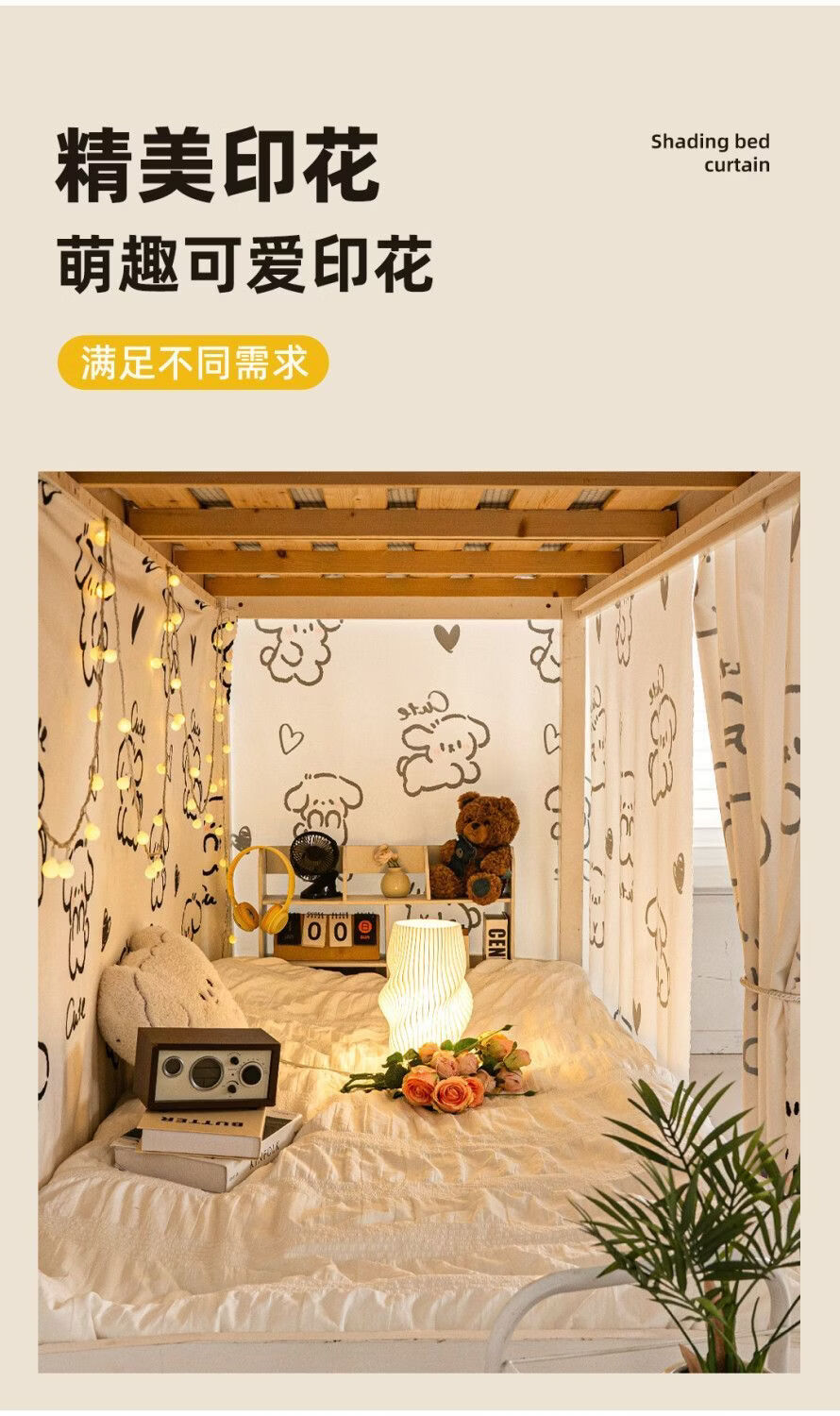 高睿宿舍下铺防尘顶寝室高低床免安装魔术贴隐私防尘床帘单人印花床帘 蹦跶线条狗【遮丑防尘-柔和遮光更透气】 1.15m高*2.0m长-两片帘【遮挡正面+侧面】