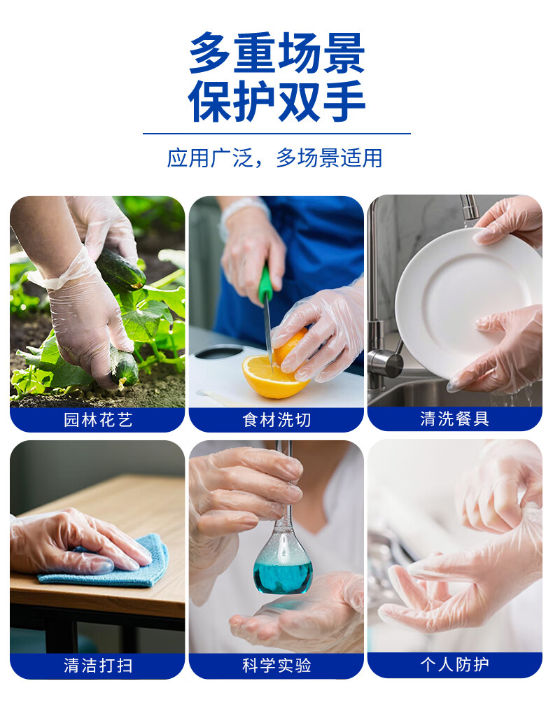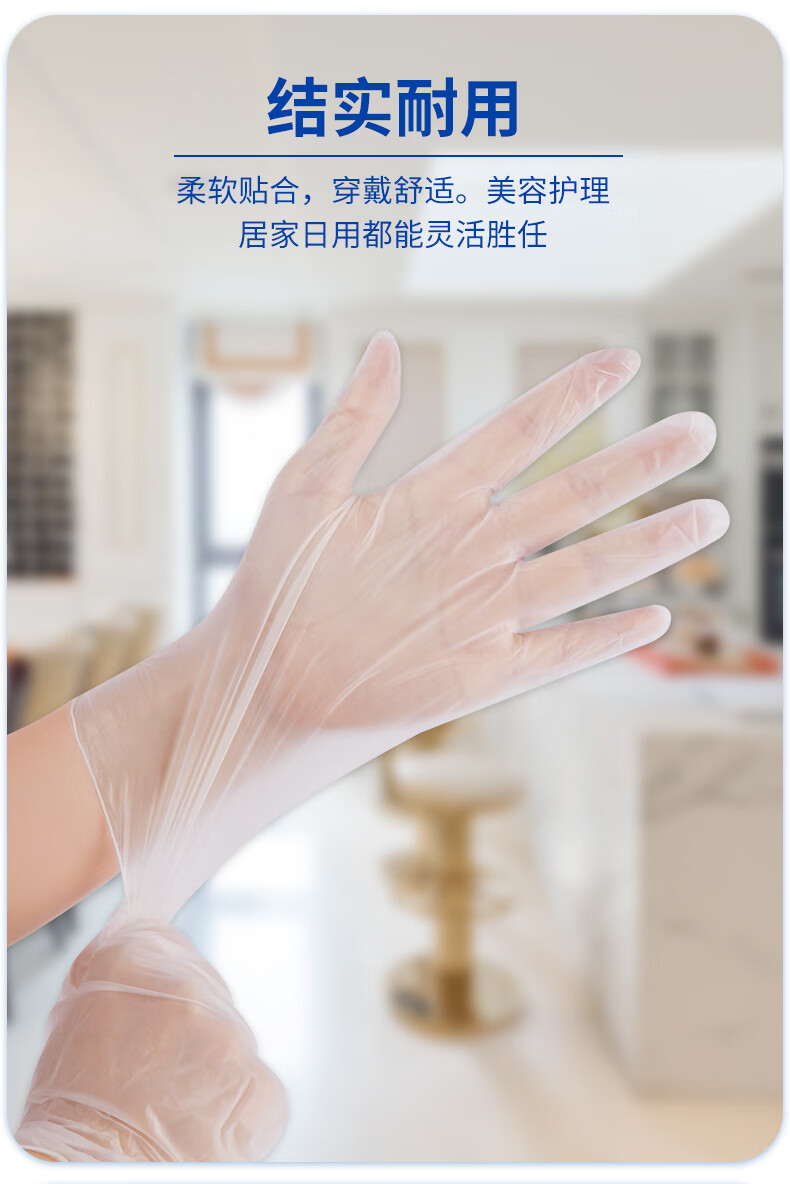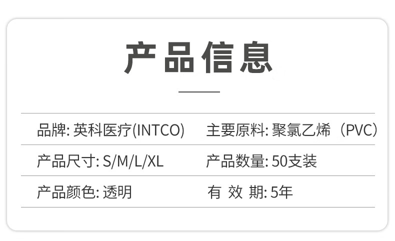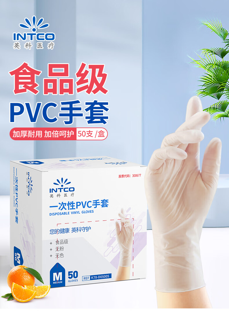 英科医疗一次性PVC手套 食品级家务清洁洗碗手套 加厚耐磨 S码 50只/盒
