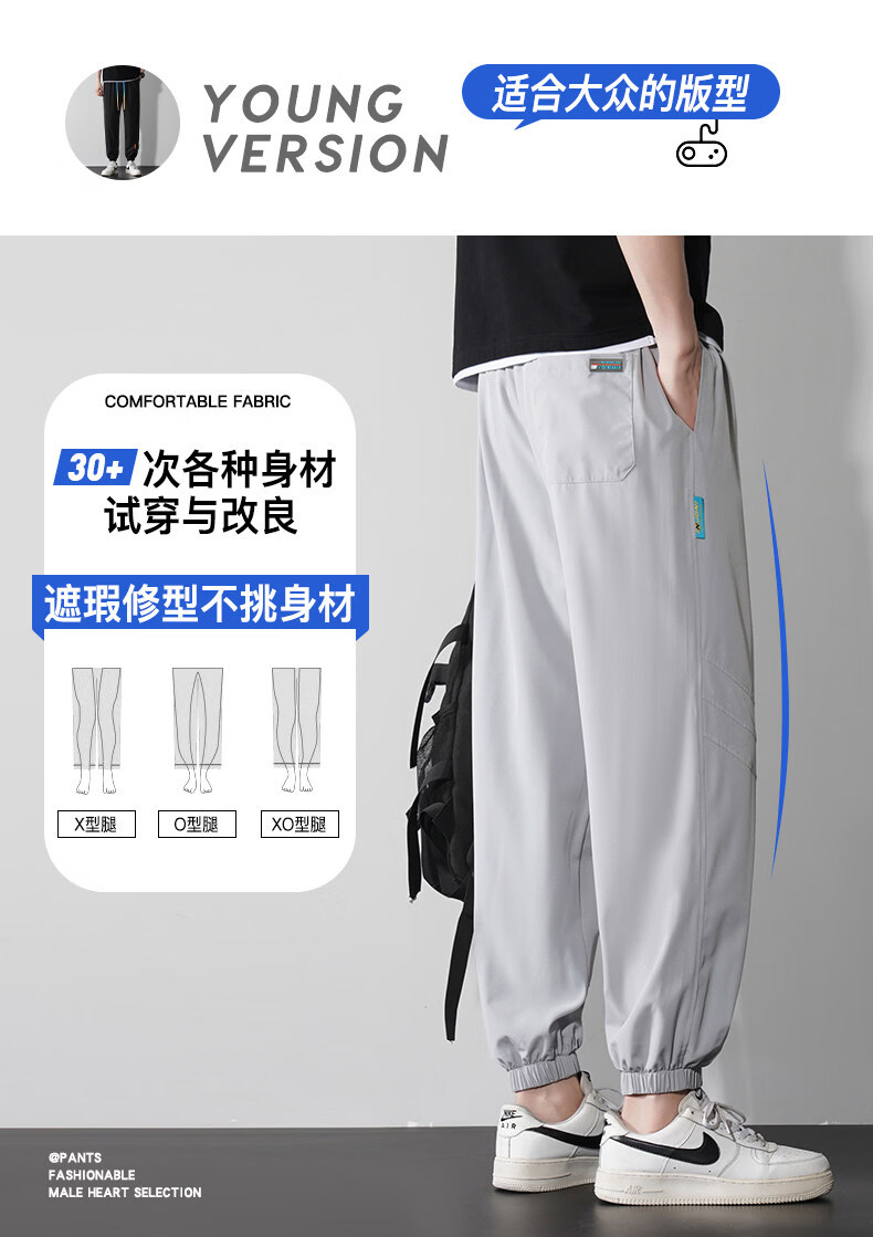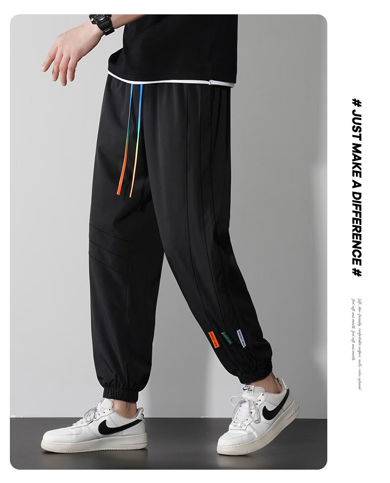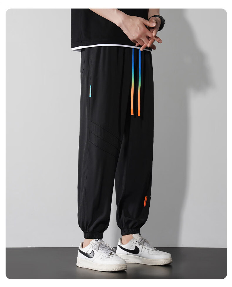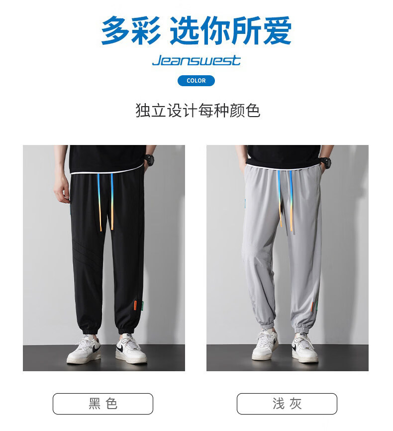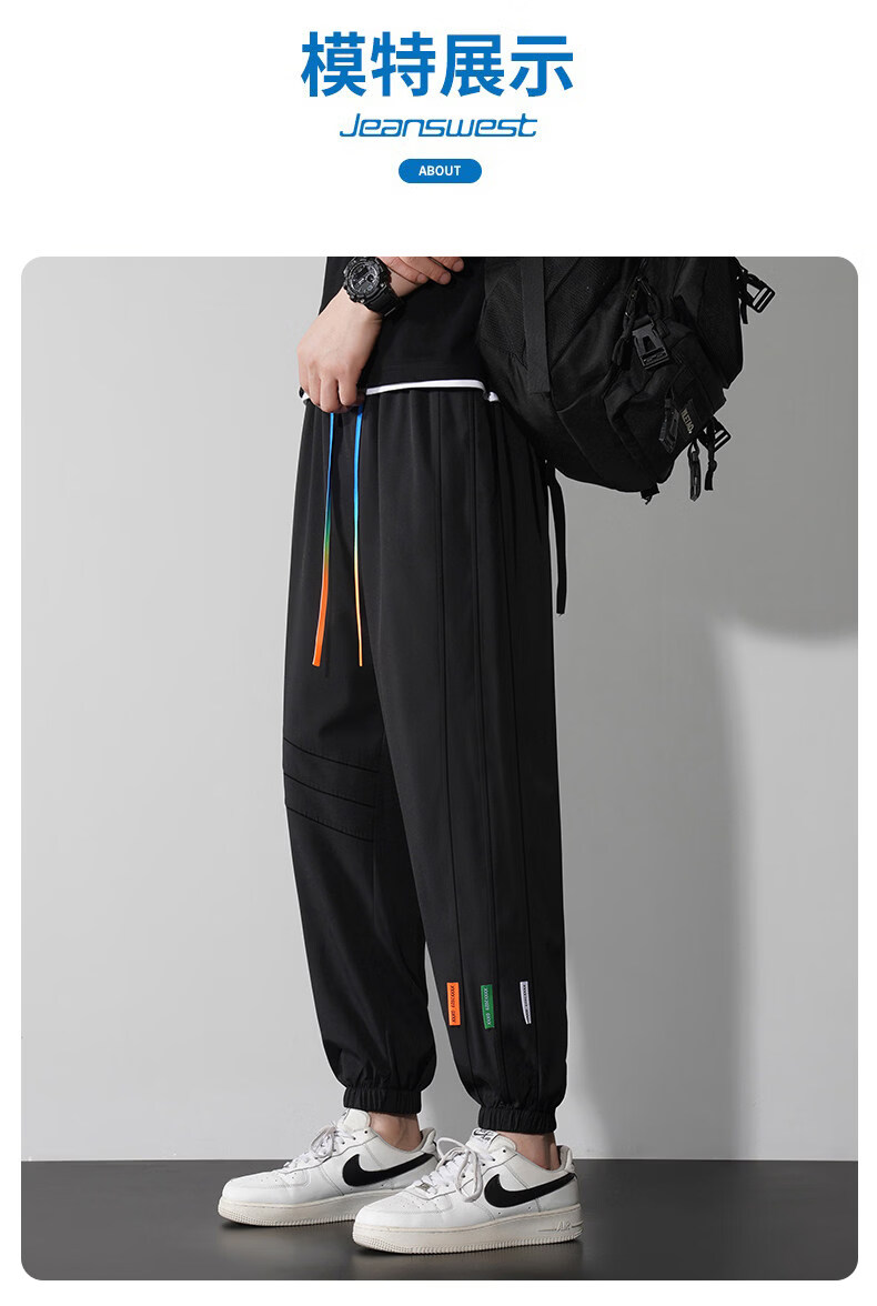 真维斯(Jeanswest)2026新款春夏季潮牌裤子男生薄款简约宽松夏天冰丝运动休闲长卫裤 B102黑色 M
