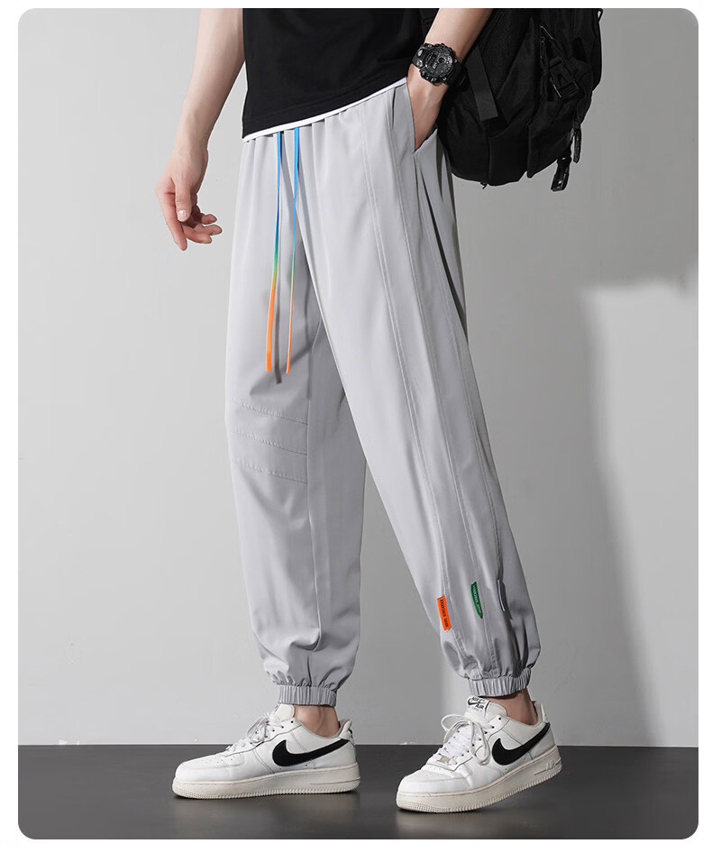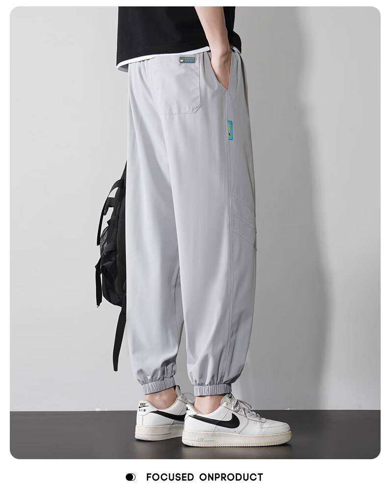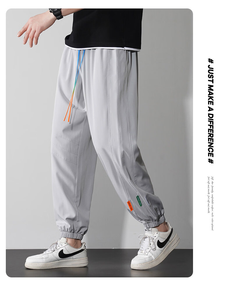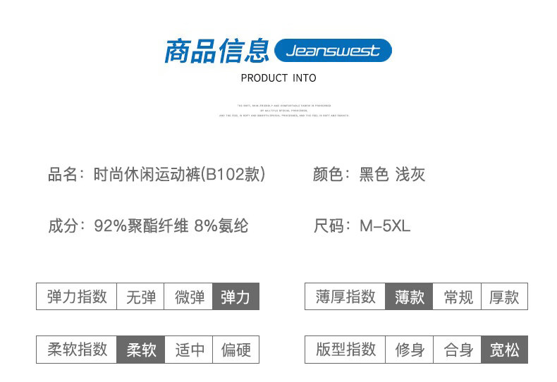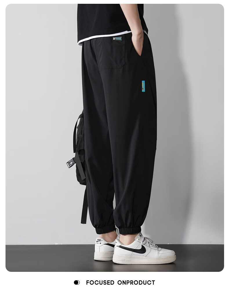 真维斯(Jeanswest)2026新款春夏季潮牌裤子男生薄款简约宽松夏天冰丝运动休闲长卫裤 B102黑色 M