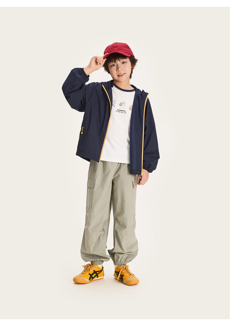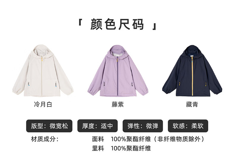 棉叔叔【弹力迷你格外套】棉叔叔女童春季新轻户外连帽外套男童上衣2.24 冷月白 120 120