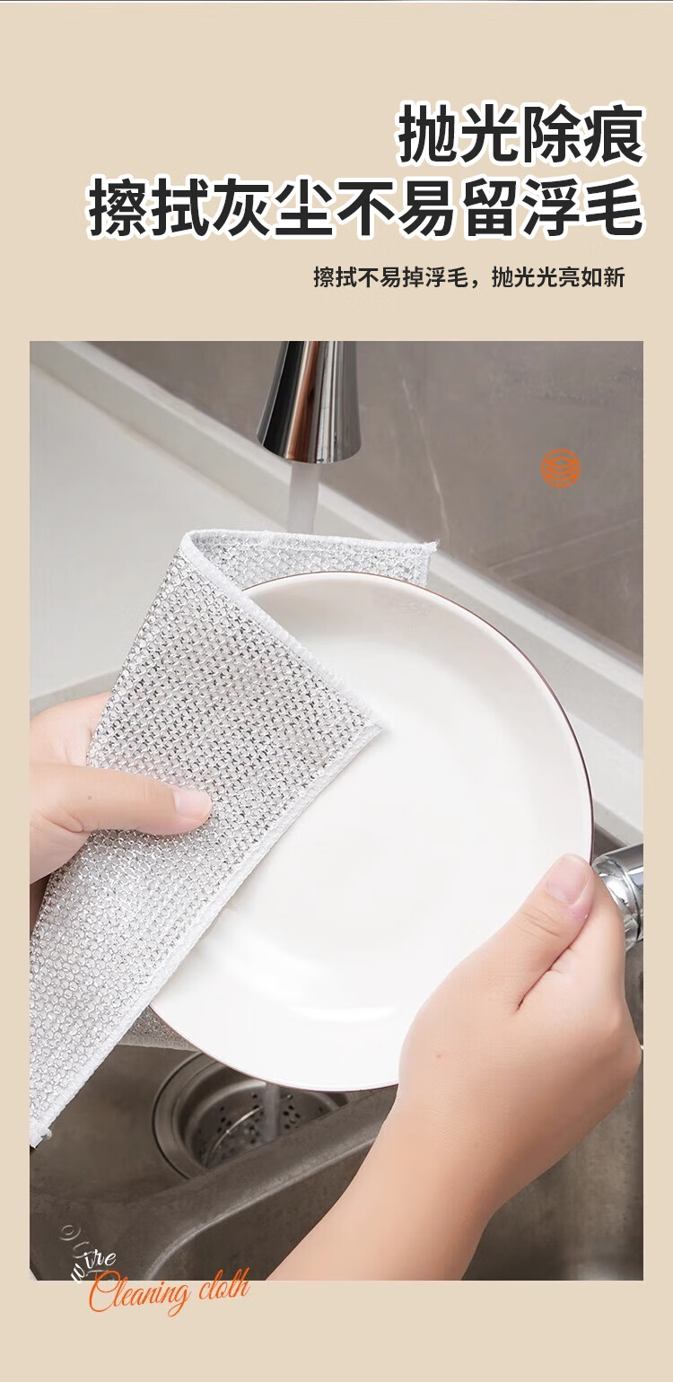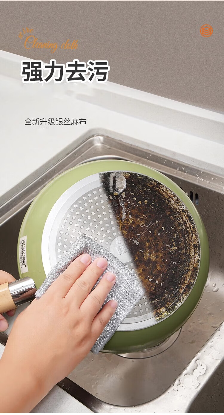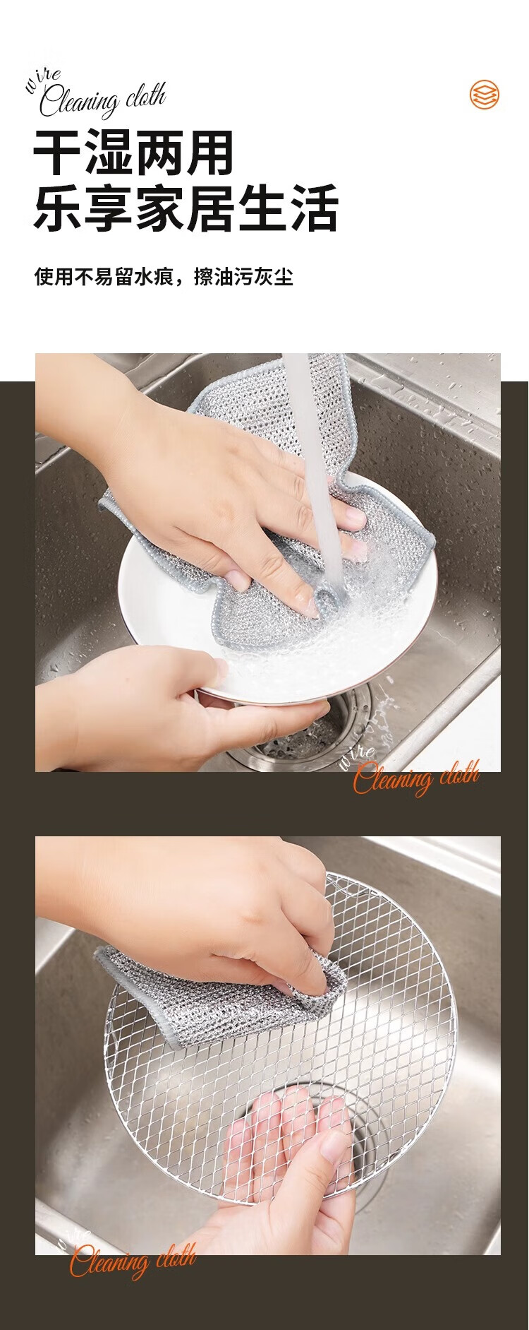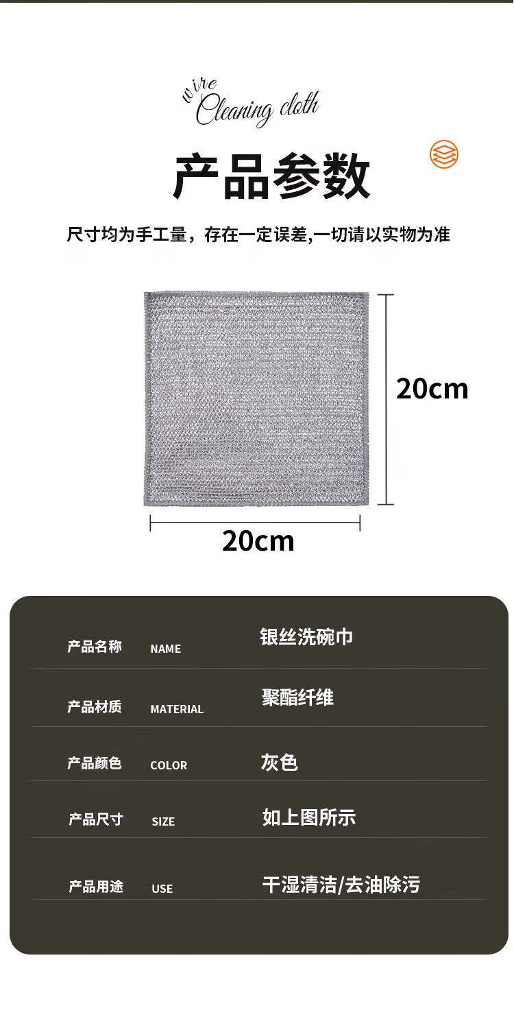 洁比世钢丝抹布20*20cm*10条厨房银丝洗碗布双面不易沾油刷锅神器清洁布