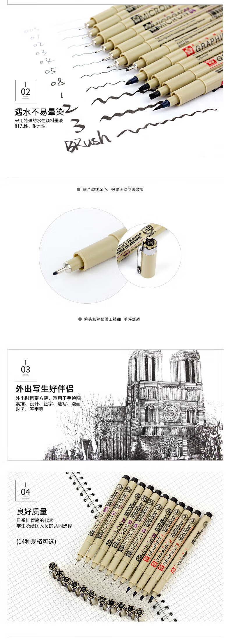 樱花(SAKURA)PIGMA针管笔勾线笔 1号黑色硬头1.00mm 日本进口防水绘图笔水笔学生儿童美术绘画手绘漫画动漫设计