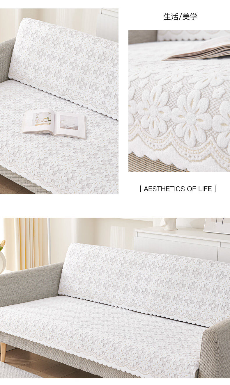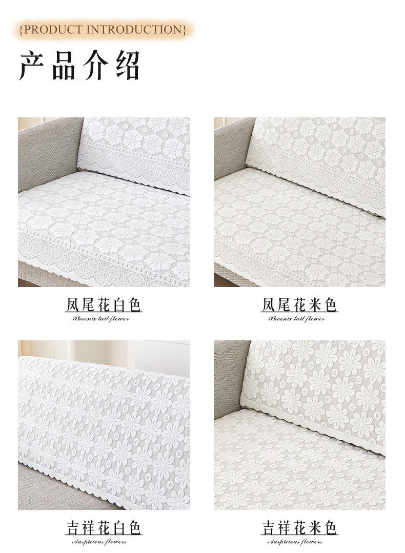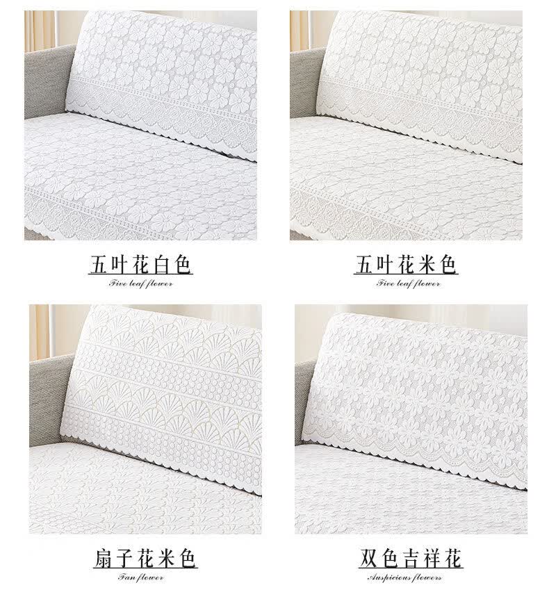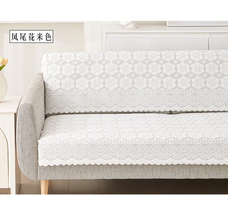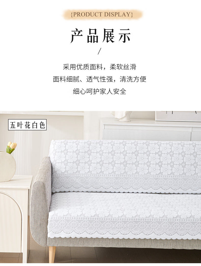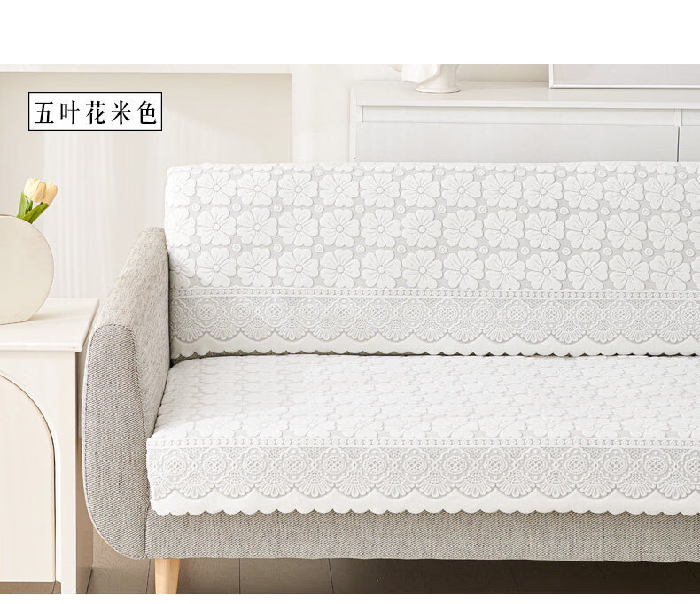 正圣奶油风蕾丝沙发巾扶手巾沙发垫四季通用靠背巾盖布防滑套罩搭巾 加厚款-五页花米色 支持定制联系客服