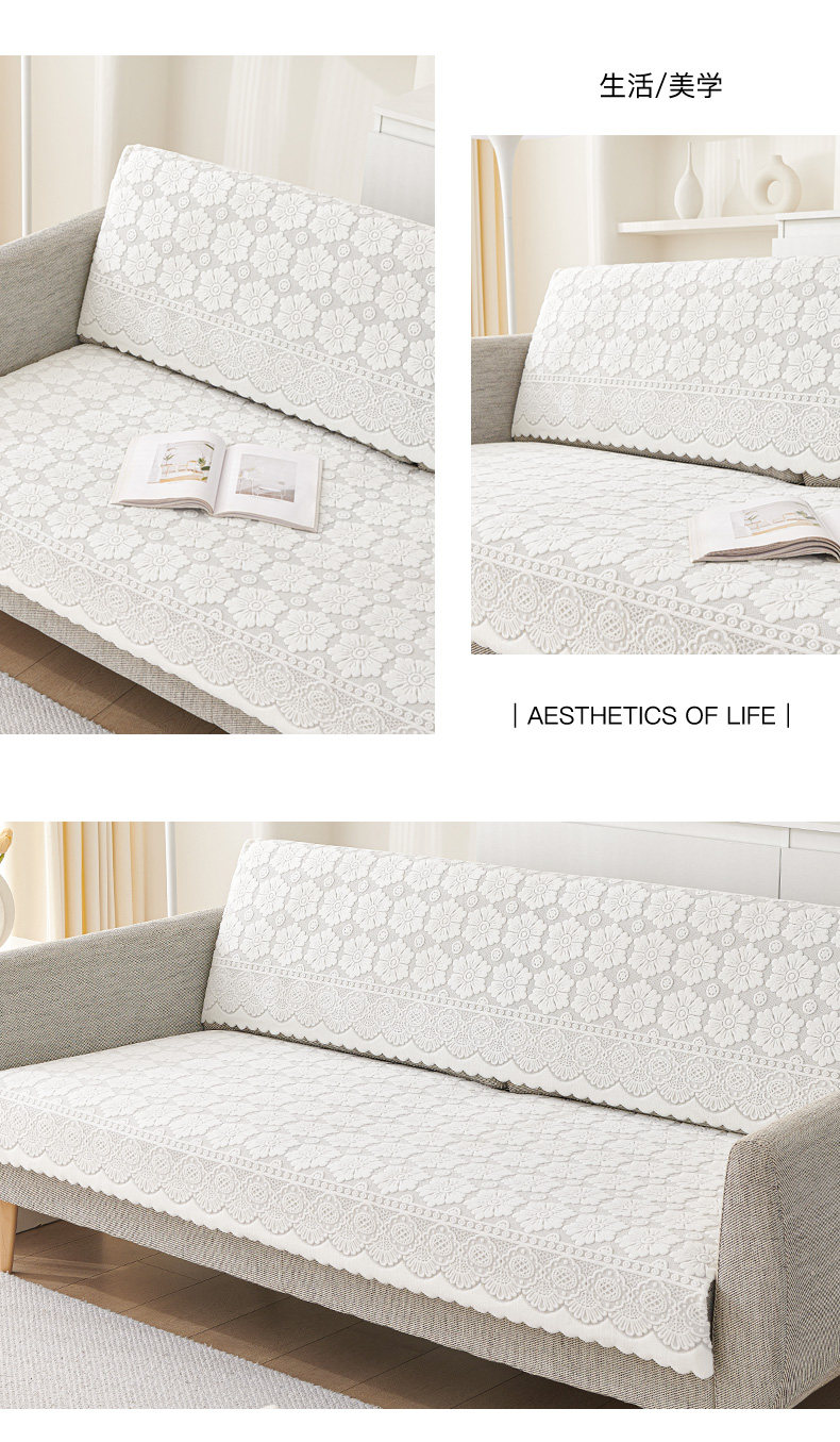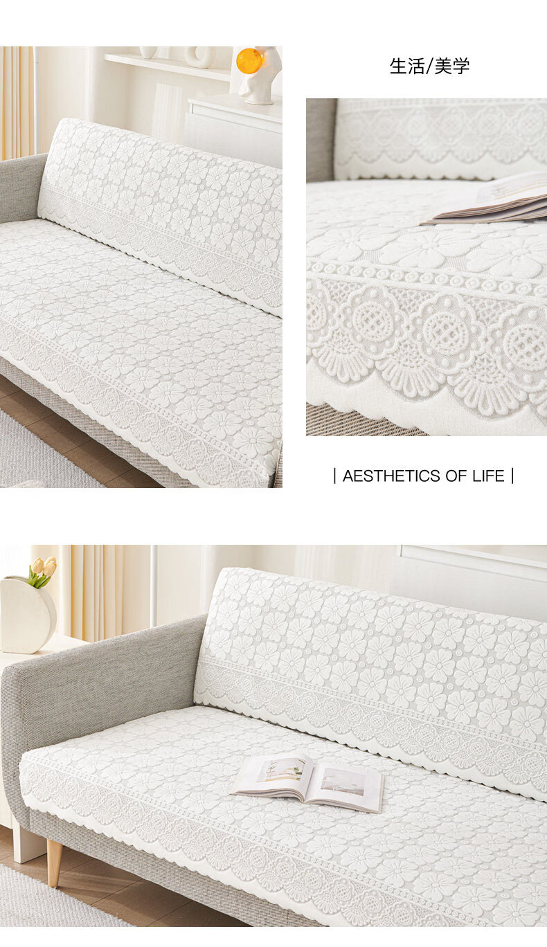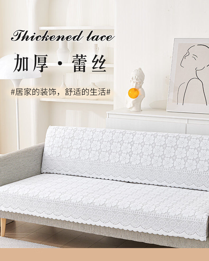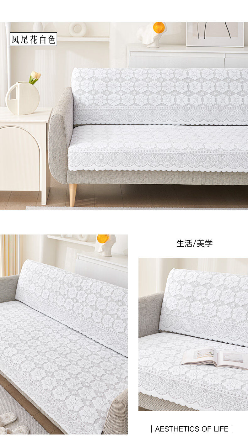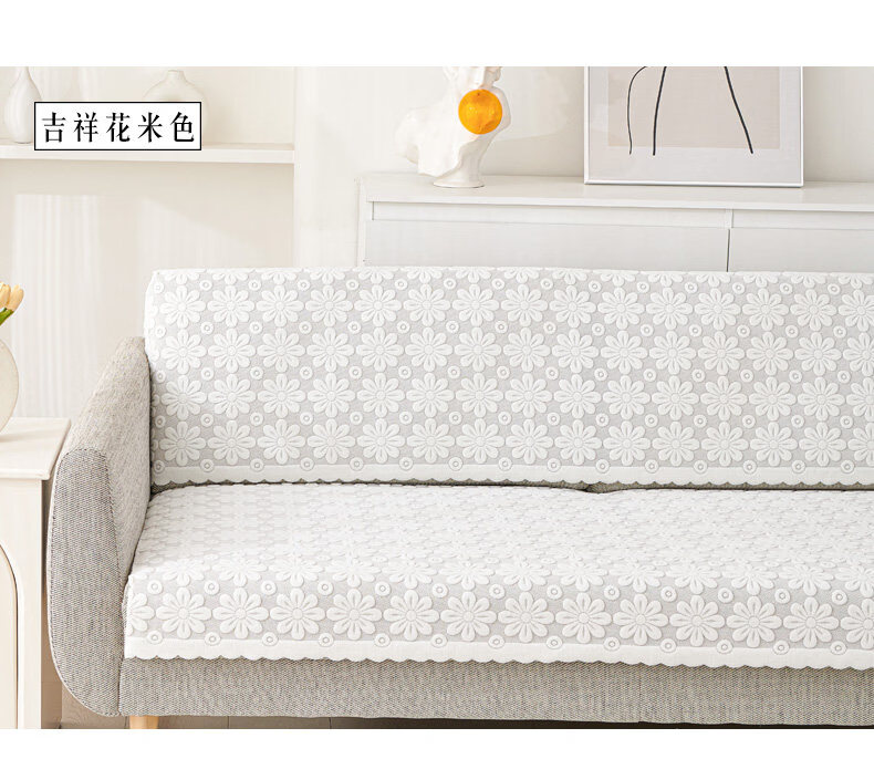 正圣奶油风蕾丝沙发巾扶手巾沙发垫四季通用靠背巾盖布防滑套罩搭巾 加厚款-五页花米色 支持定制联系客服