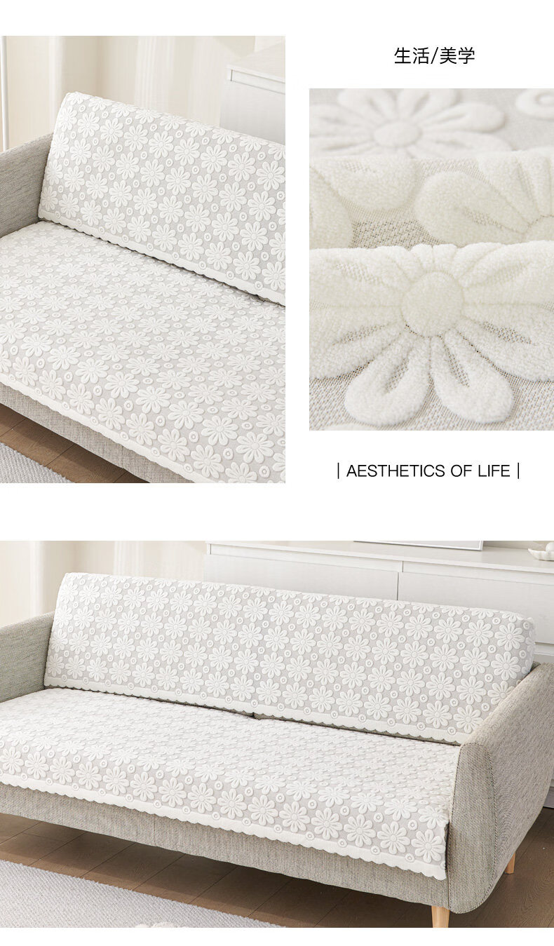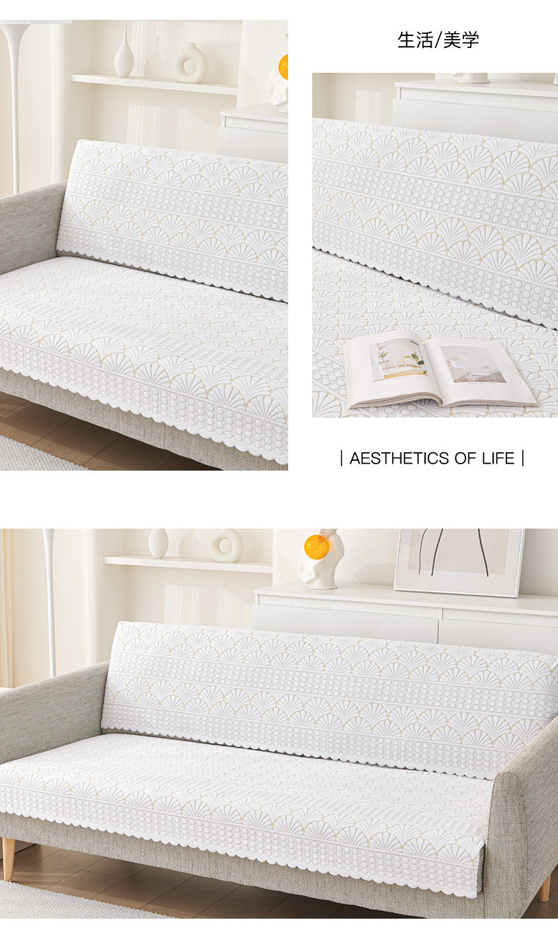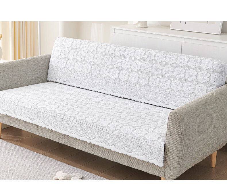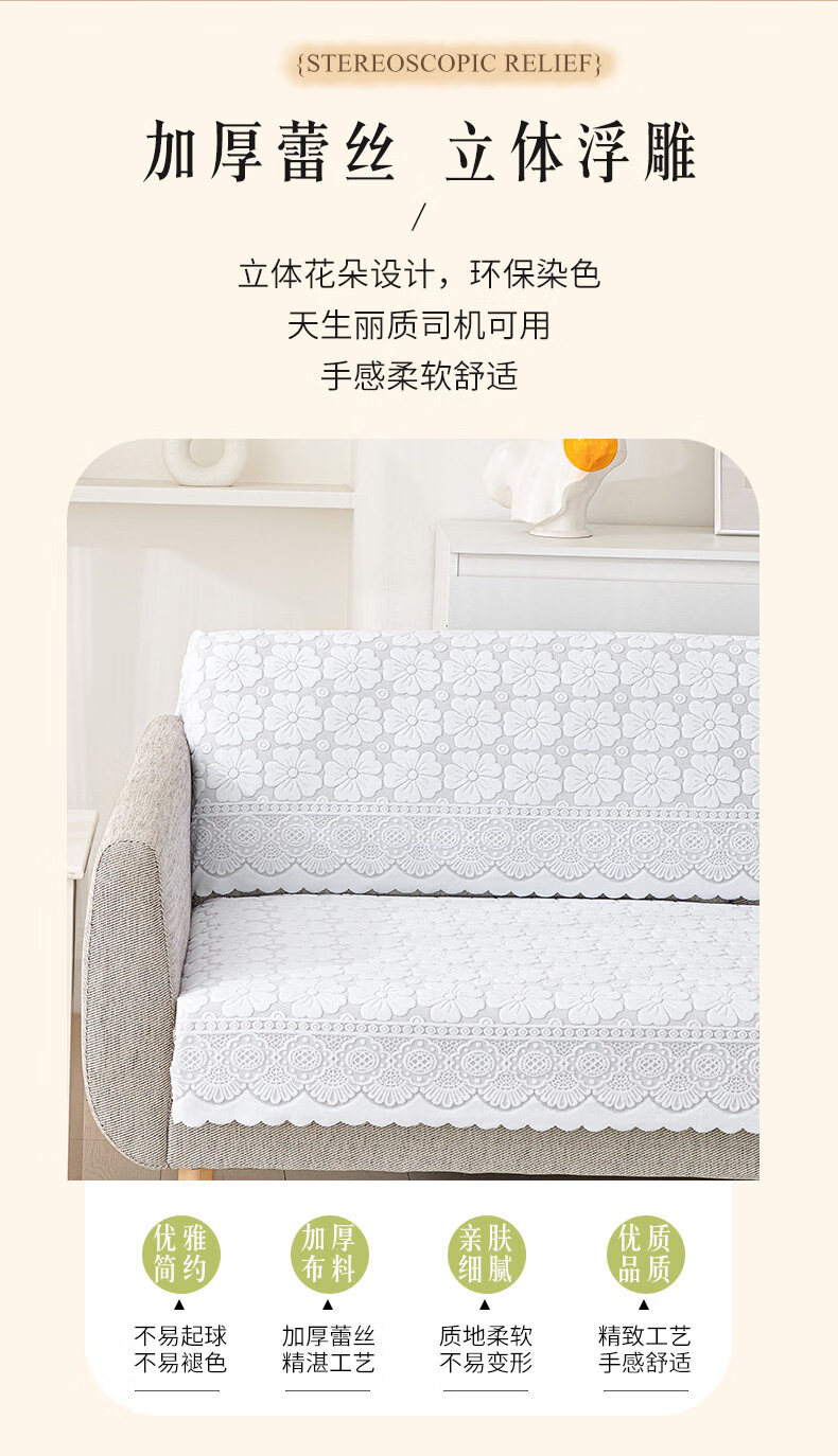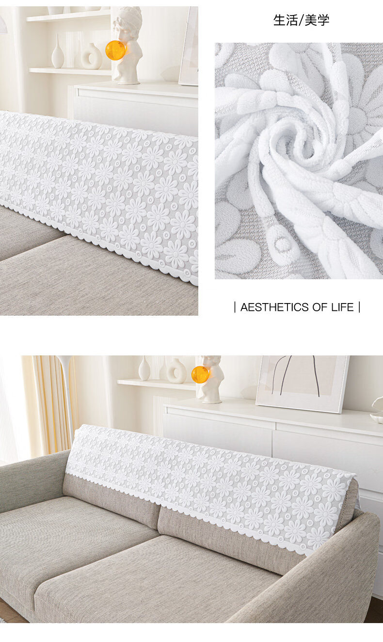 正圣奶油风蕾丝沙发巾扶手巾沙发垫四季通用靠背巾盖布防滑套罩搭巾 加厚款-五页花米色 支持定制联系客服