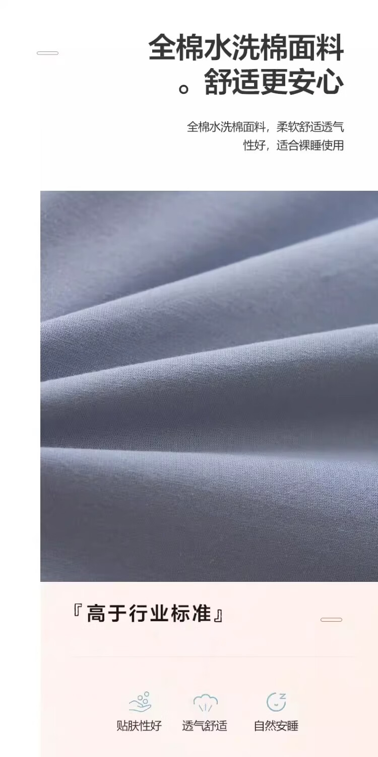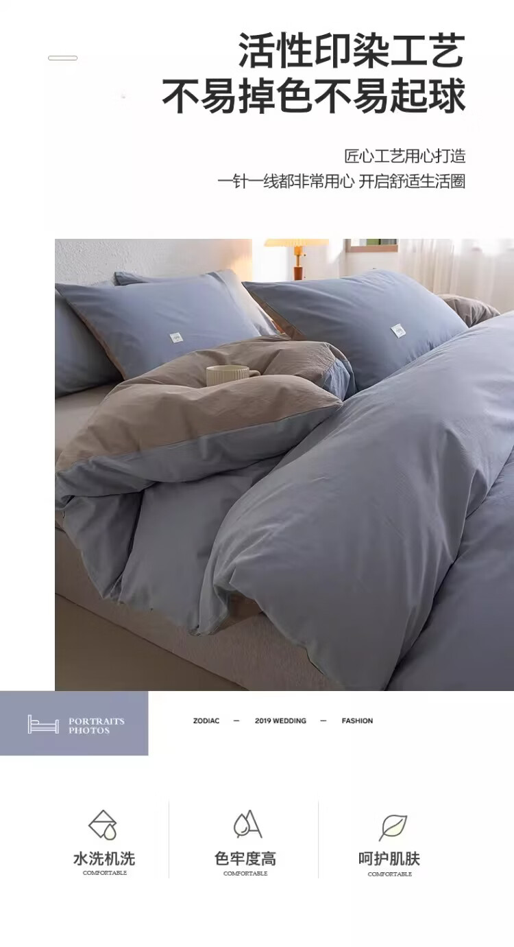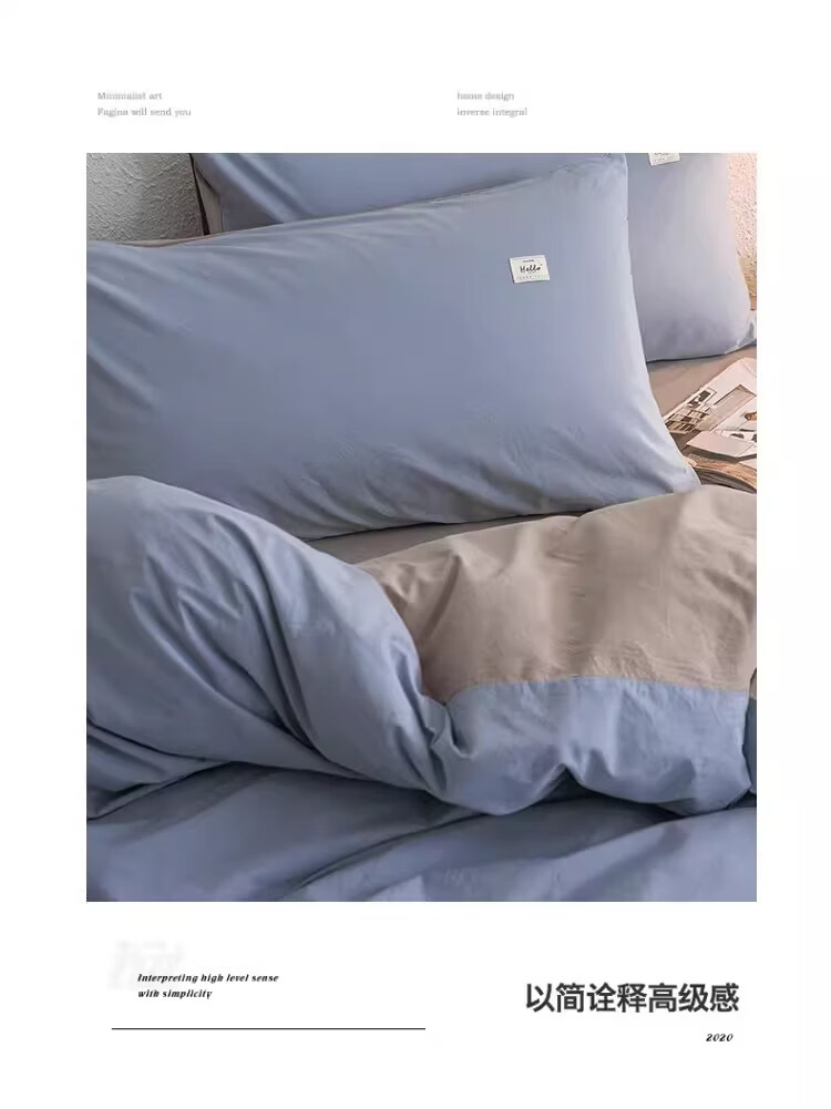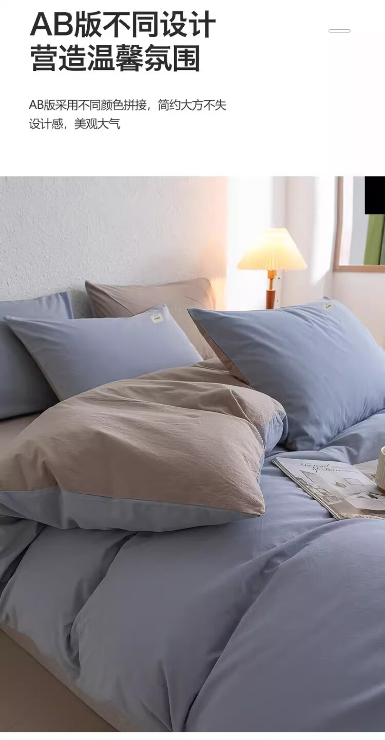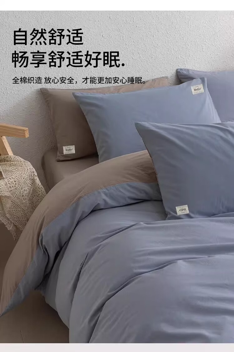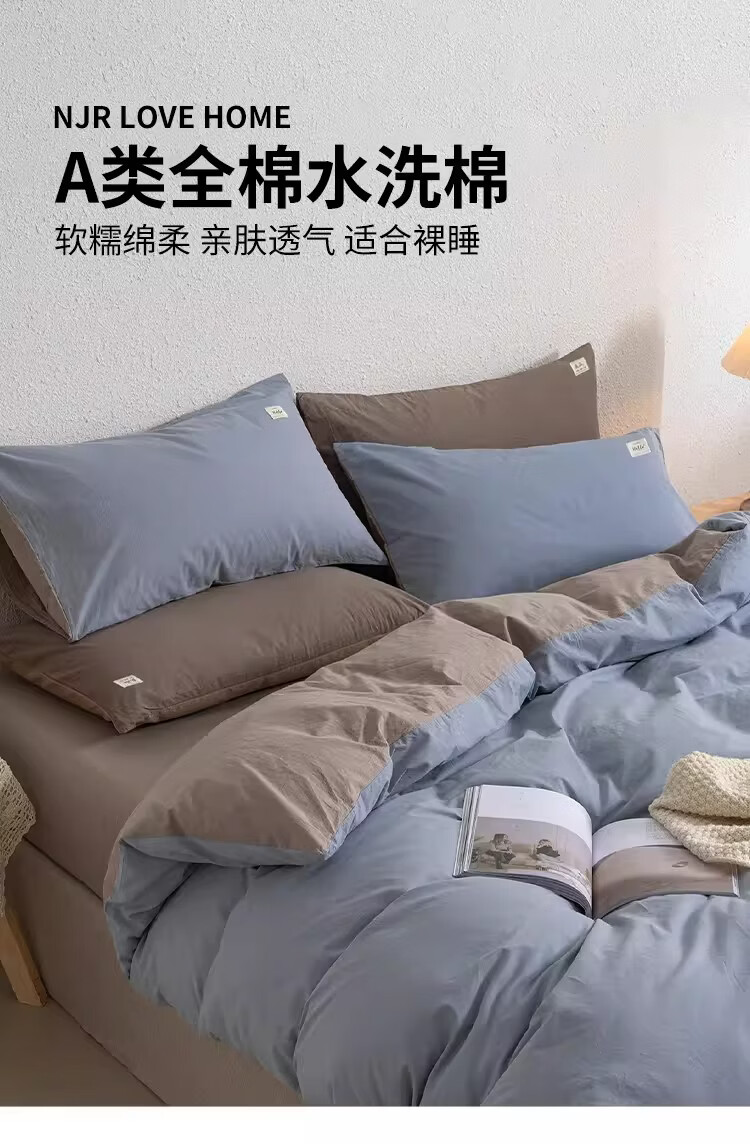 无印良品A类简约纯棉被套150x200cm全棉被罩加被芯被褥单双人家用床上用品 牛仔蓝+浅灰【精梳全棉 水洗工艺】 150cm*200cm-单被套+3斤被芯