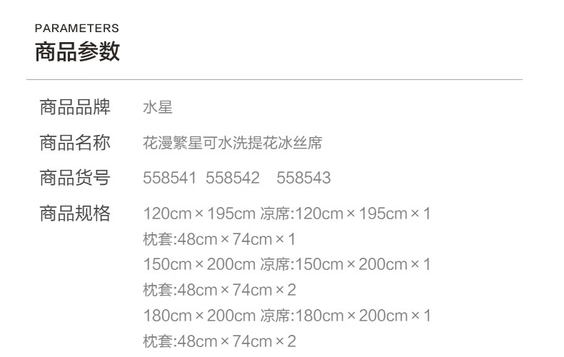 水星家纺花漫繁星可水洗提花冰丝席 花漫繁星可水洗提花冰丝席 195cm*120cm
