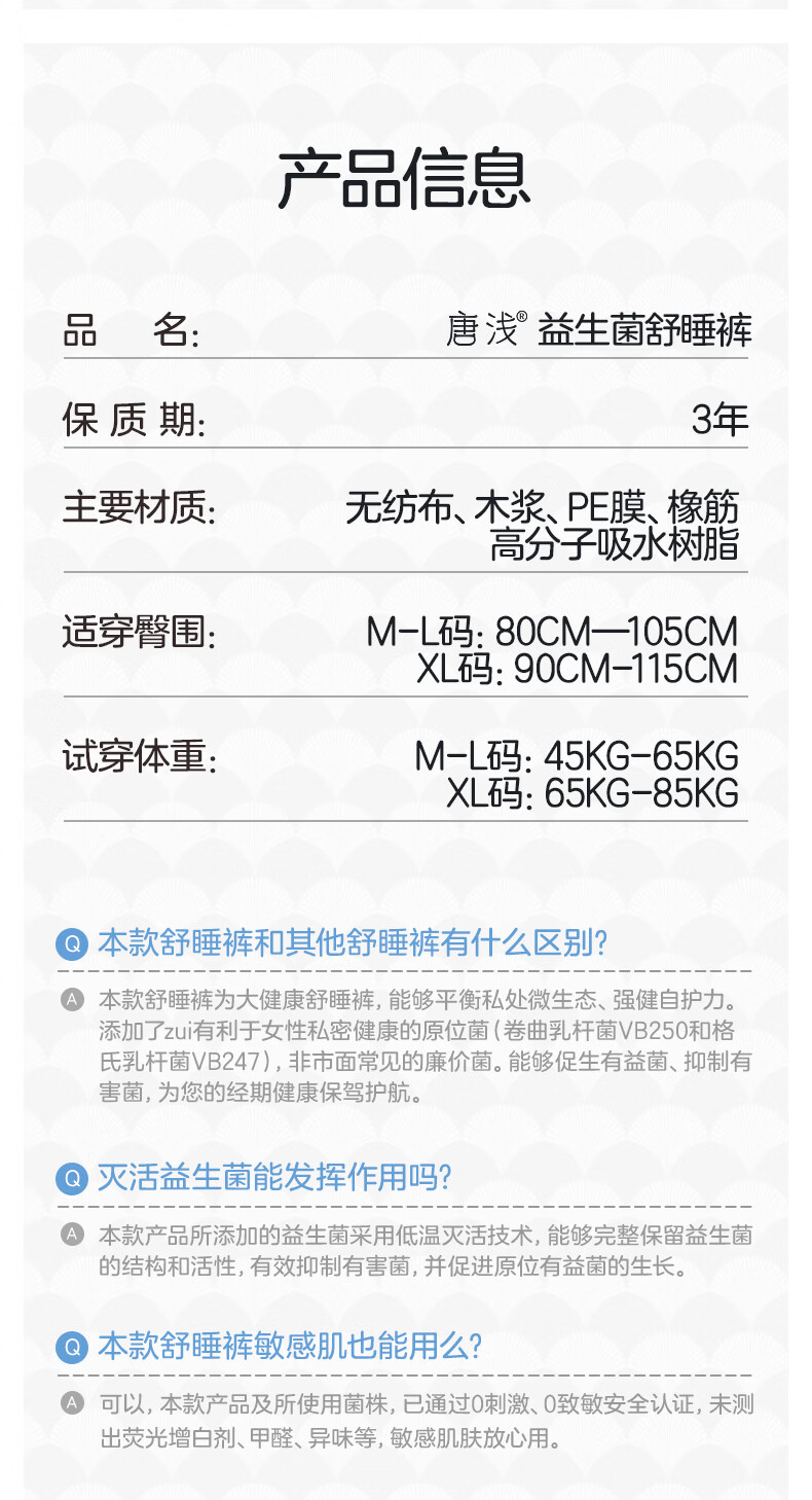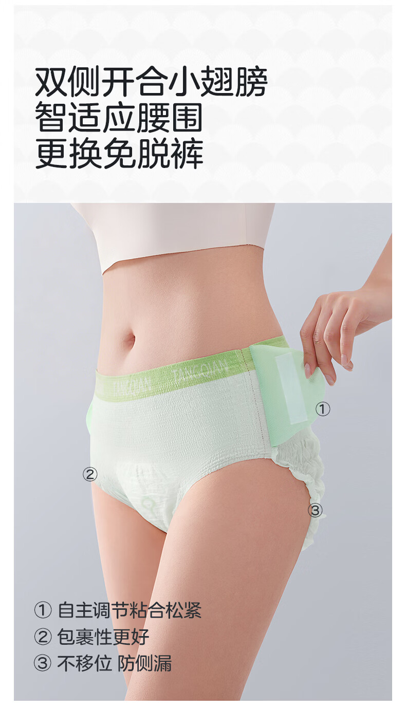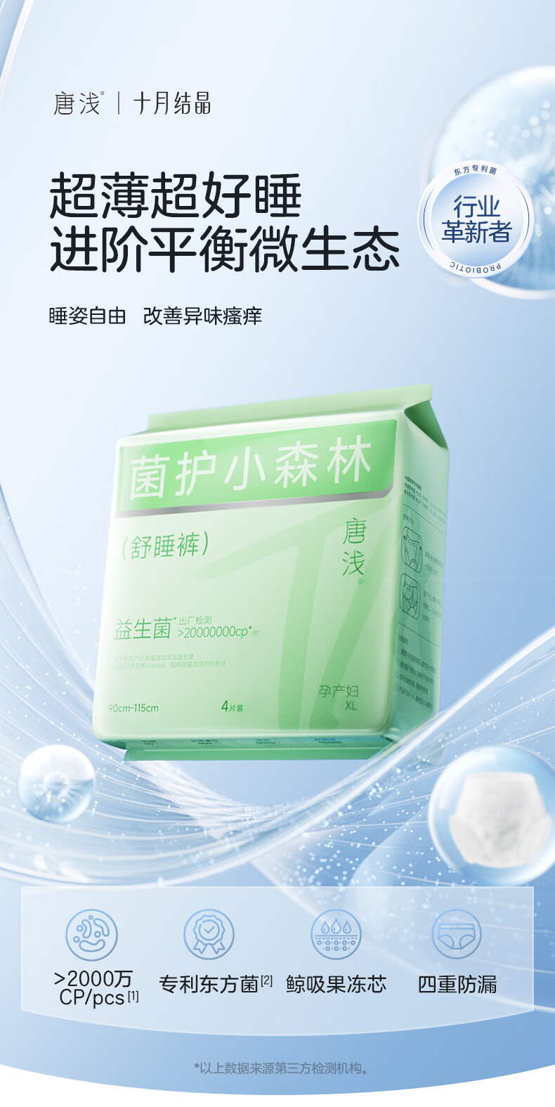 十月结晶唐浅安睡裤产妇裤型卫生巾日夜可用开合式安心裤16片 M-L码