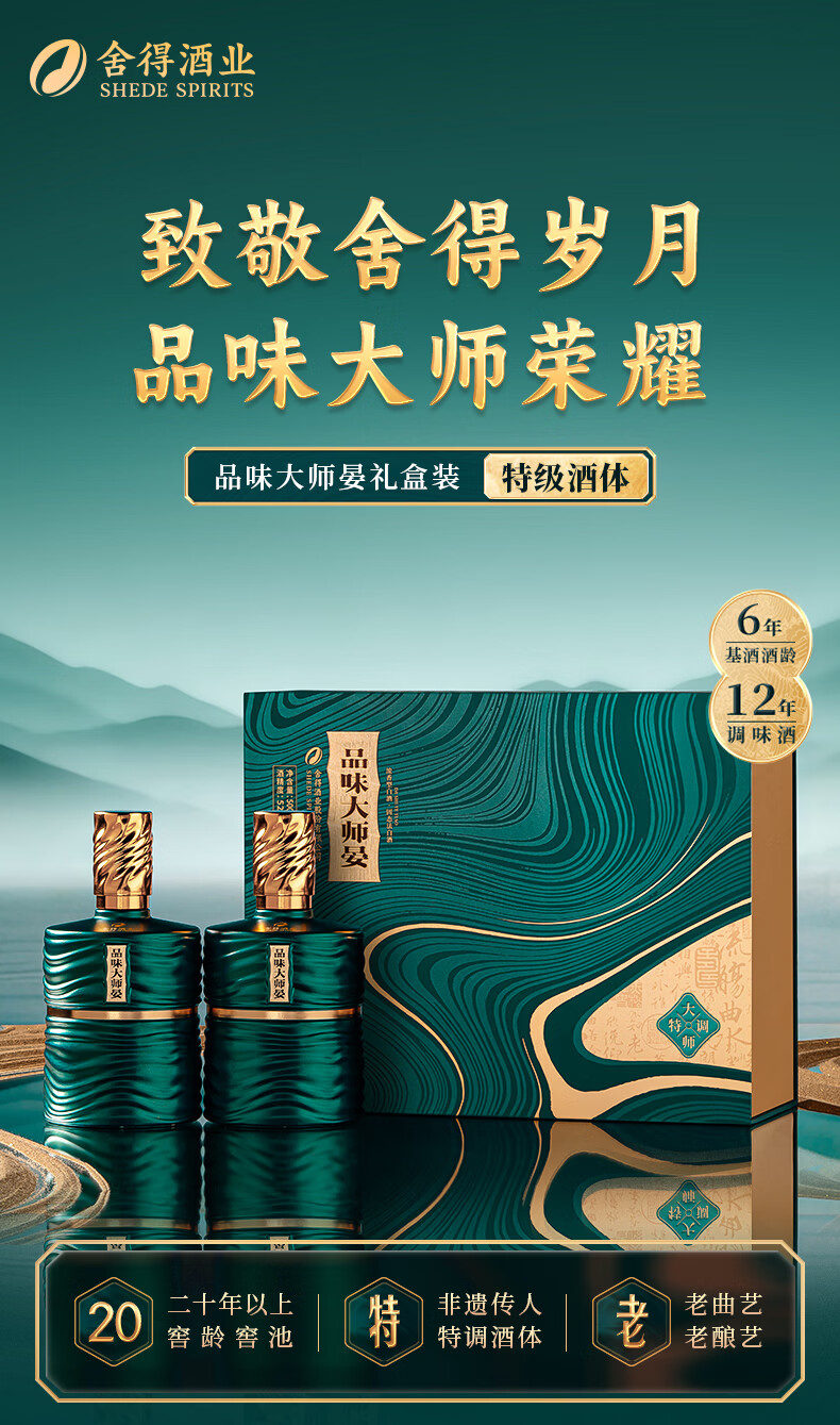 舍得品味大师晏(升级版)礼盒 浓香型白酒年货送礼 52度 500mL 2瓶 大师晏(升级版)礼盒