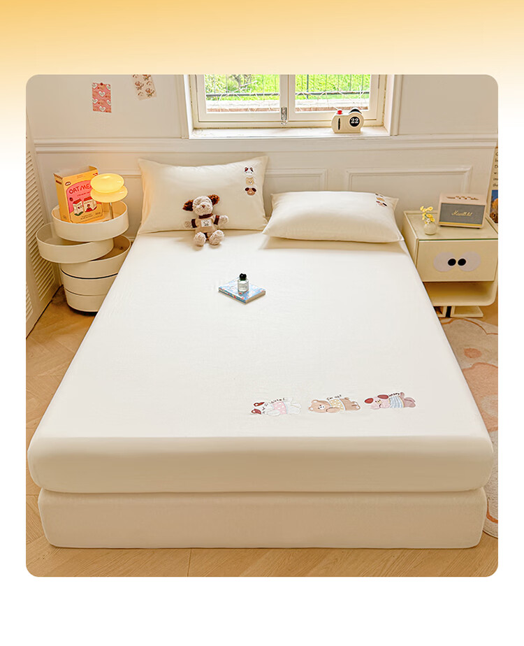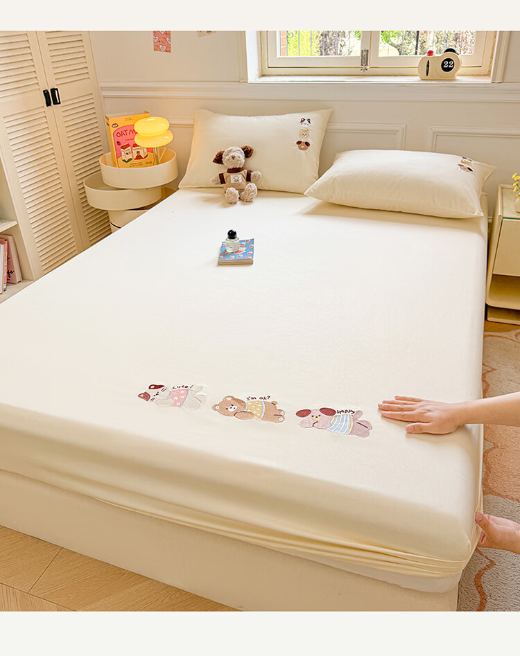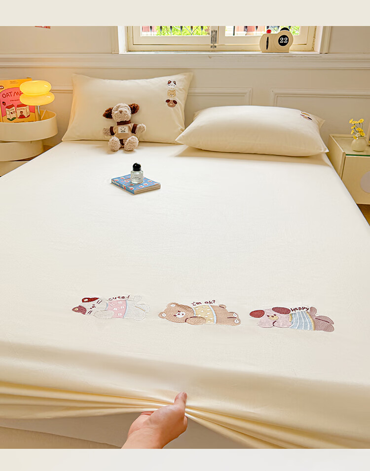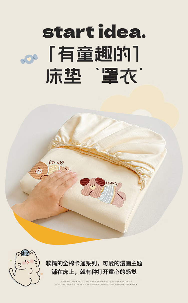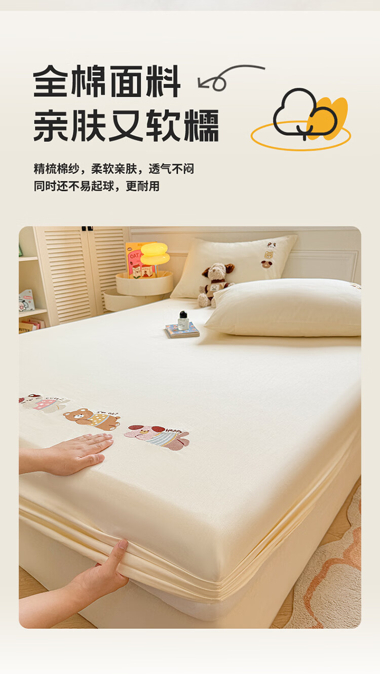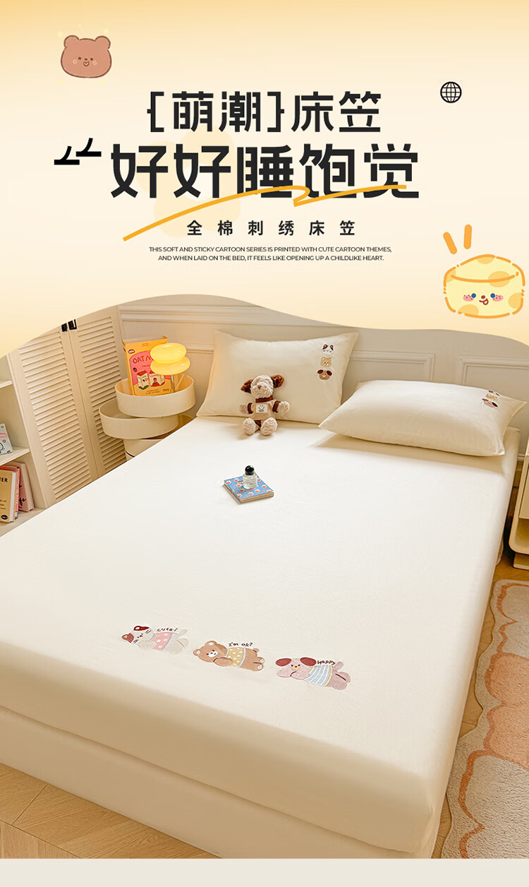 无印良品a类卡通刺绣纯棉全棉床笠1.8米x2米床垫保护套床上三件套四季通用 童话乐园-白【甄选新疆棉 100纯棉面料】 180*200cm单床笠