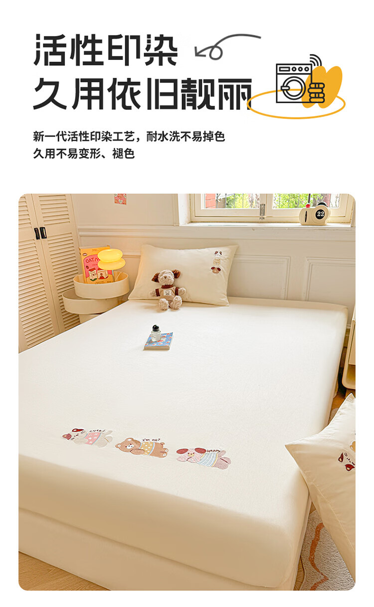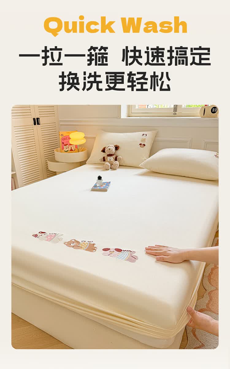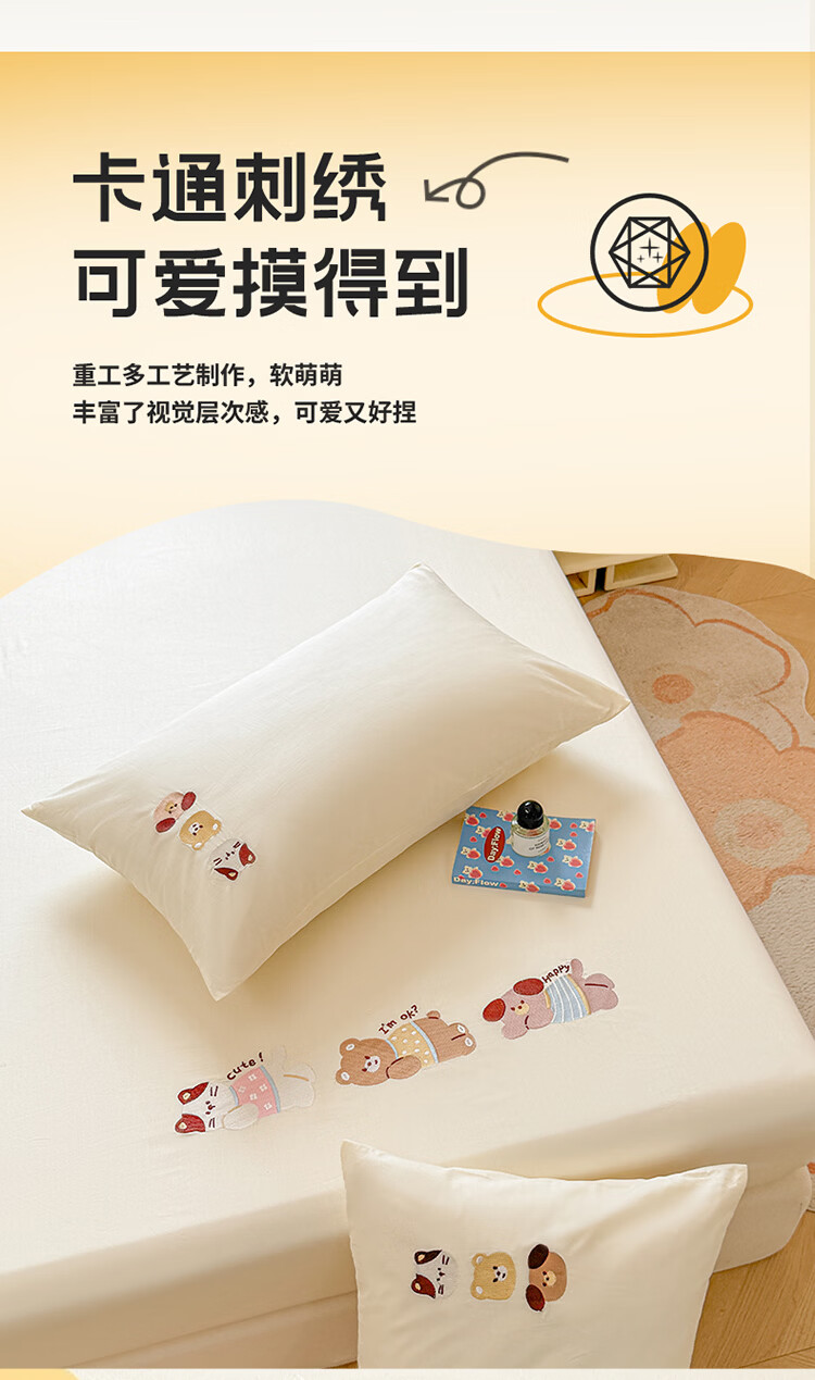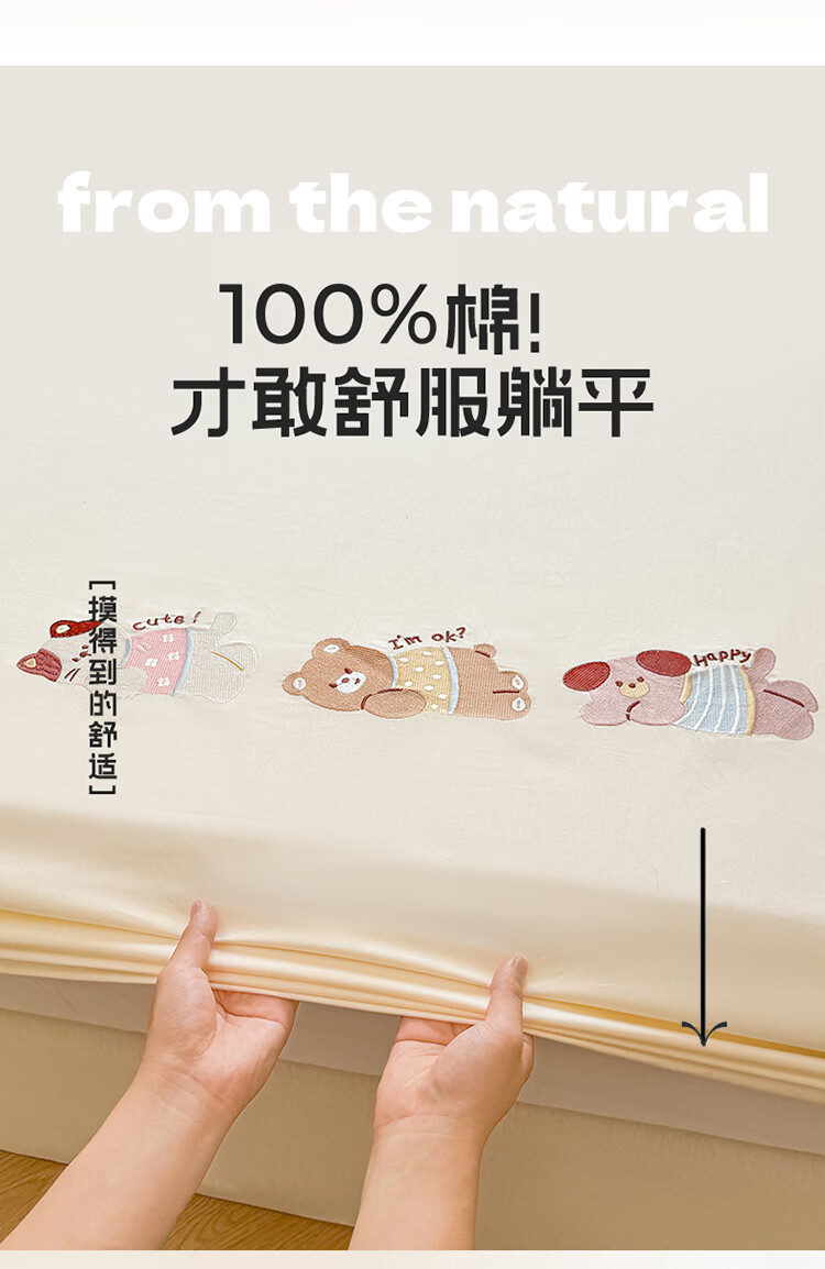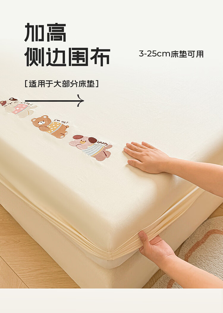 无印良品a类卡通刺绣纯棉全棉床笠1.8米x2米床垫保护套床上三件套四季通用 童话乐园-白【甄选新疆棉 100纯棉面料】 180*200cm单床笠