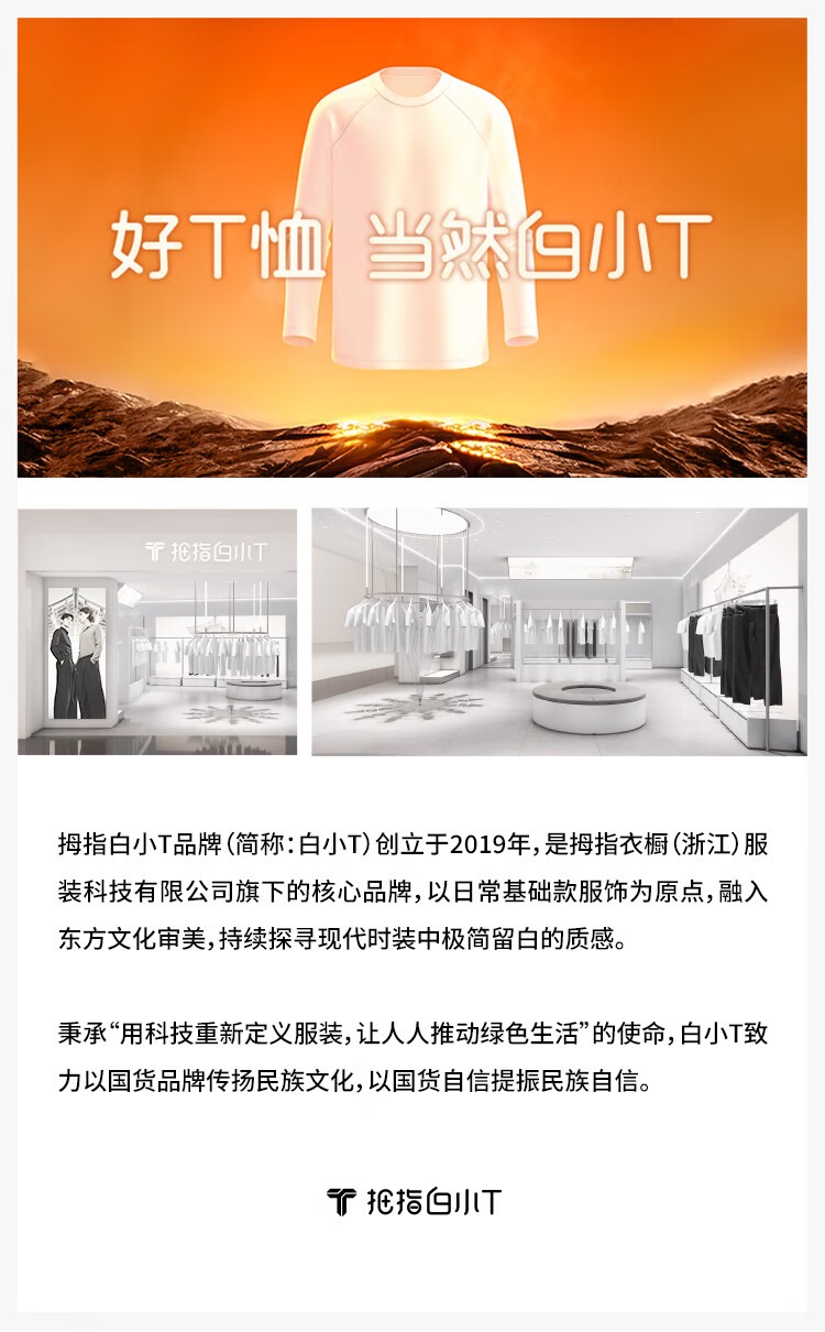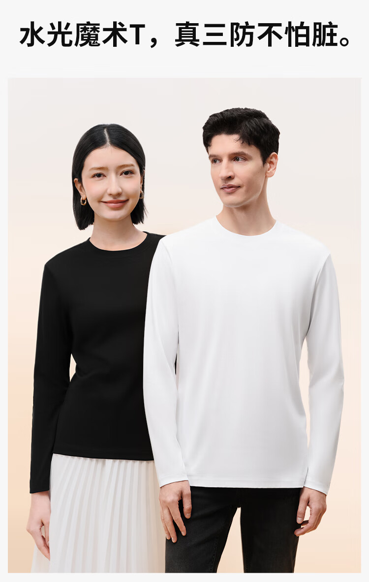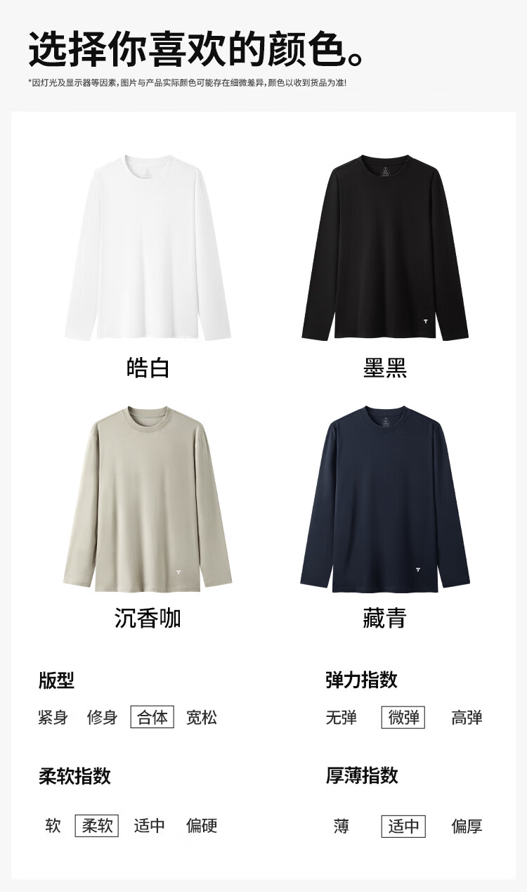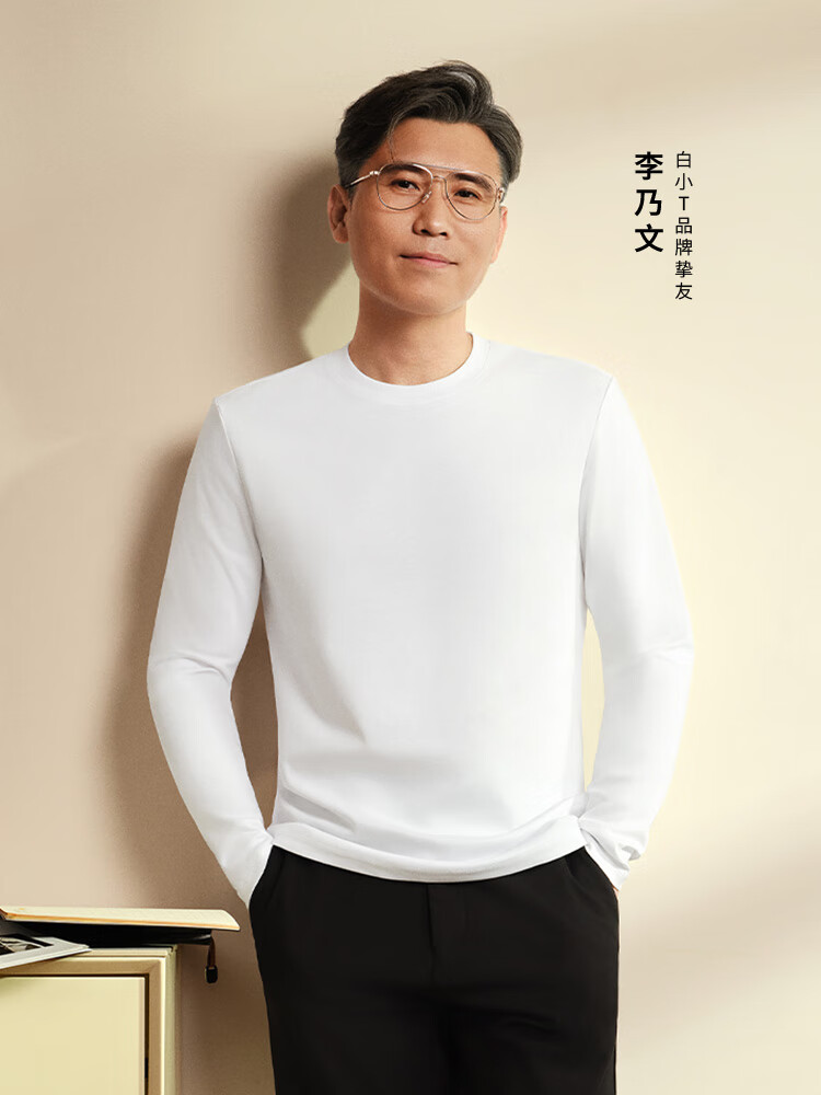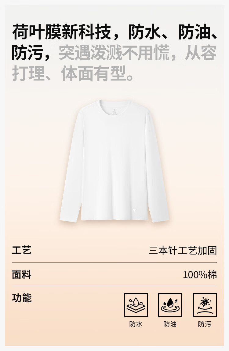 拇指白小T二代三防水光魔术长袖T恤男秋冬纯棉百搭打底衫 沉香咖 XL