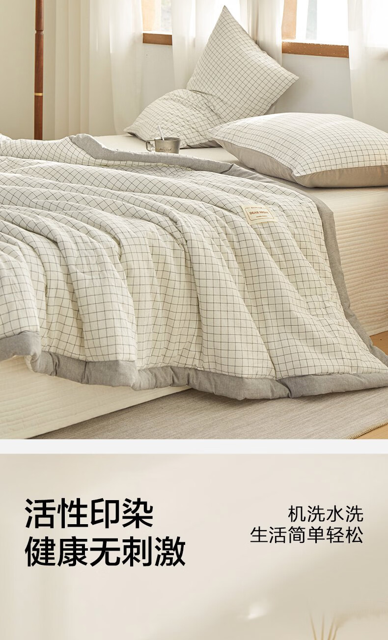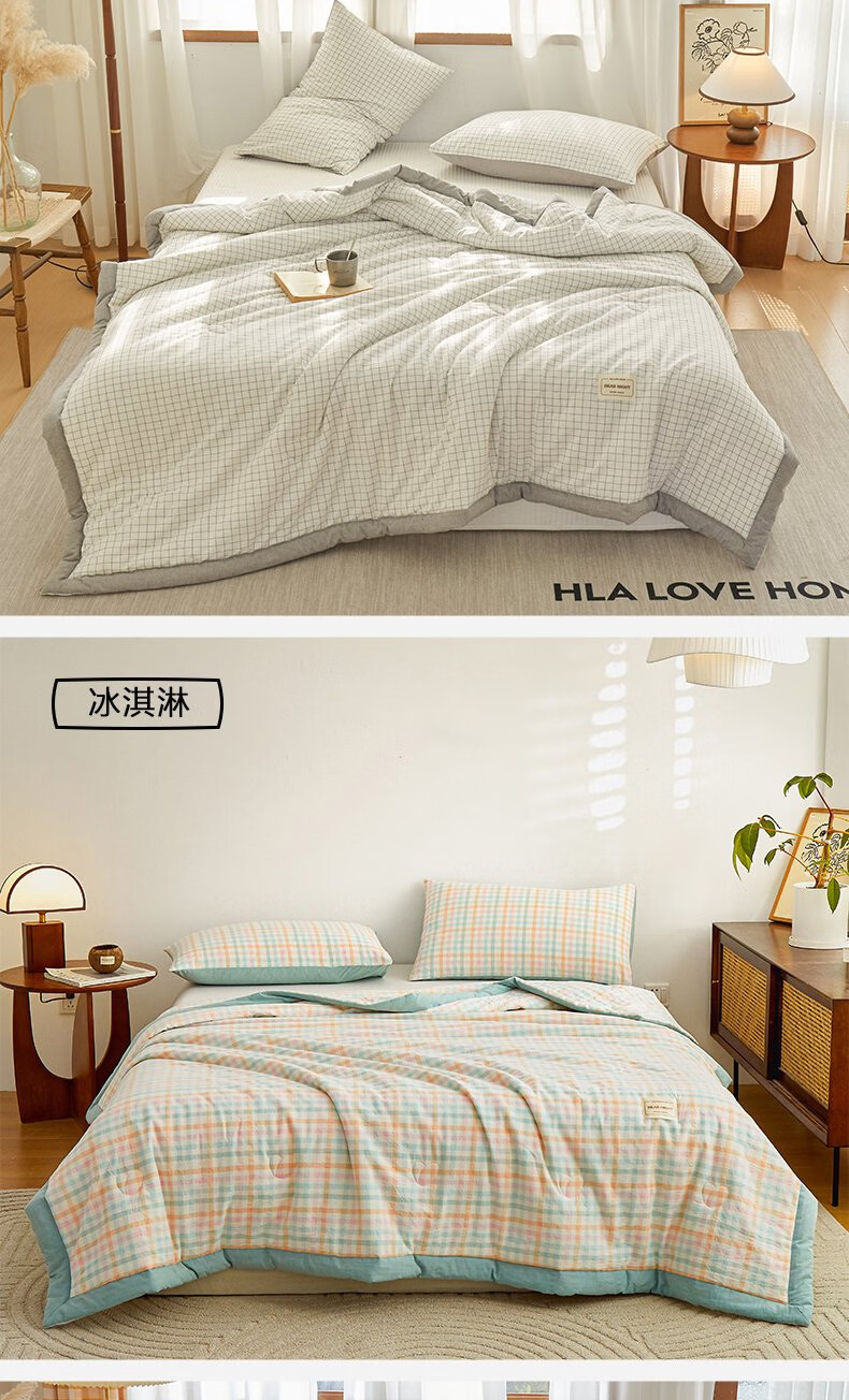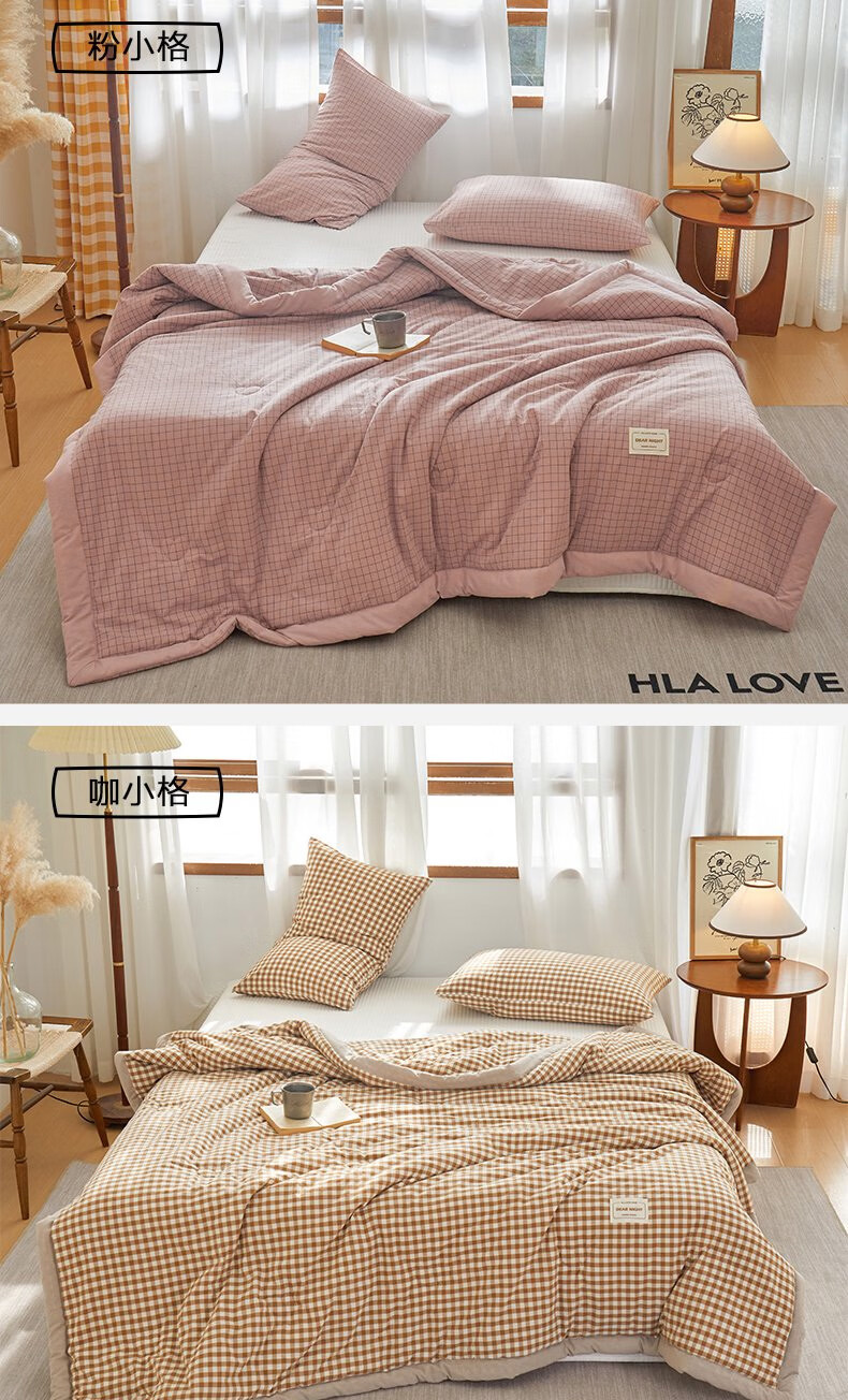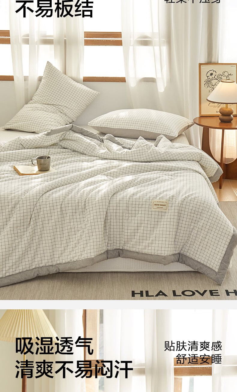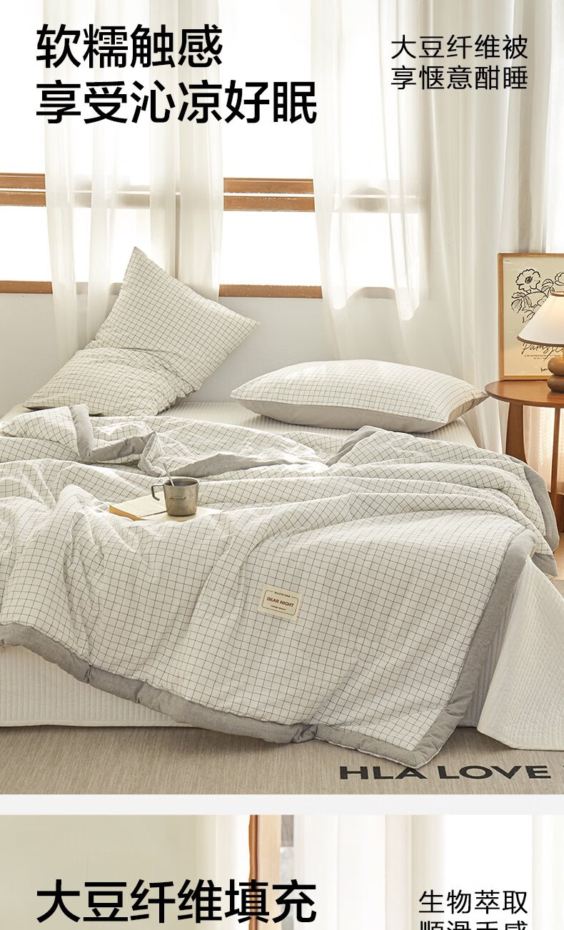 海澜之家(HLA)夏凉被空调夏被A类抗菌21%大豆纤维裸睡柔软舒适可机洗水洗薄被芯 水蓝格 200*230cm