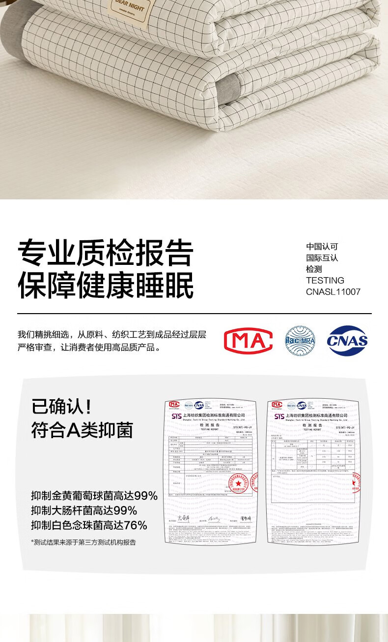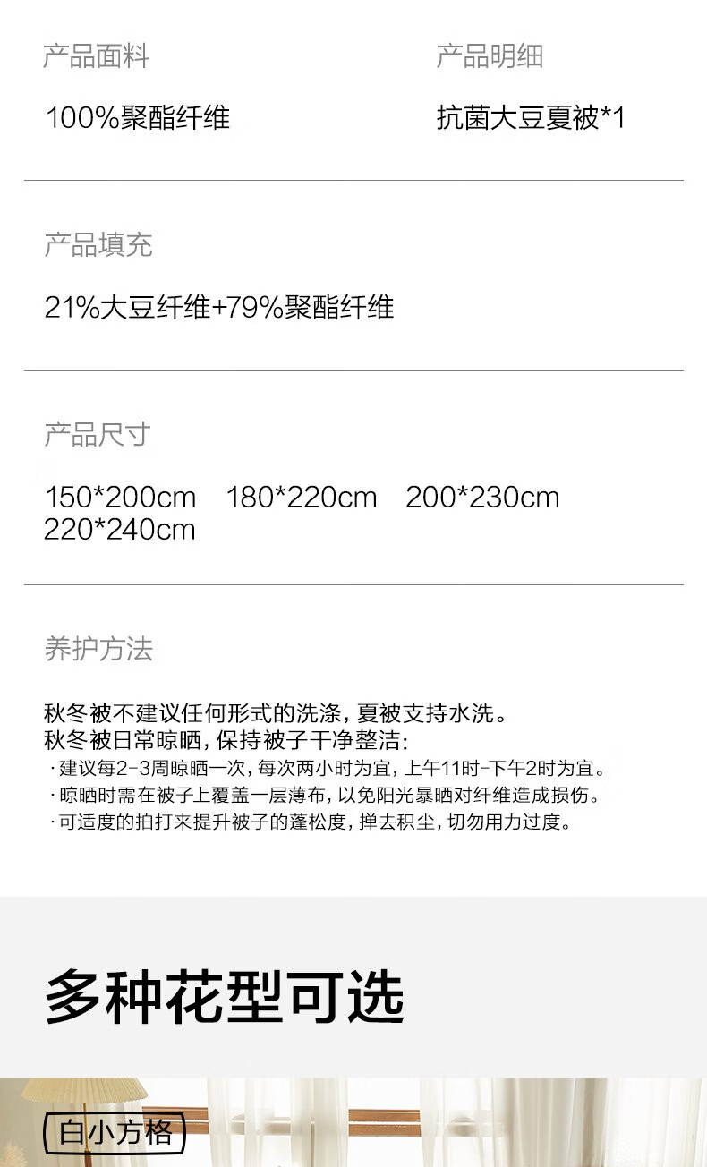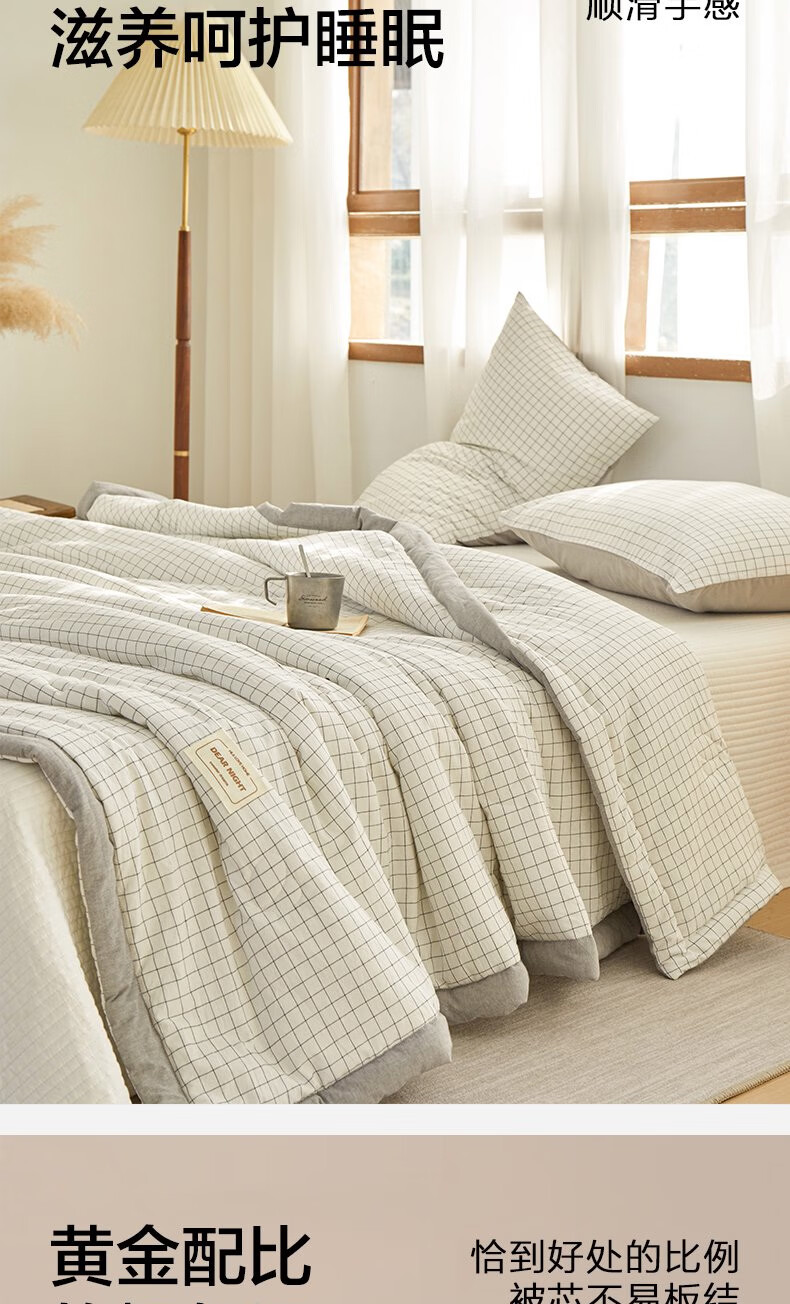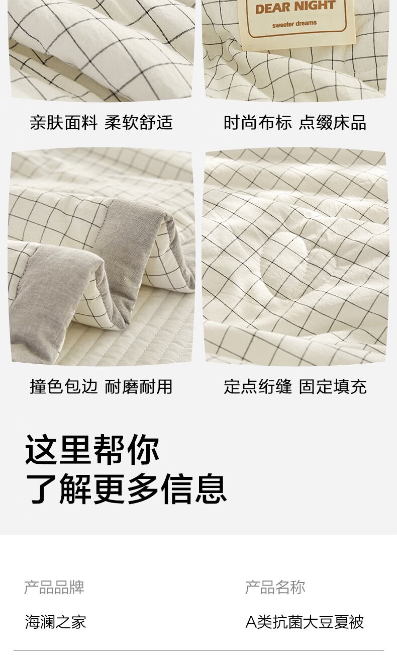 海澜之家(HLA)夏凉被空调夏被A类抗菌21%大豆纤维裸睡柔软舒适可机洗水洗薄被芯 水蓝格 200*230cm