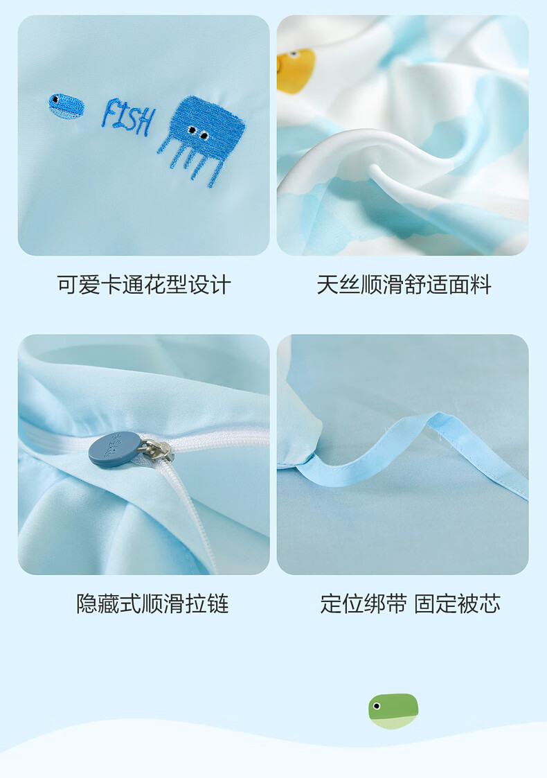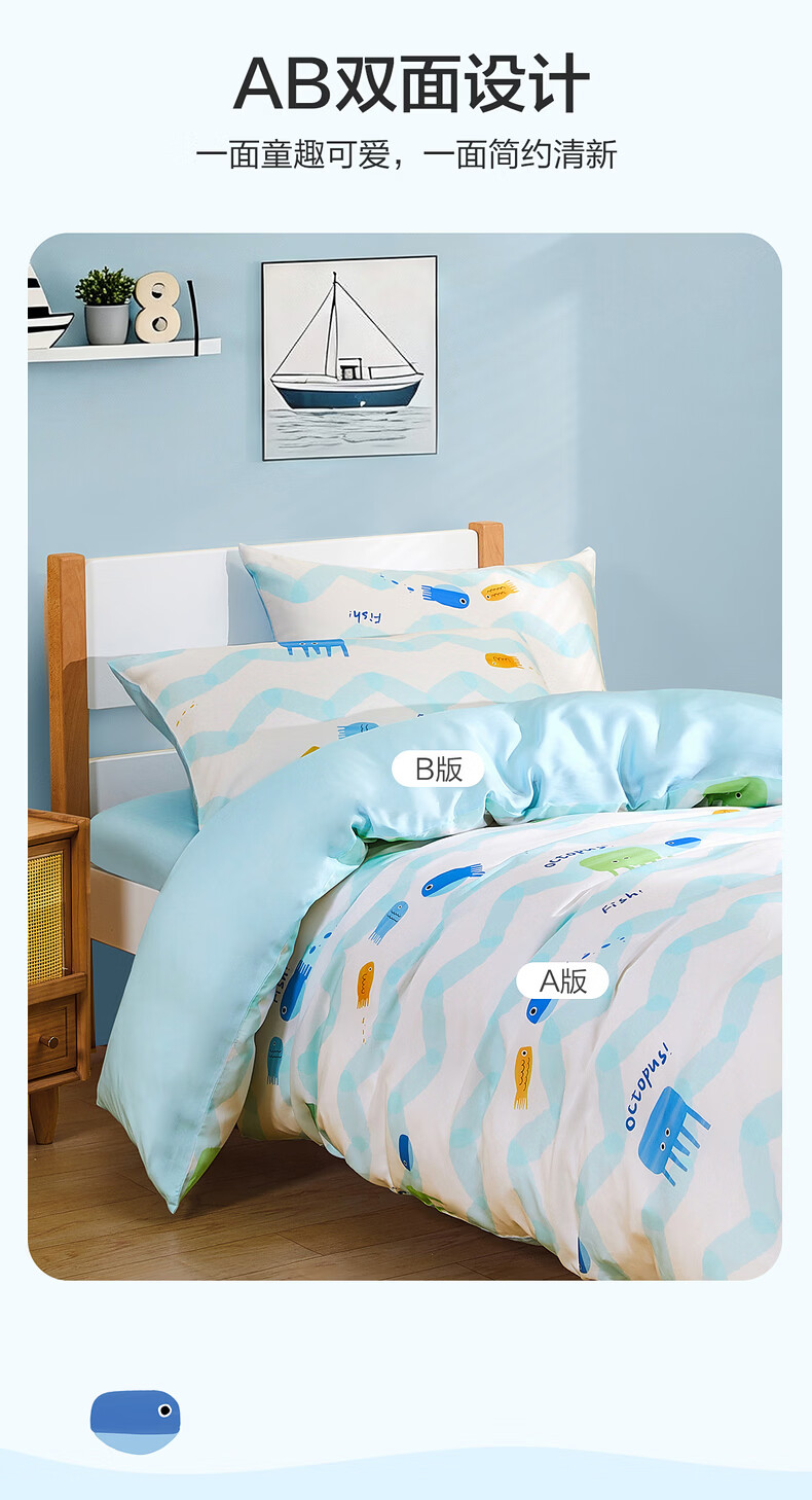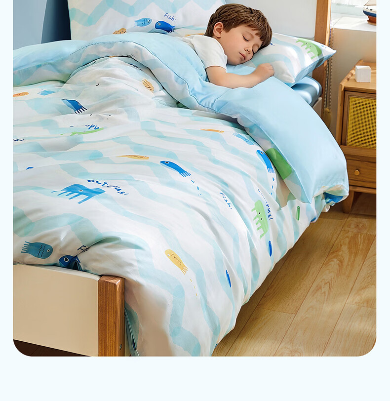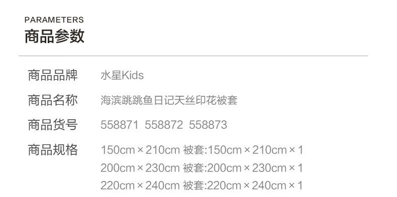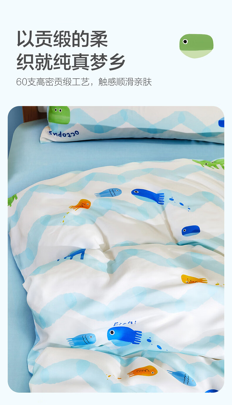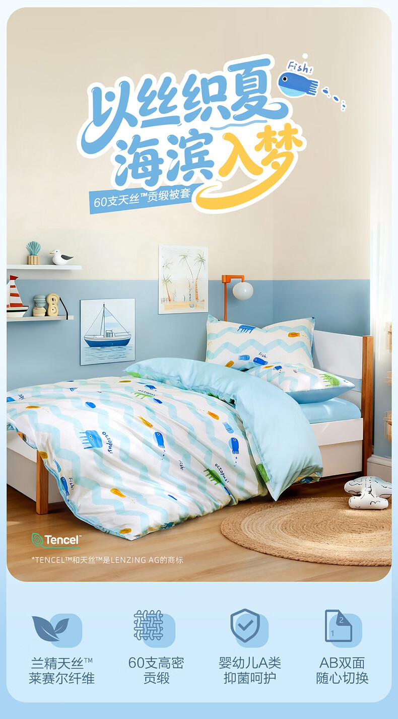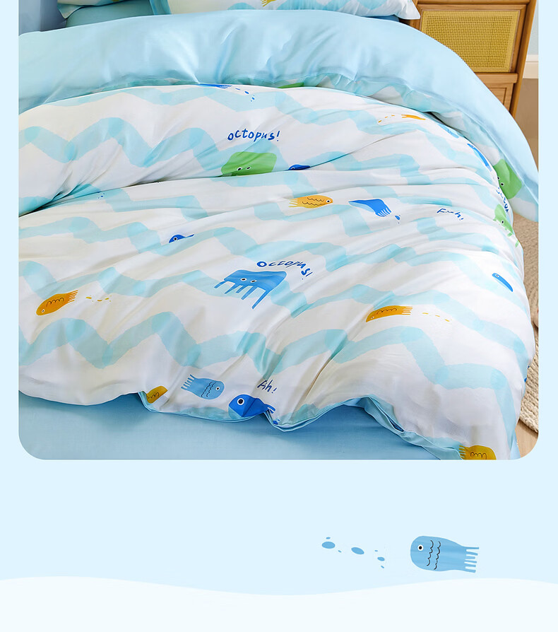 水星家纺海滨跳跳鱼日记天丝印花被套 海滨跳跳鱼日记天丝印花被套 150cm*210cm