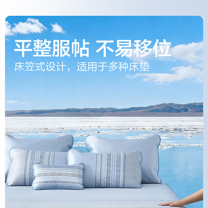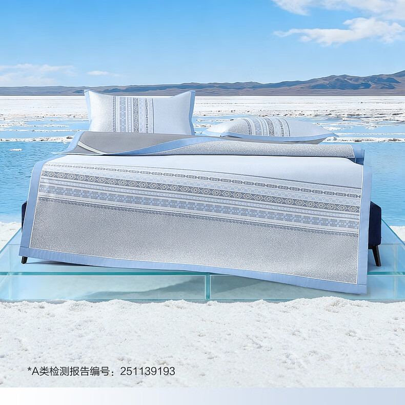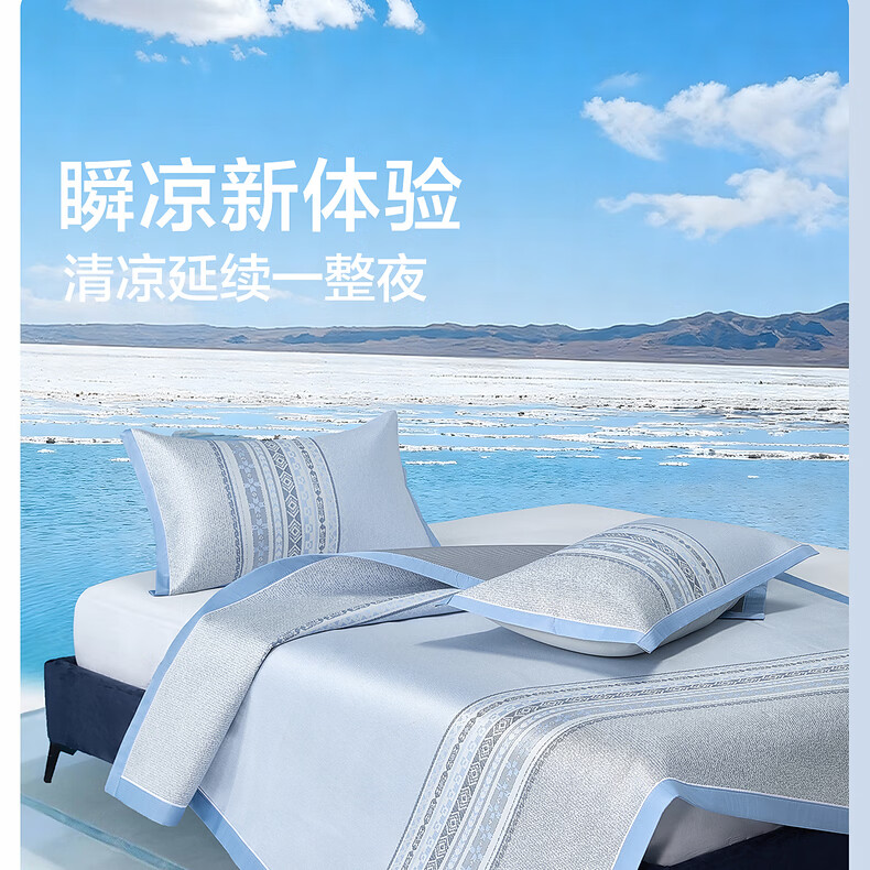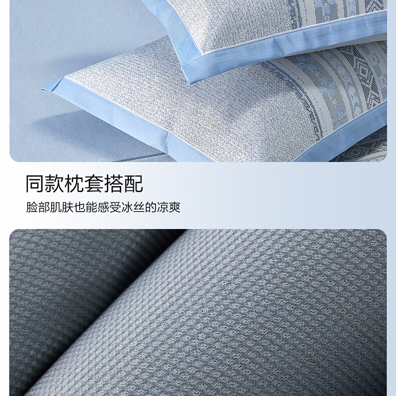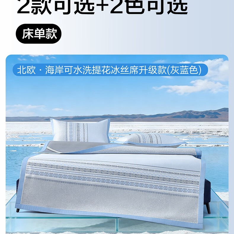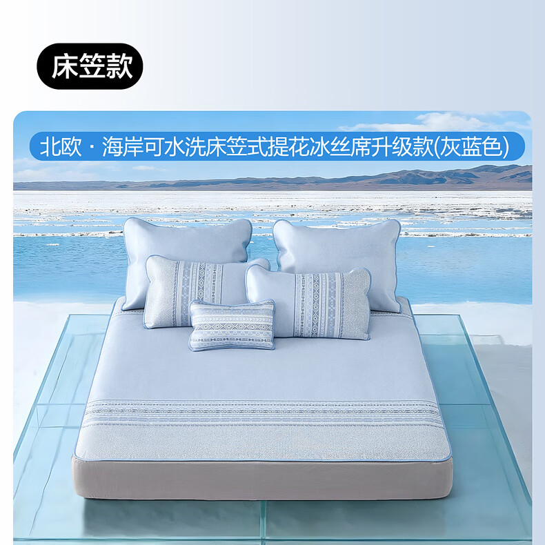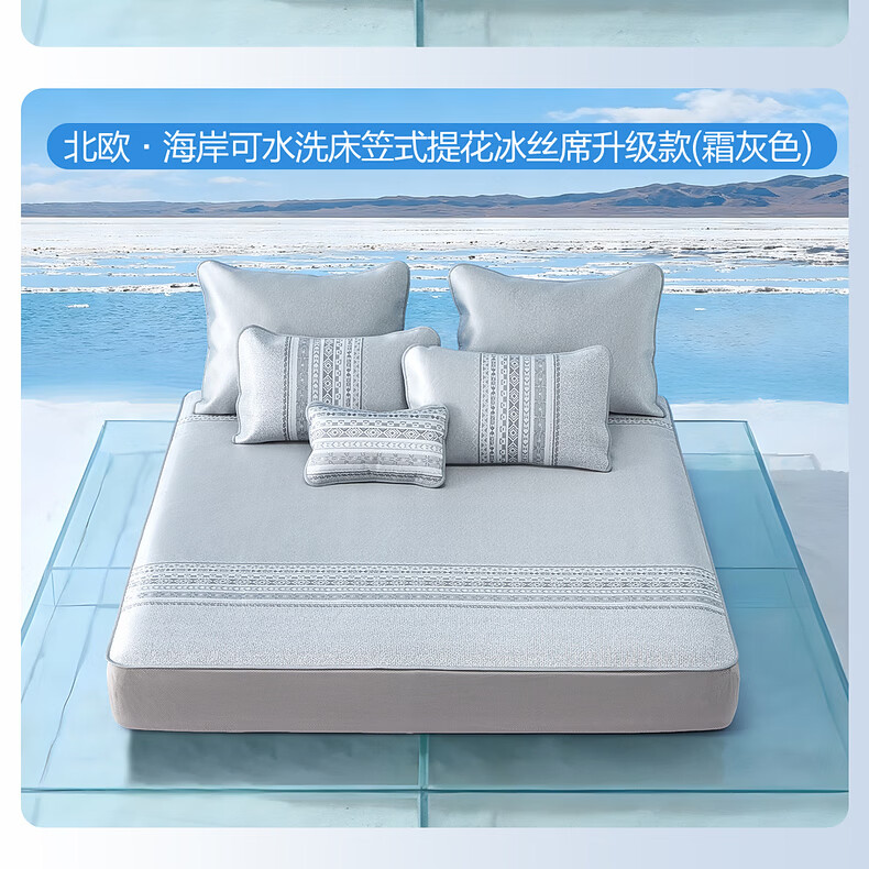 水星家纺北欧·海岸可水洗冰丝席/床笠式提花冰丝席升级款 北欧·海岸可水洗提花冰丝席升级款(灰蓝色) 195cm*90cm