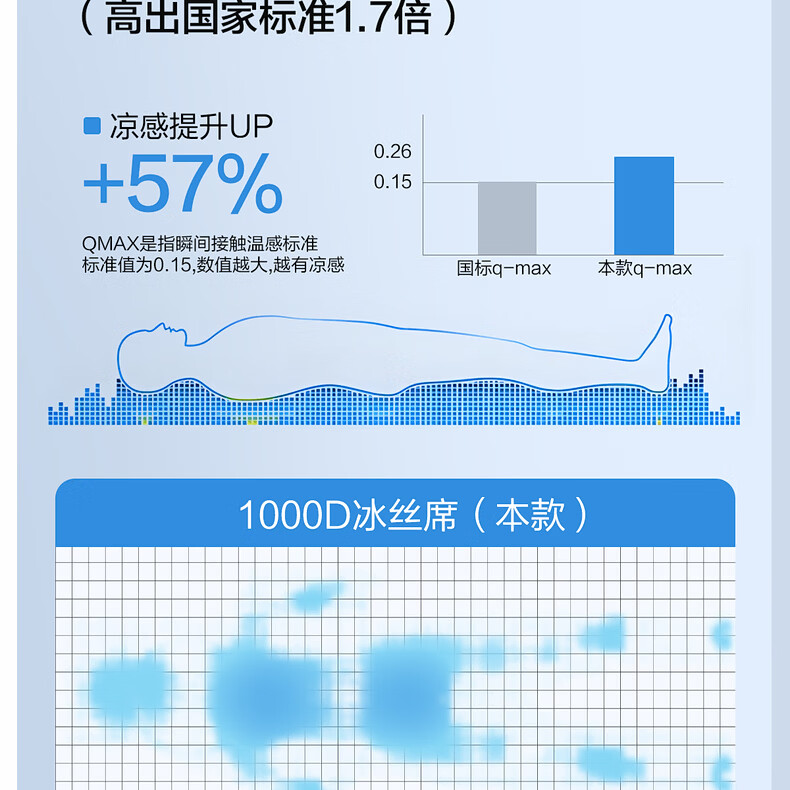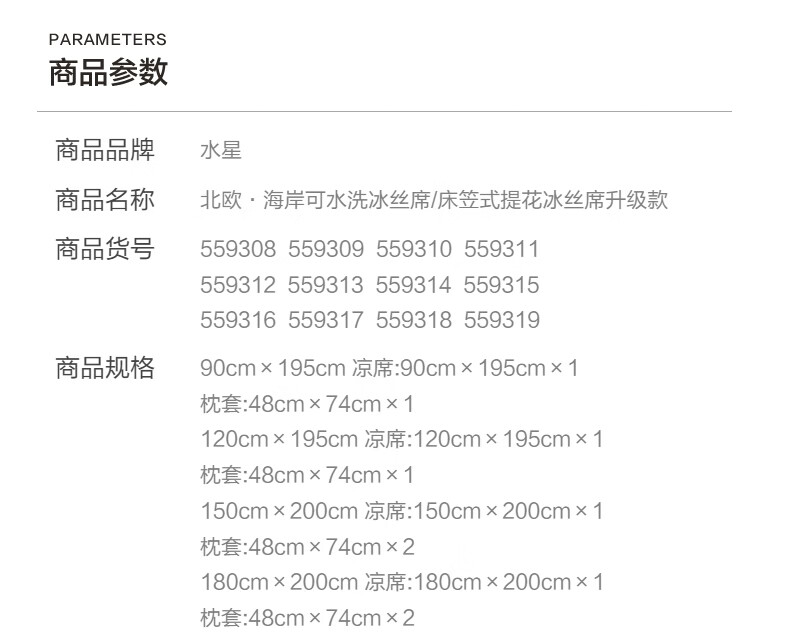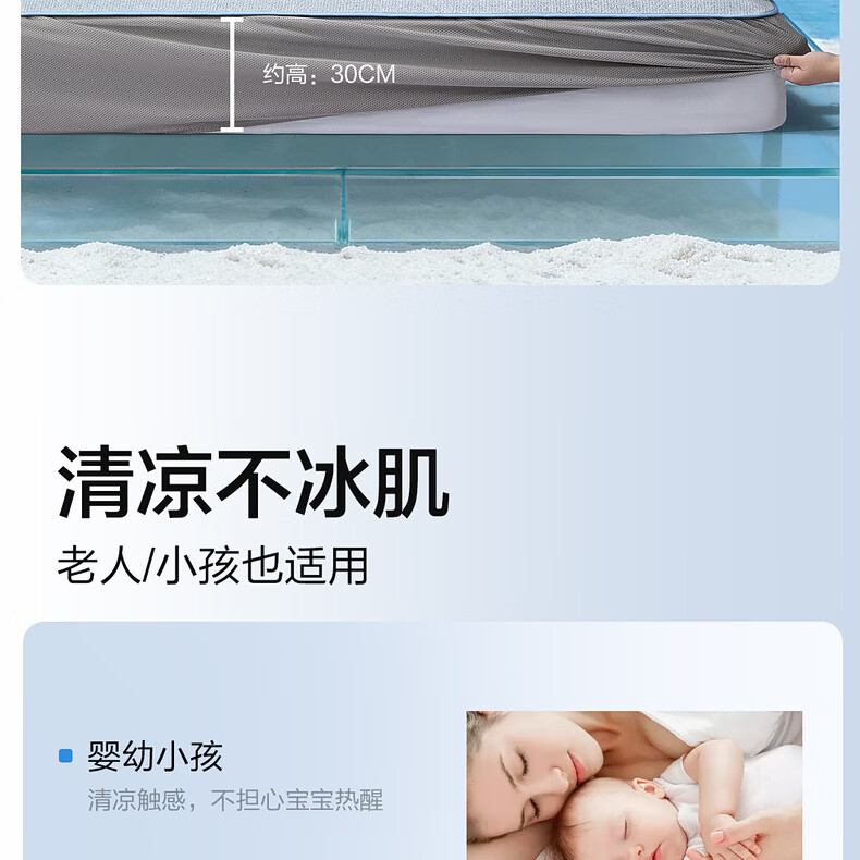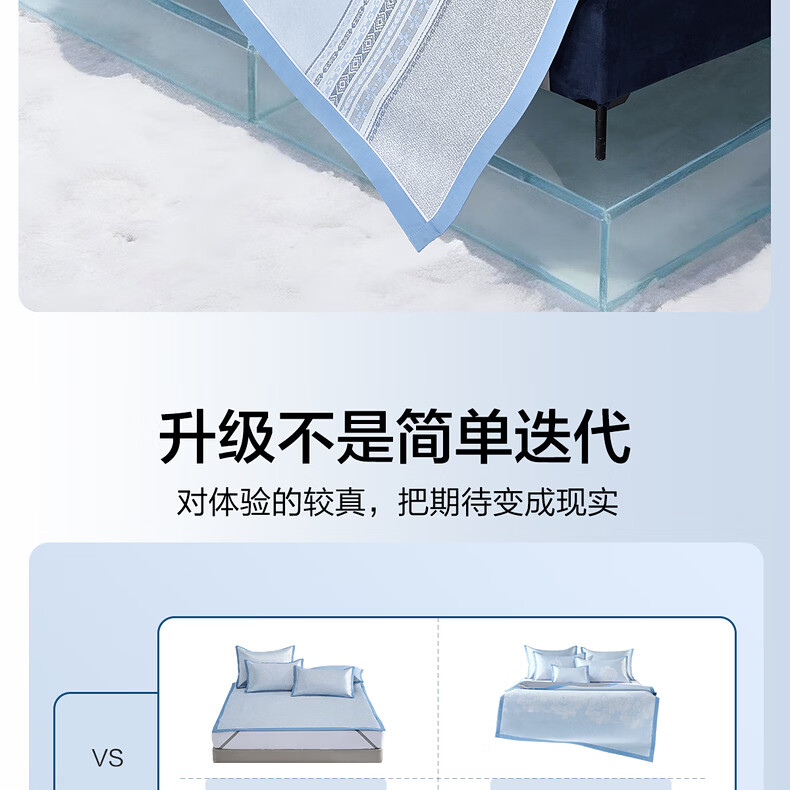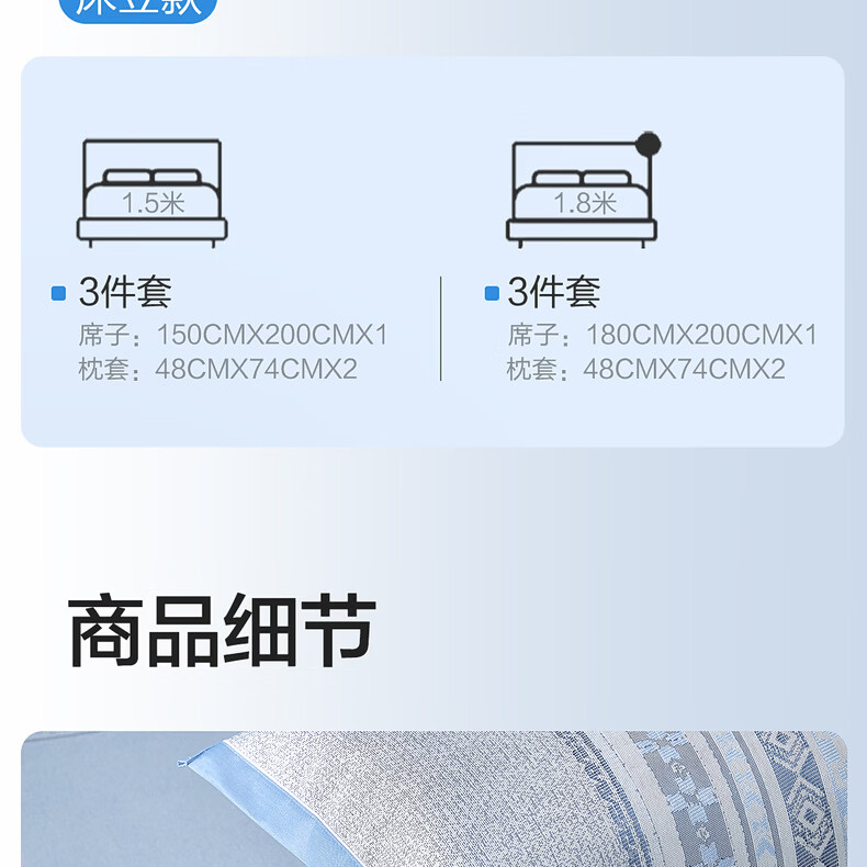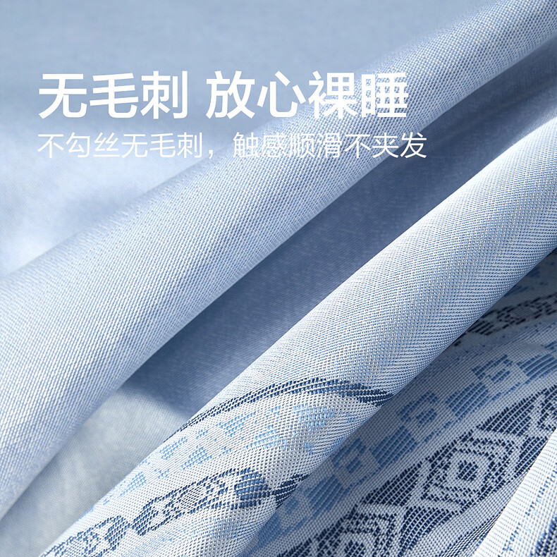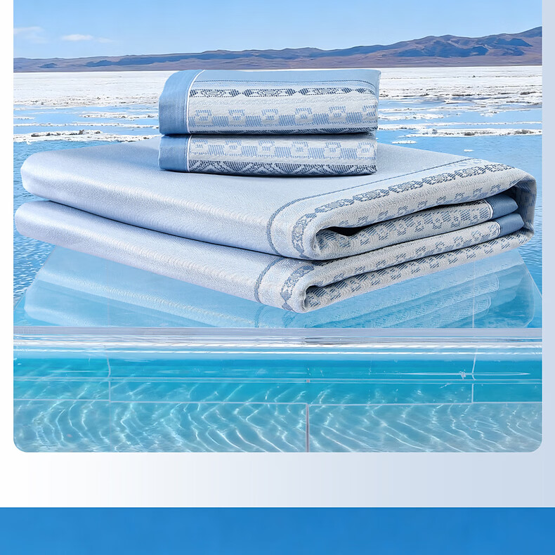 水星家纺北欧·海岸可水洗冰丝席/床笠式提花冰丝席升级款 北欧·海岸可水洗提花冰丝席升级款(灰蓝色) 195cm*90cm