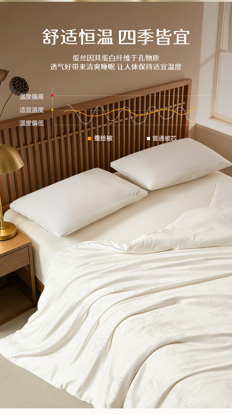 恒源祥100%蚕丝被 夏凉空调被双人夏被被子春秋被芯结婚四季 100%蚕丝甄选升级款粉【中长蚕丝+抗菌面料】 200*230cm夏被(总重2.8斤)