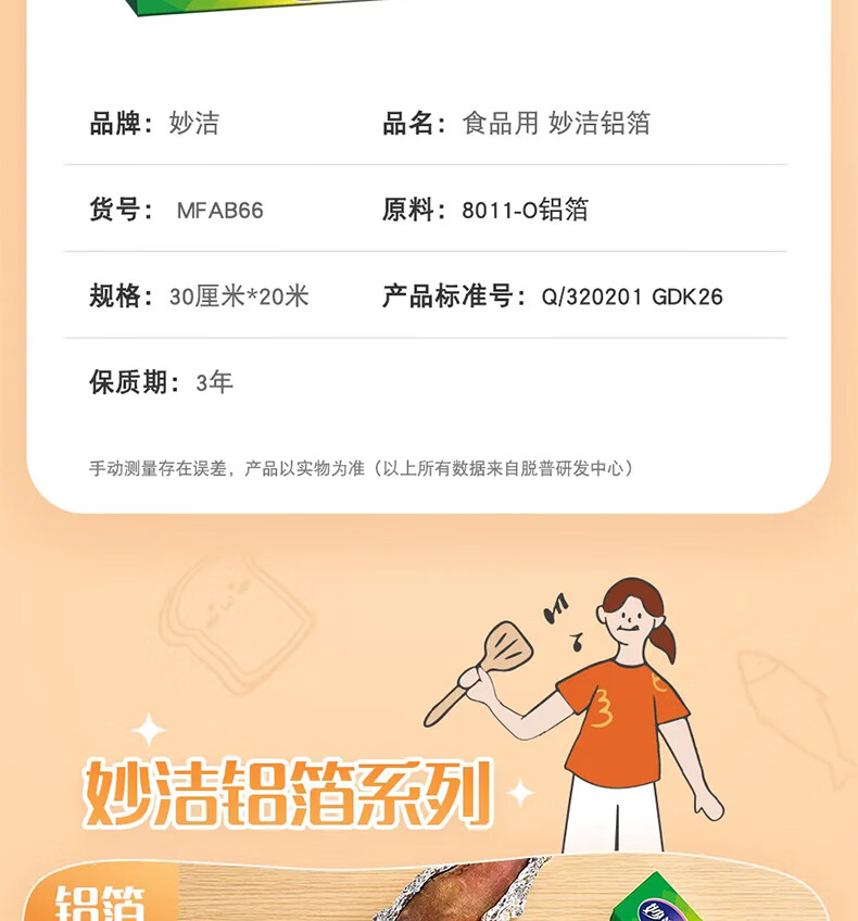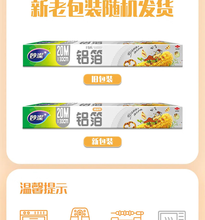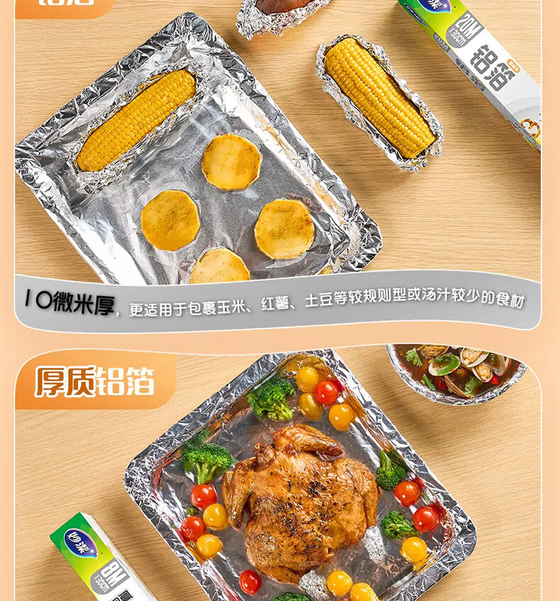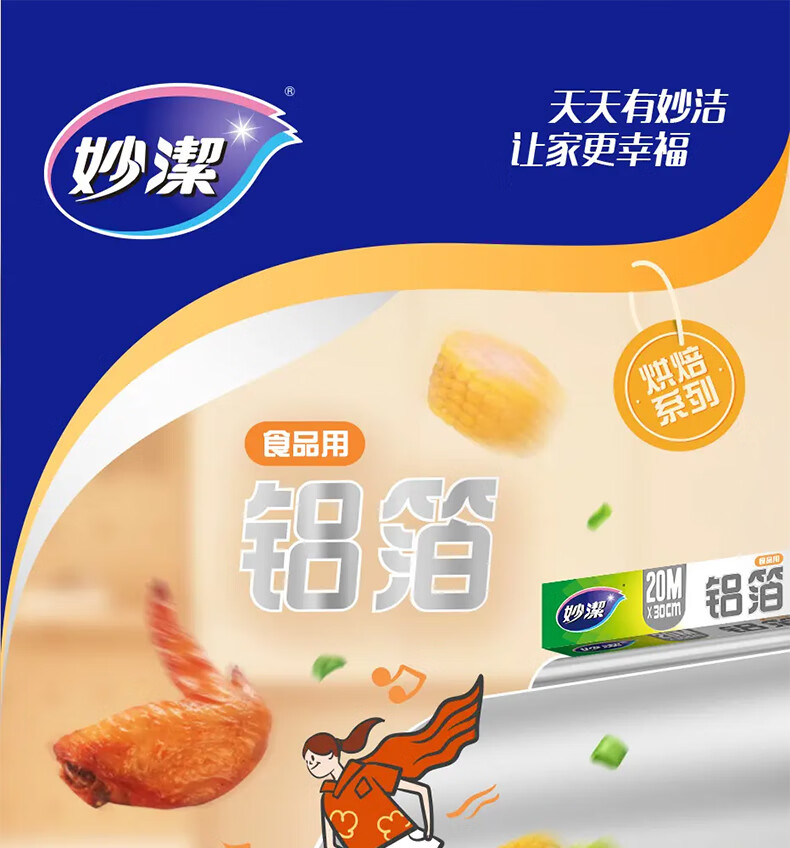 妙洁铝箔锡纸20米盒装厨房烘焙烧烤烤箱空气炸锅专用锁水保鲜不易焦黑