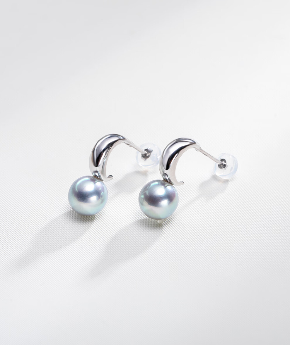 南珠宫流光18K金大溪地海水珍珠耳环强光圆形精致百搭生日礼物送老婆 银色款 8.0-9.0mm