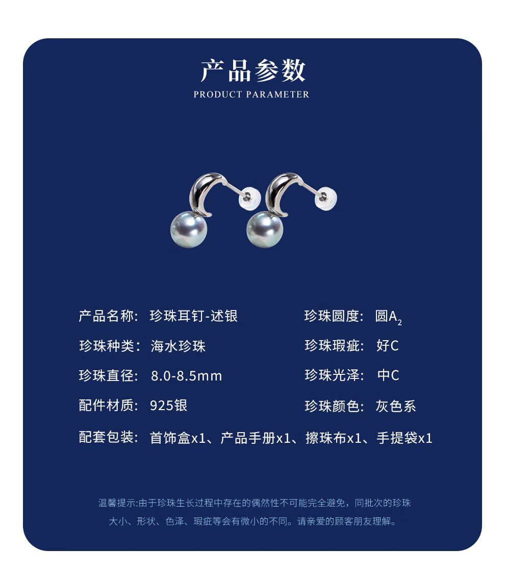 南珠宫述银925银真多麻海水珍珠耳环精致简雅年轻款生日礼物送老婆 8.0-8.5mm 925银海水珍珠耳环