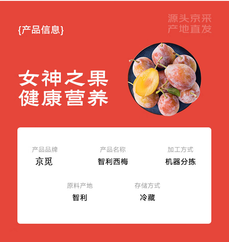 京觅智利西梅 甜李子 净重2斤3J级巨无霸单果30g+ 水果西梅 源头直发