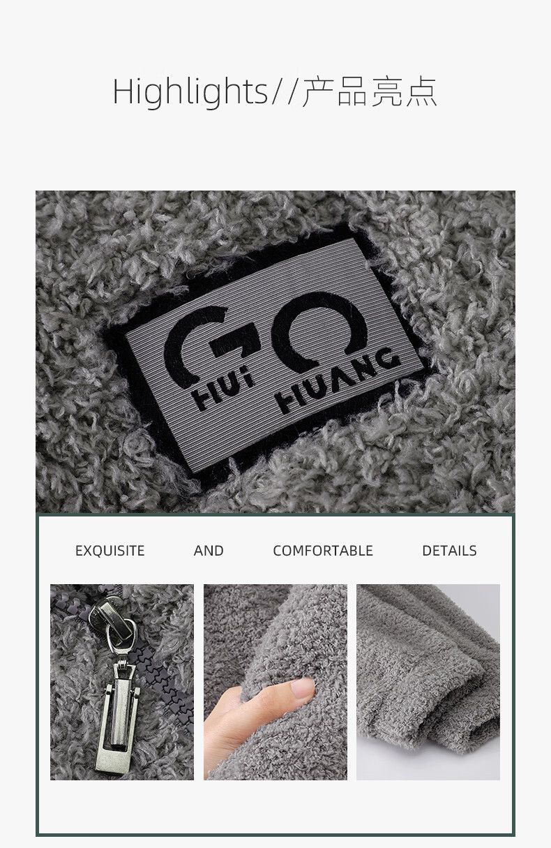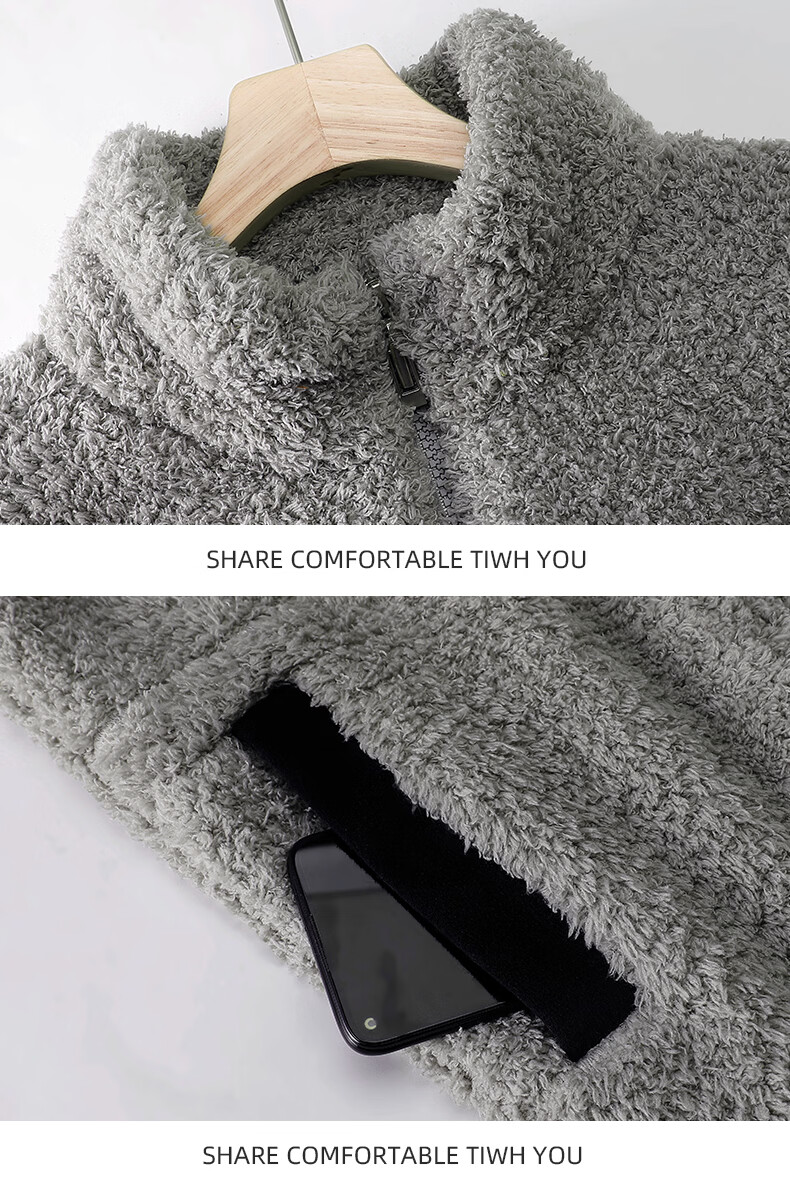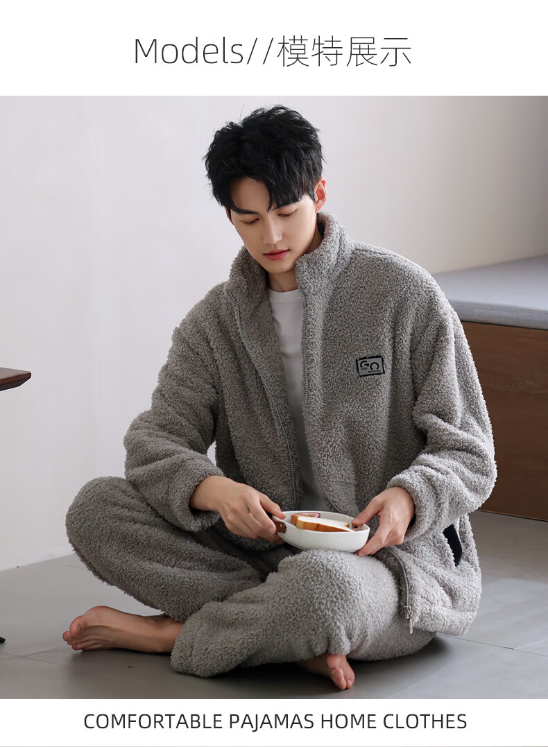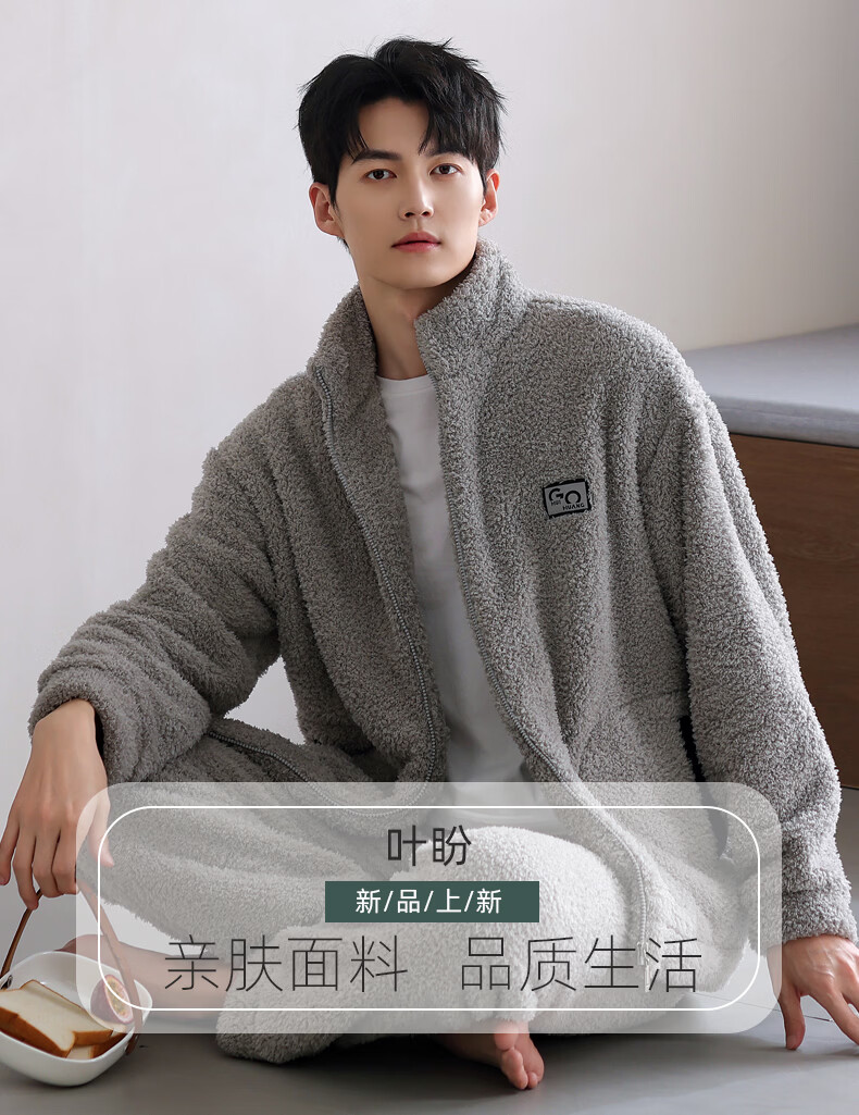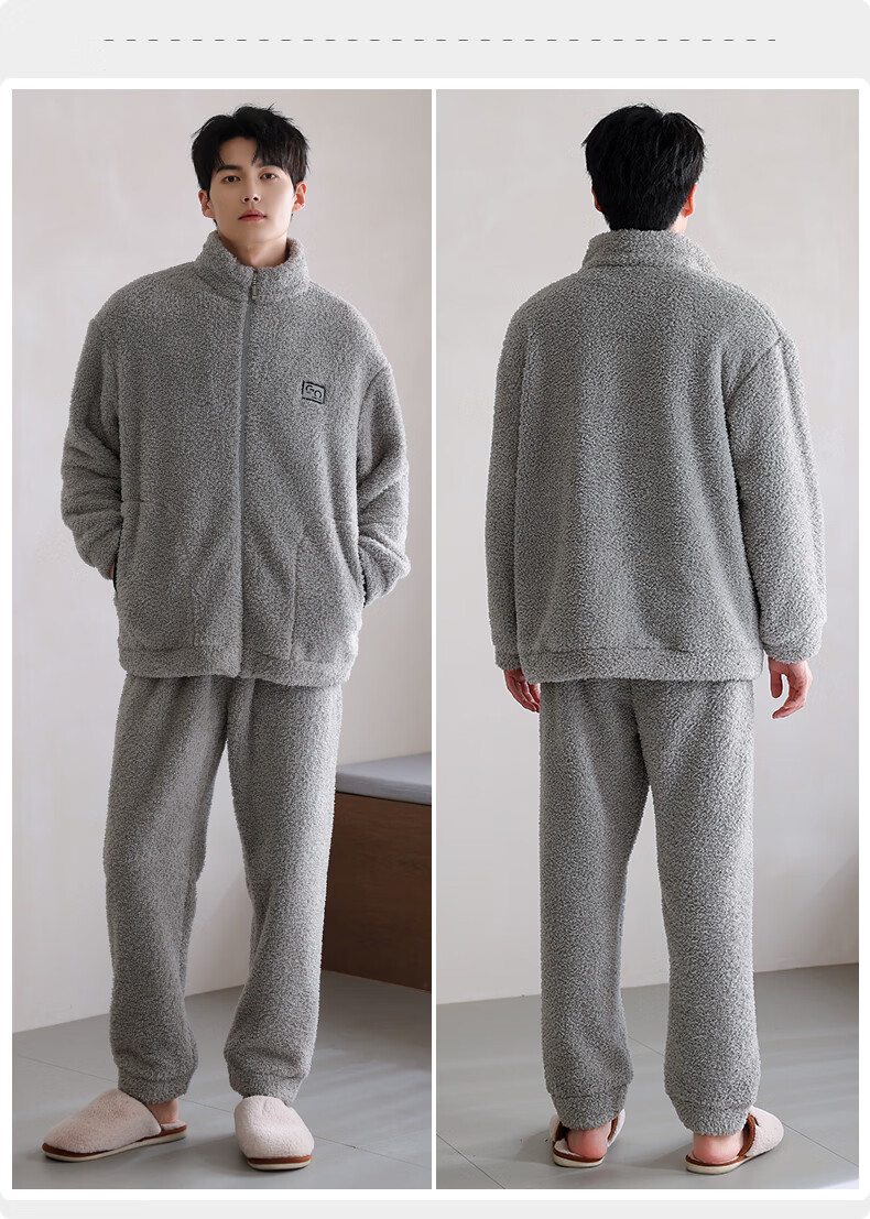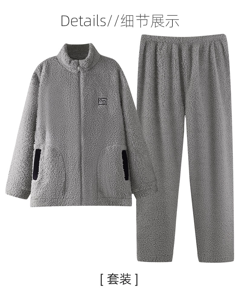 叶盼(yepan)【保暖】羊羔绒睡衣男冬季宽松高领高级感冬天加绒加厚家居服套装 9061-烟灰 M (165) :建议100-120斤穿着