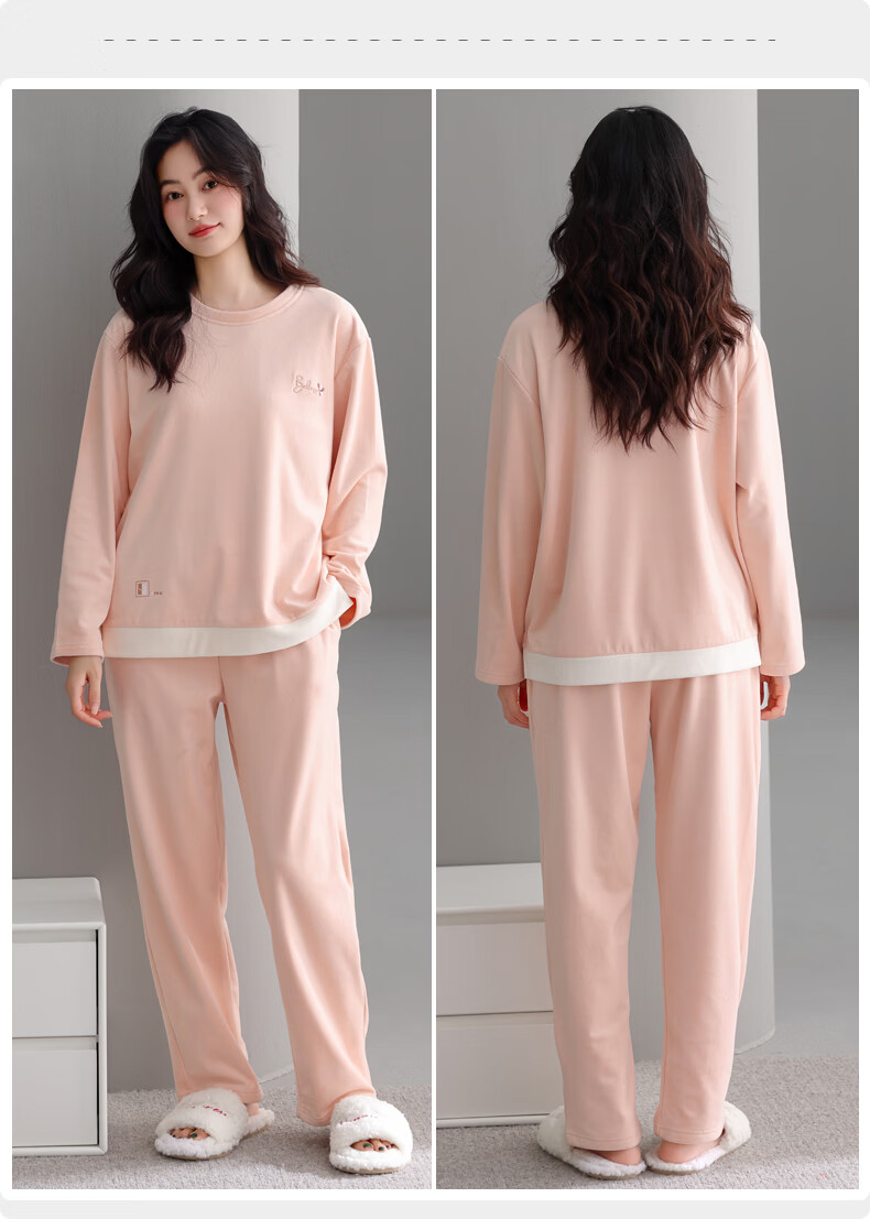 叶盼(yepan)【保暖】海岛绒睡衣女冬季套头女款宽松大码可外穿女士家居服套装 81833-柔雾粉 M (160) :建议90-110斤穿着