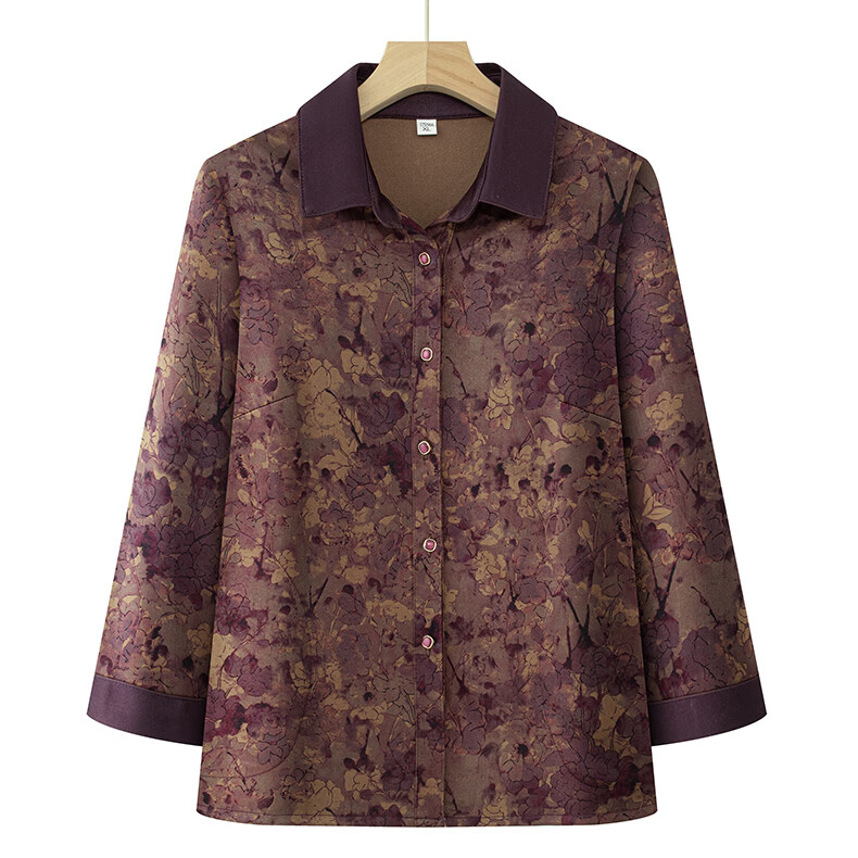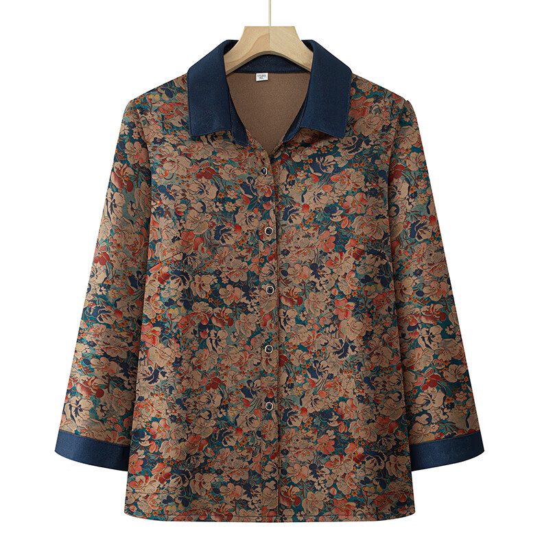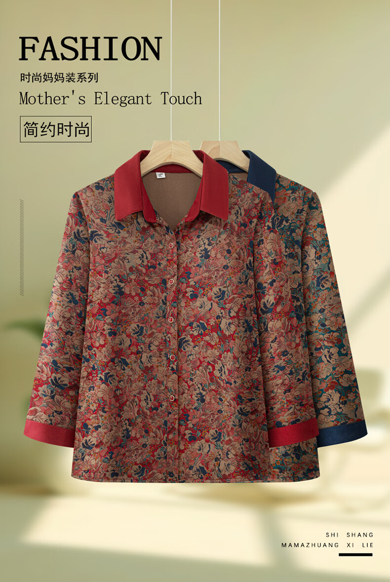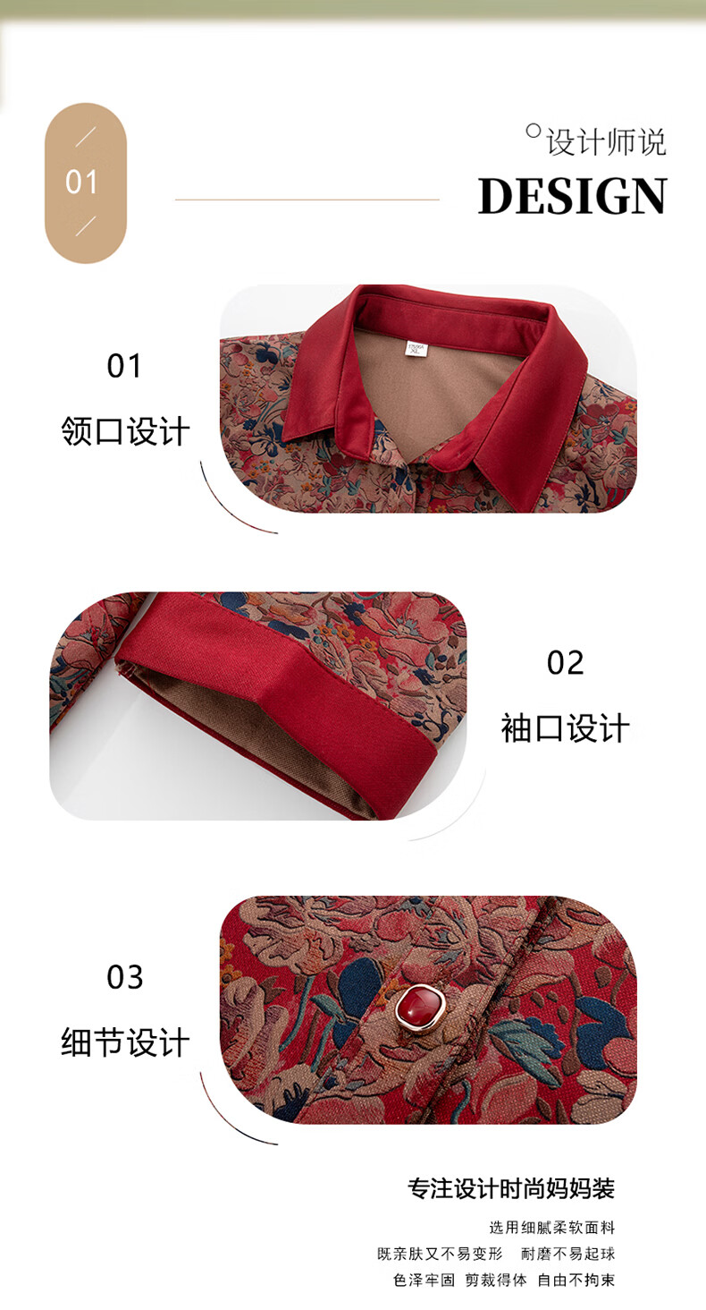孜颜老年人奶奶款70岁80老太太衣服中老年女士洋气长袖衬衫春秋装上衣 红色 XL 建议100斤内
