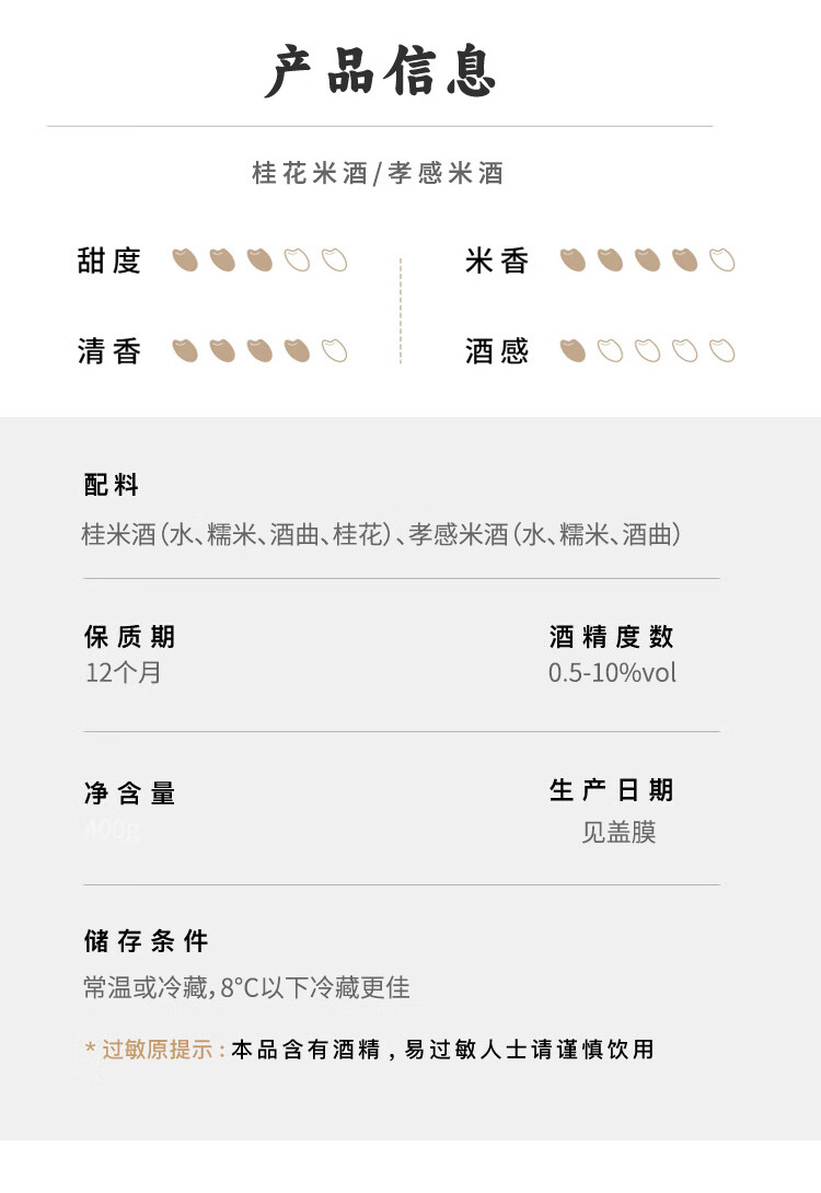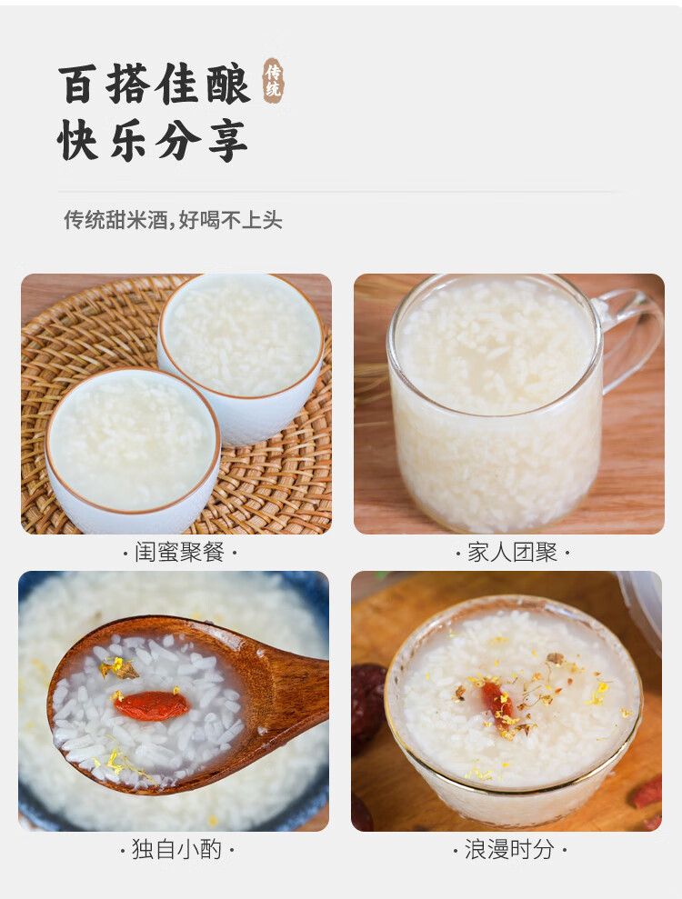 应品坊古法酿造米酒醪糟汁 低度米酒甜酒酿 糯米甜酒月子米酒 孝感米酒 4碗