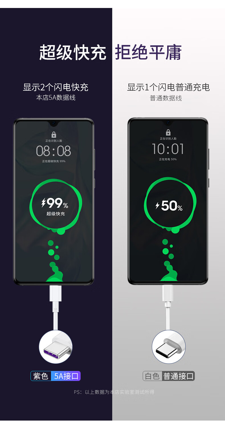 mijvtype-c超级快充线适用于华为数据线5A快充手机充电线mate30p40p30p20荣耀V10v20nova5 5A USB-C超级快充【1.5米加长款】1条装