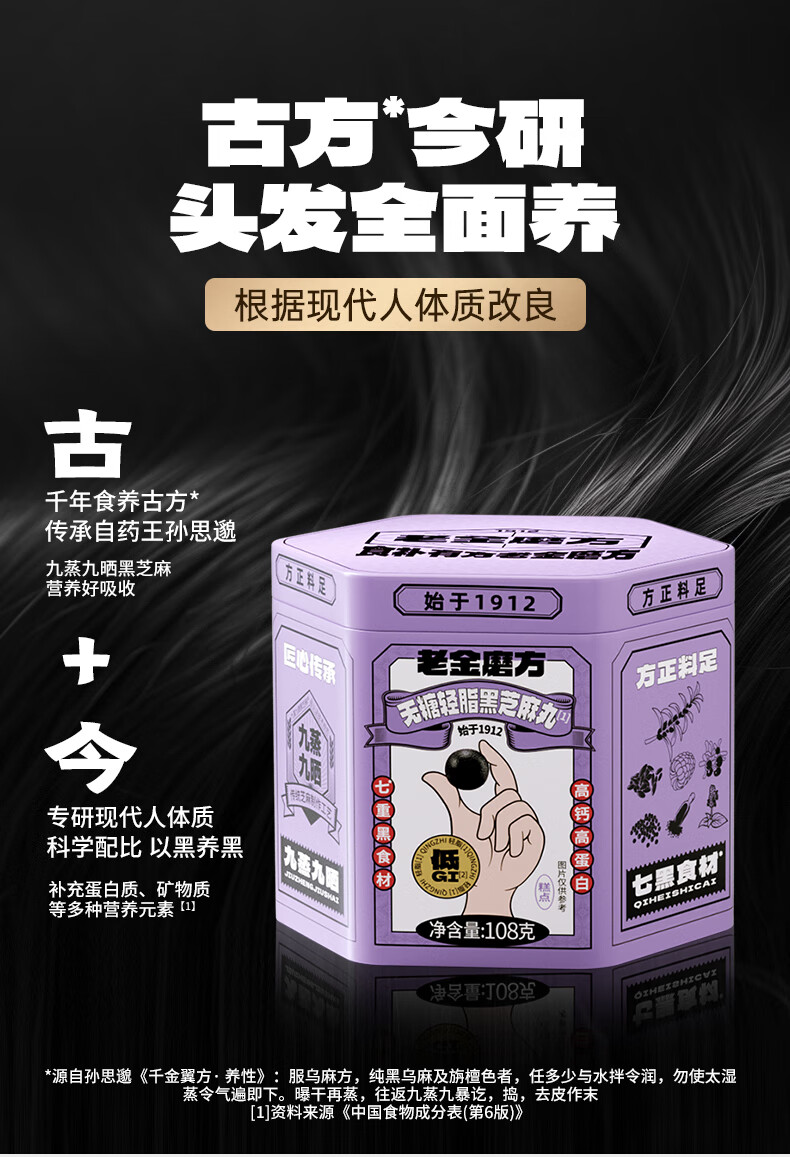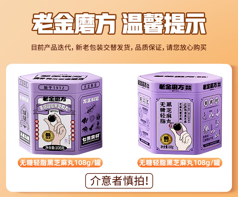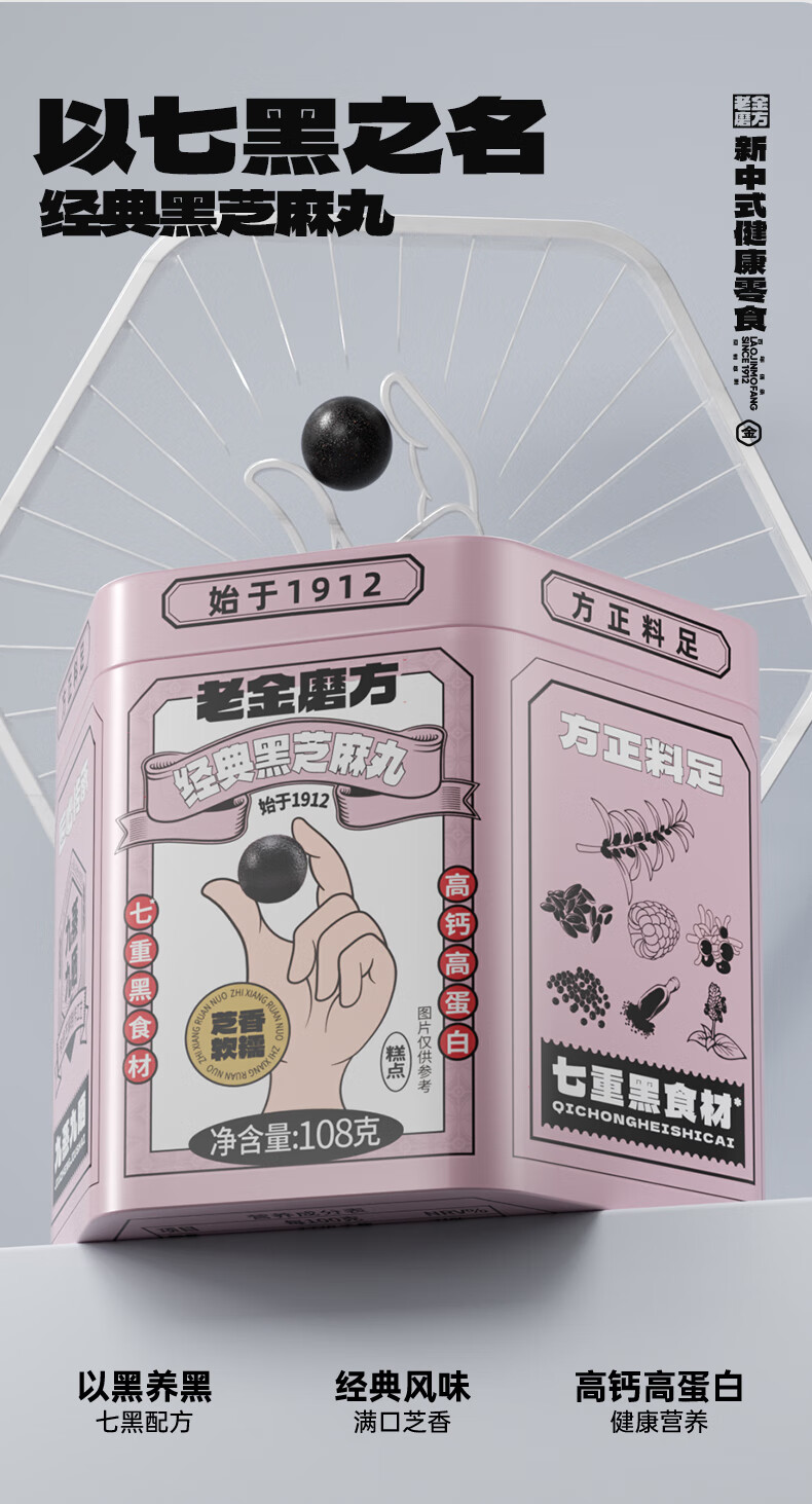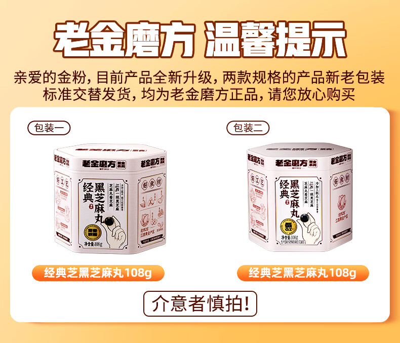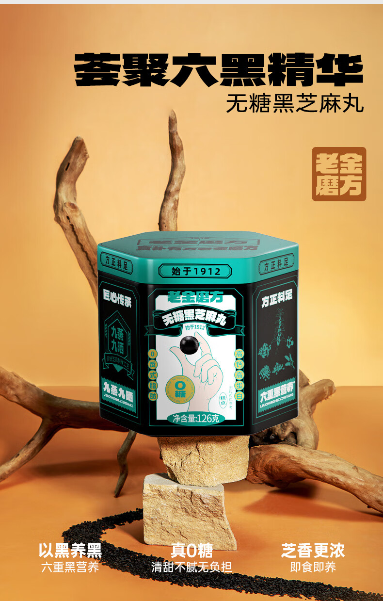 老金磨方【黑金系列】黑芝麻丸罐装 黑米黑豆丸子营养高钙高蛋白零食糕点 【滋补益肾 1周养护】黄精灵芝芝麻丸 108g*1罐