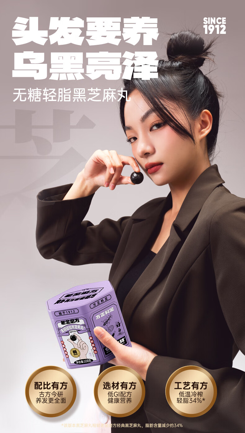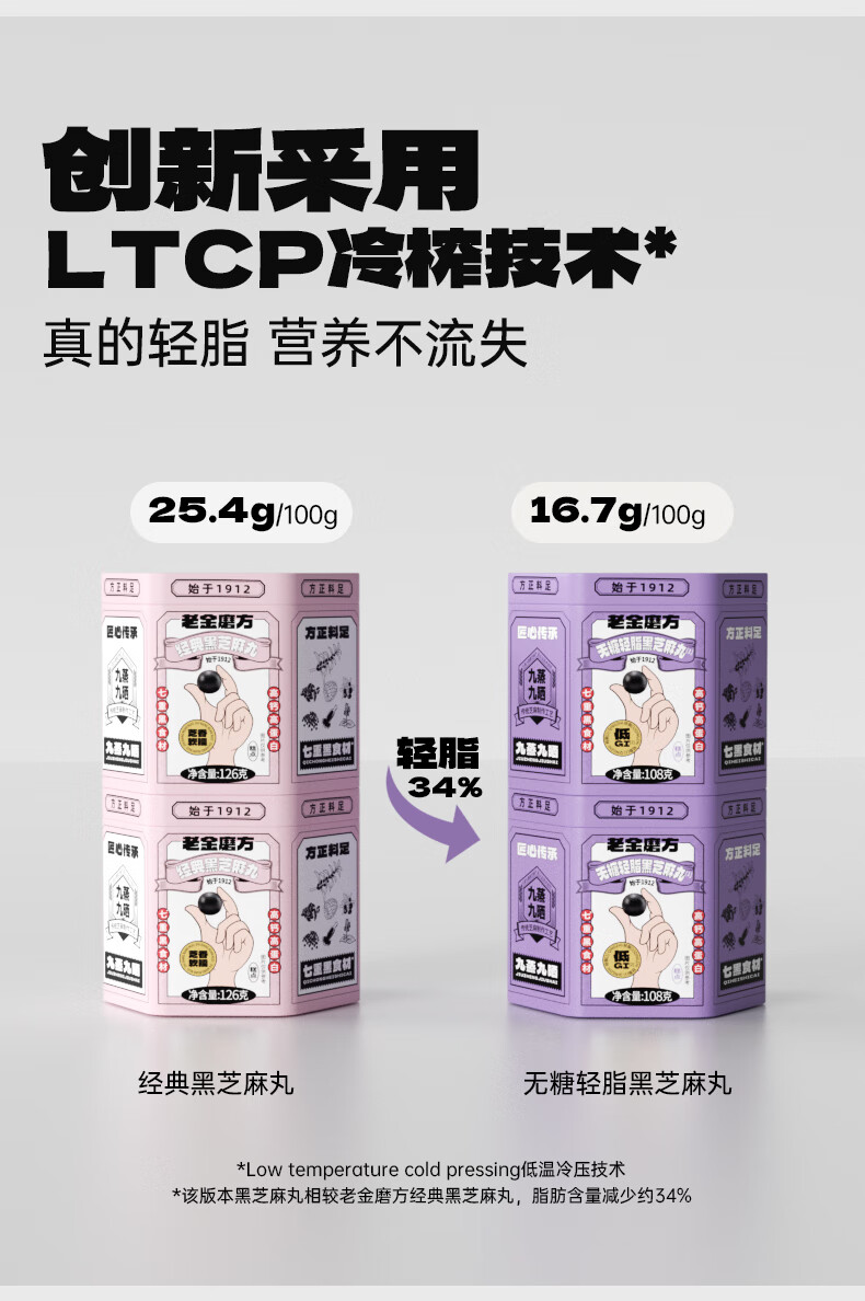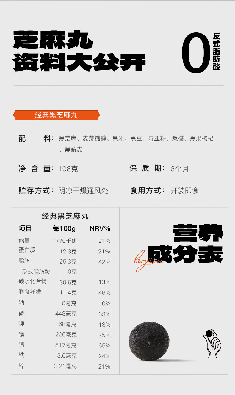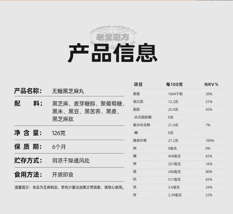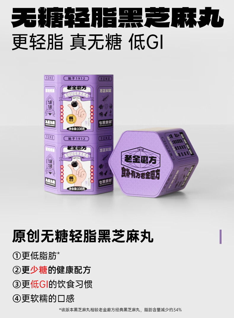 老金磨方【黑金系列】黑芝麻丸罐装 黑米黑豆丸子营养高钙高蛋白零食糕点 【滋补益肾 1周养护】黄精灵芝芝麻丸 108g*1罐