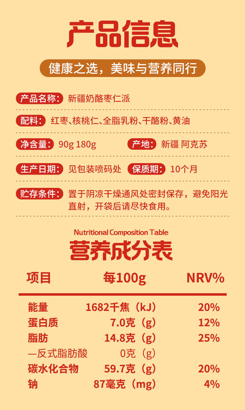 一品玉新疆奶酪枣仁派夹心枣糕 休闲下午茶零食 坚果蜜饯 奶酪枣仁派90g*3袋