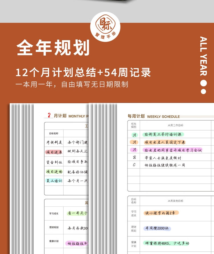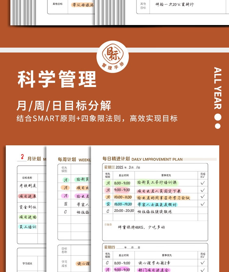 记忆印象软面抄A5 目标计划本 工作复盘笔记本 时间管理记事本 效率日程本 商务记录本办公学习本logo定制 绯语 A5
